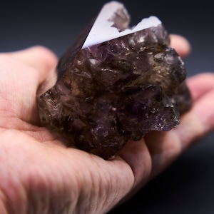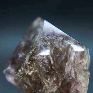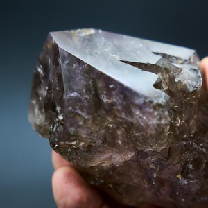 アメジストの紫の中に水墨画のようなスモーキーカラーの部分と、ポリッシュ加工されたため、先端と反対側のゴツゴツした部分も透けて見え、まるで天然の万華鏡を見ているかのようです。