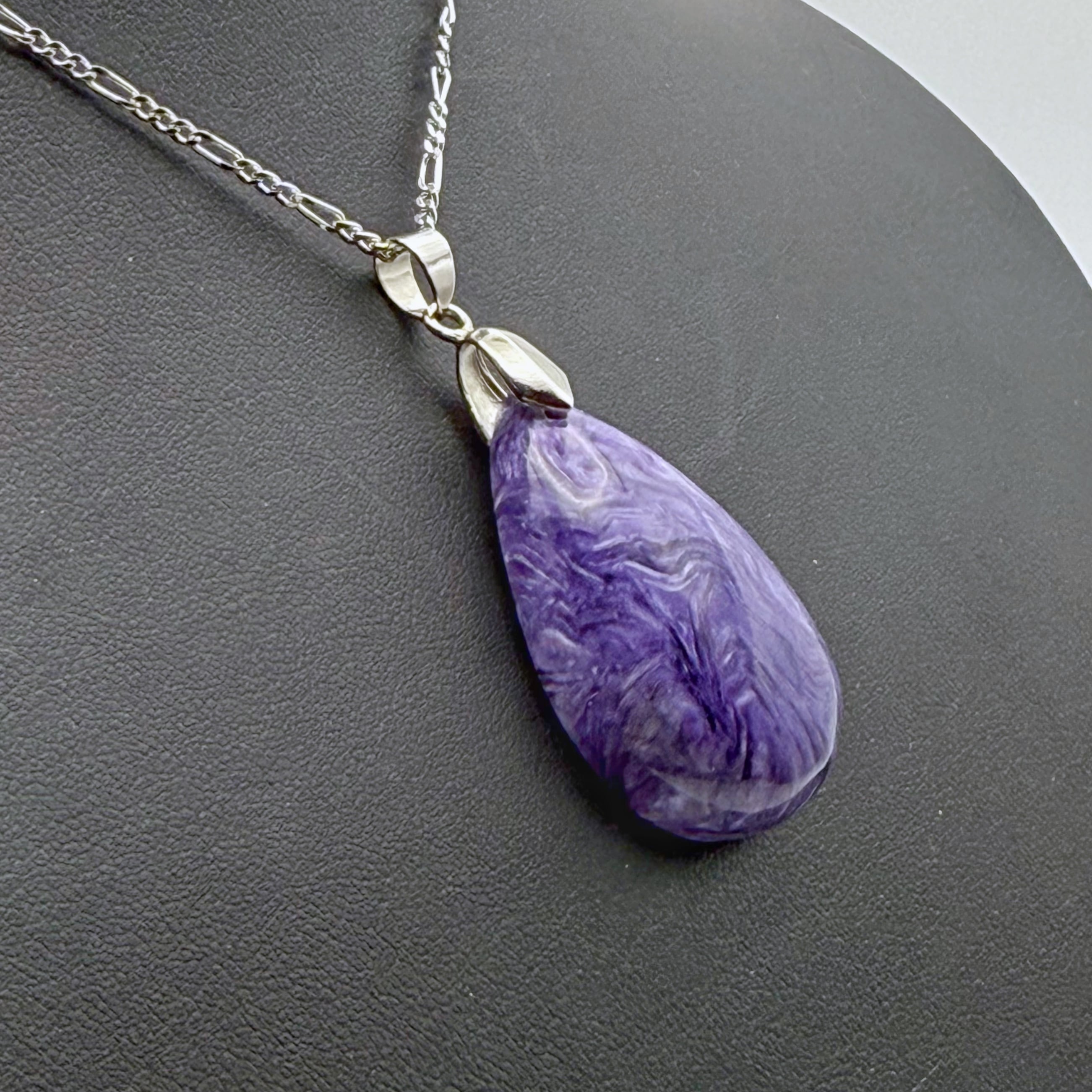 大きめの雫型で、チャロアイトらしいマーブル模様が全面にみられます。