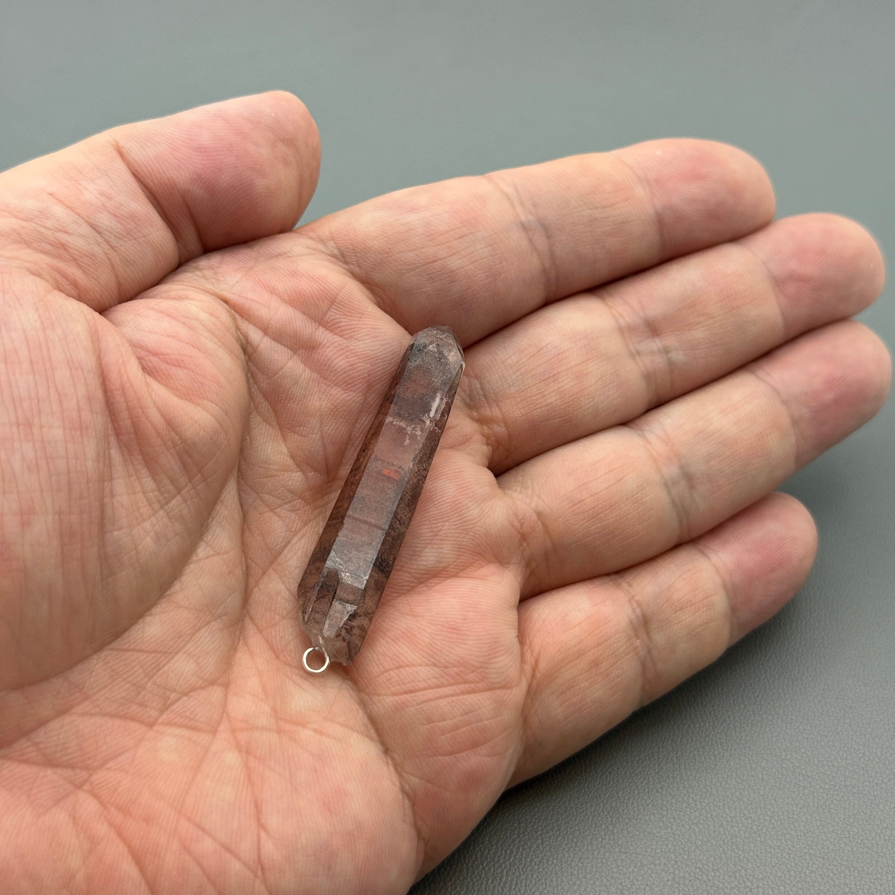 ブラジル・ミナスジュライス産のレッドファントムクォーツのポイントをペンジュラムにしました。