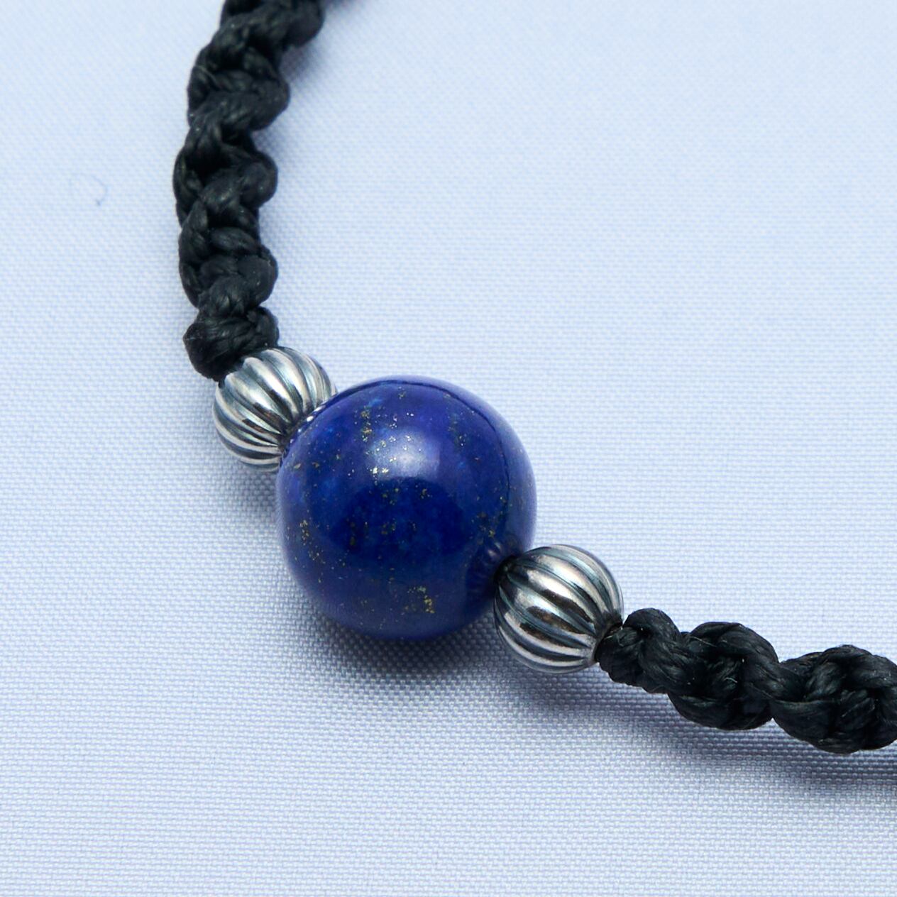 3Aクラスの良質で瑠璃色が綺麗なラピスラズリとSV925ビーズを組み合わせた編みブレスレットです。