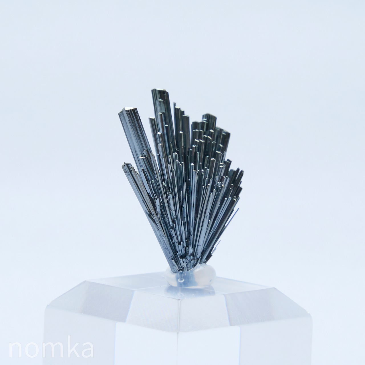 スティブナイト(和名:輝案鉱)はレアメタルのアンチモンを含む硫化鉱物で、独特の銀〜黒色の金属光沢が特徴です。