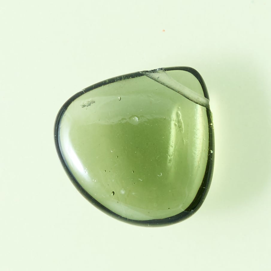 モルダバイトは、隕石の衝突によって地表へ衝突した際に溶解して形成された天然ガラスを『テクタイト』と言い、その一種です。色は透明感のある緑〜深緑またはオリーブグリーンなどです。