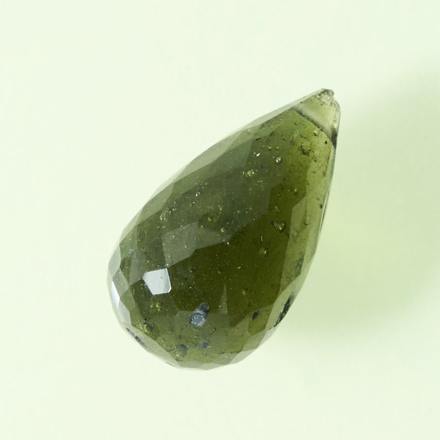 モルダバイトは、隕石の衝突によって地表へ衝突した際に溶解して形成された天然ガラスを『テクタイト』と言い、その一種です。色は透明感のある緑〜深緑またはオリーブグリーンなどです。