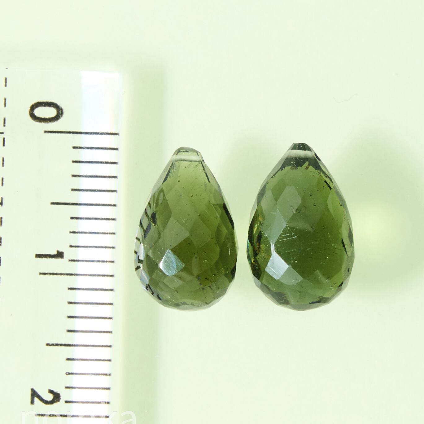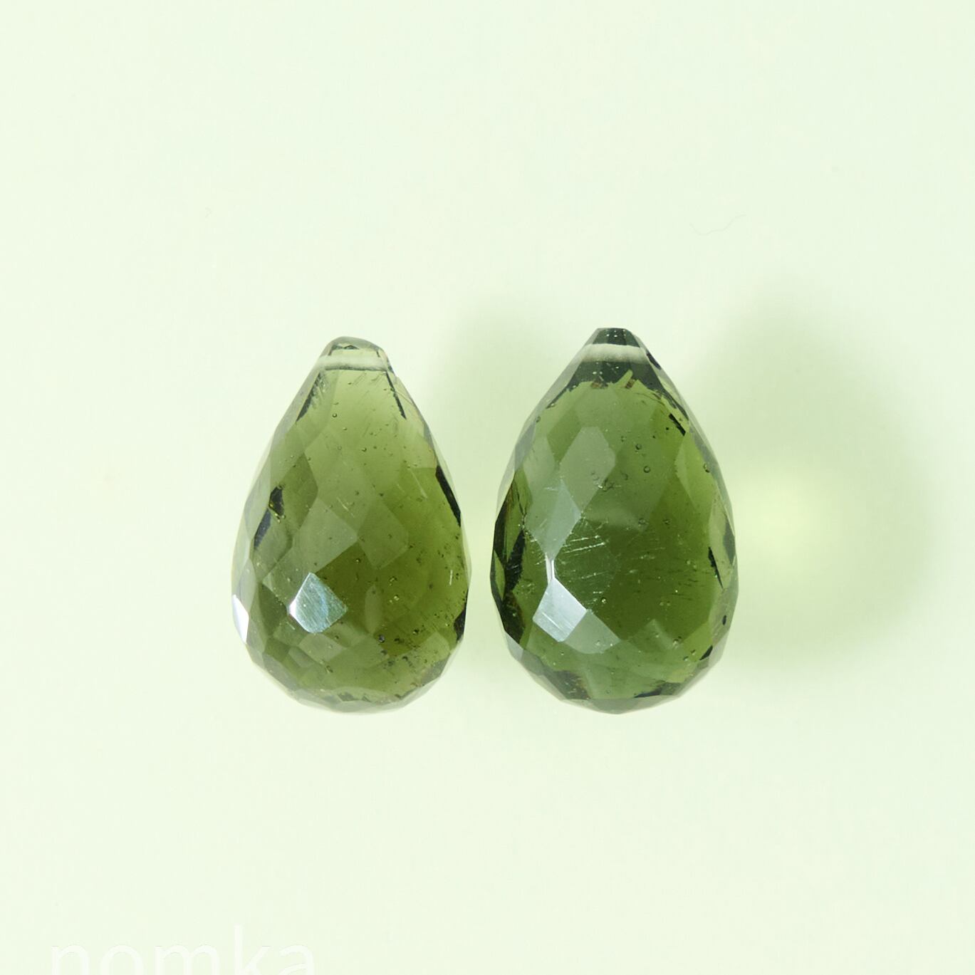 【稀少石】(ペア) モルダバイト 7.05ct/ブリオレットカット/穴あり【チェコ共和国】nmod-0042