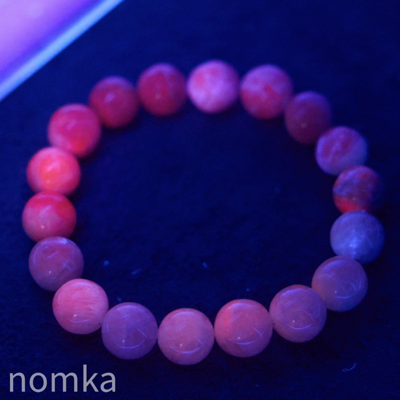 紫外線ライトを当てるとオレンジ色に蛍光し、その後本体のカラーも濃いめのラベンダーカラーになりますが、これはハックマナイトの特徴で、時間をかけて少しずつ元のカラーに戻ります。