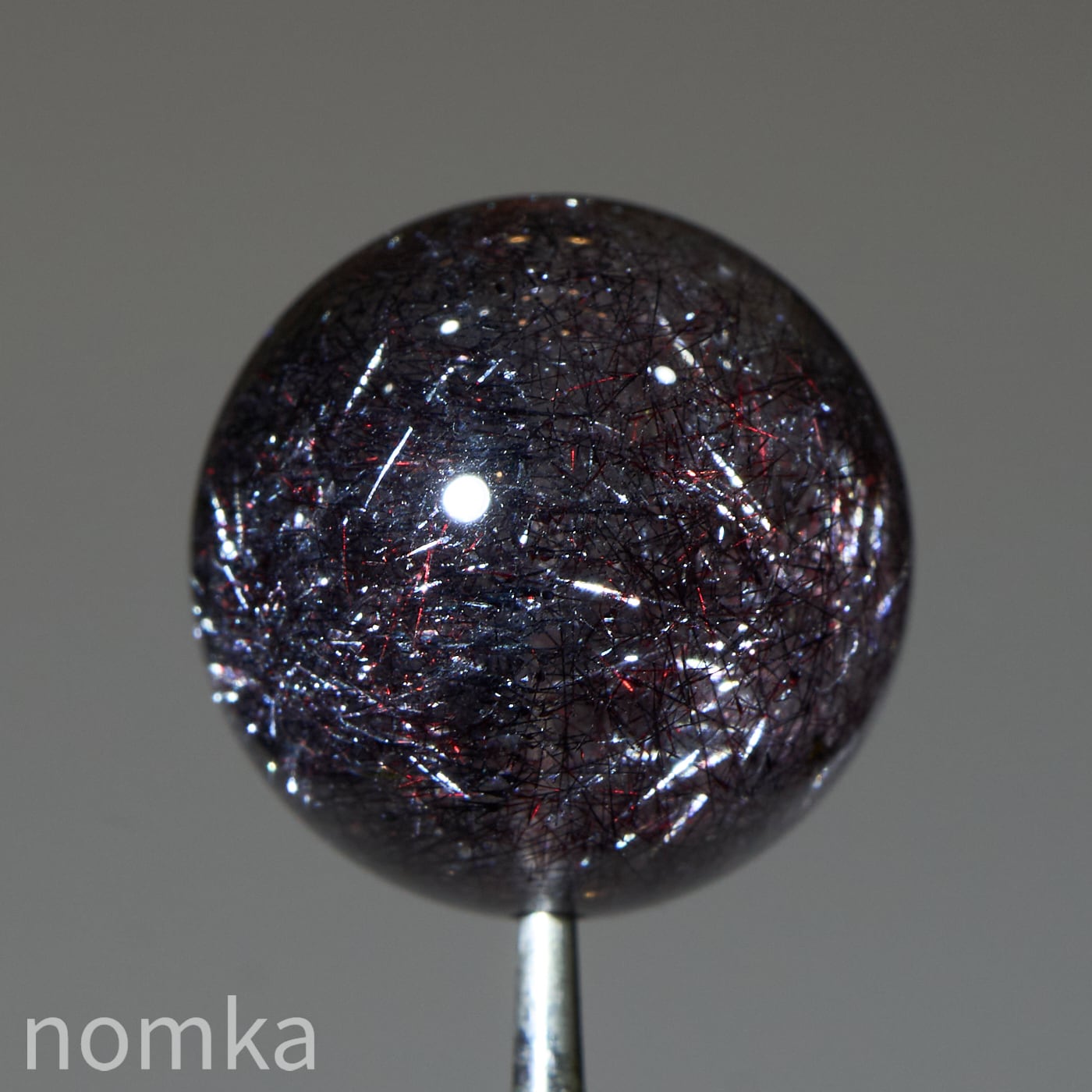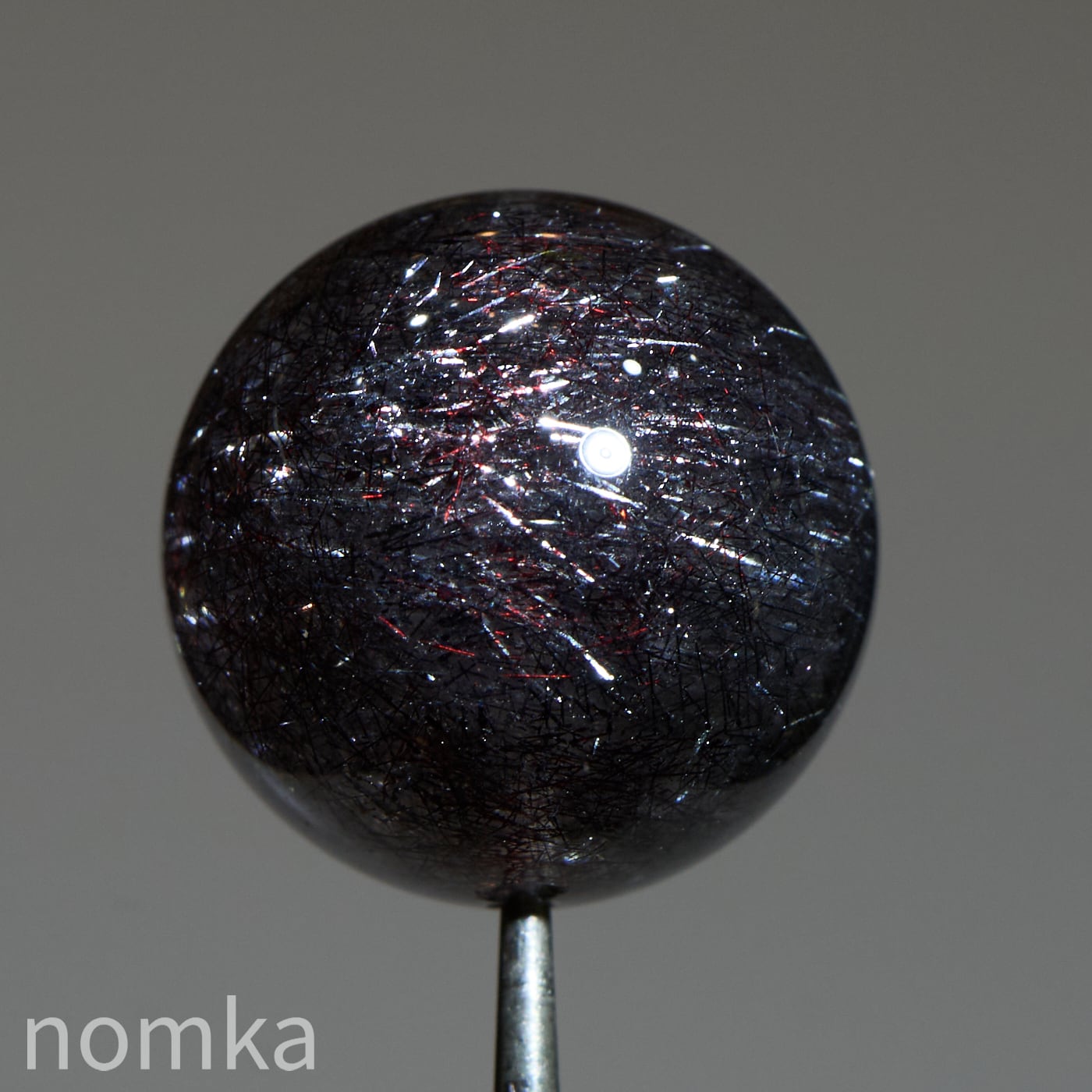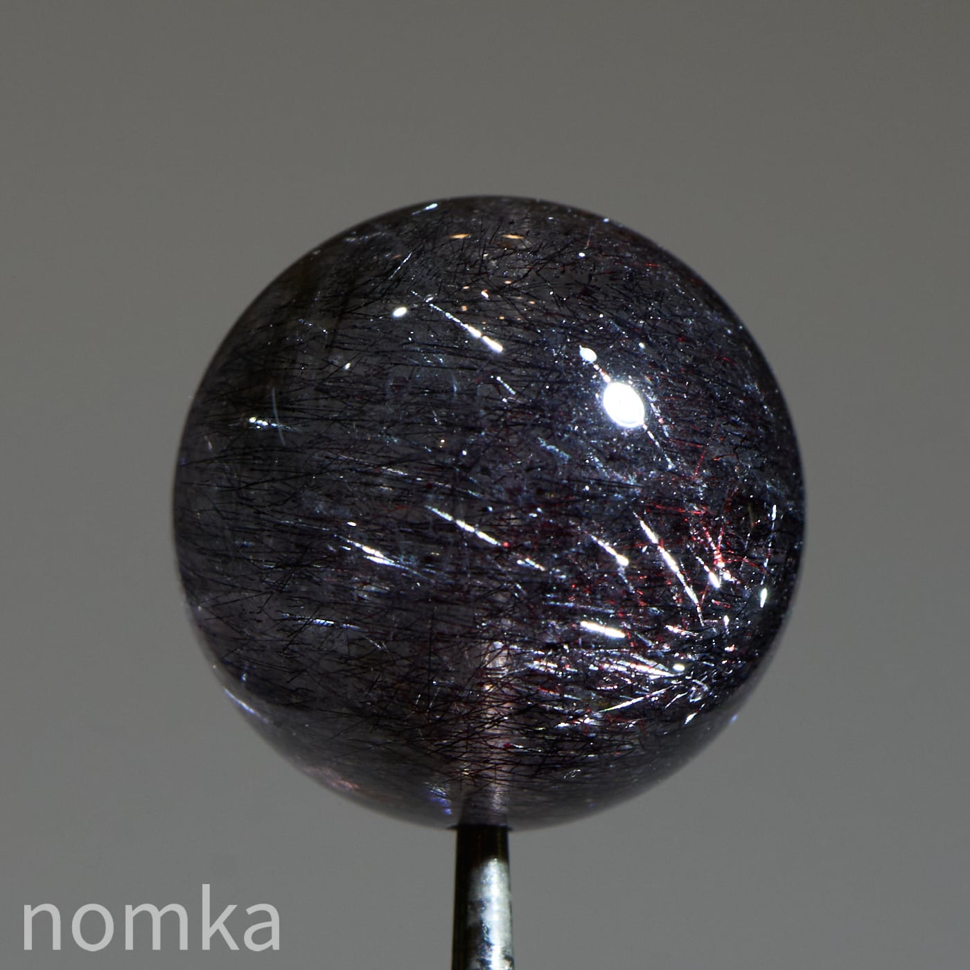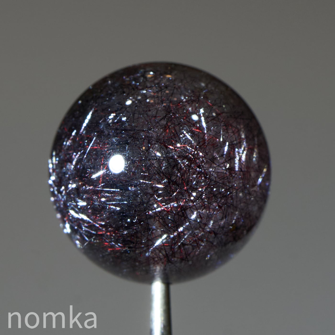 赤や黒のレピドクロサイト(鱗鉄鉱)と針状のヘマタイトニードルが内包されています。