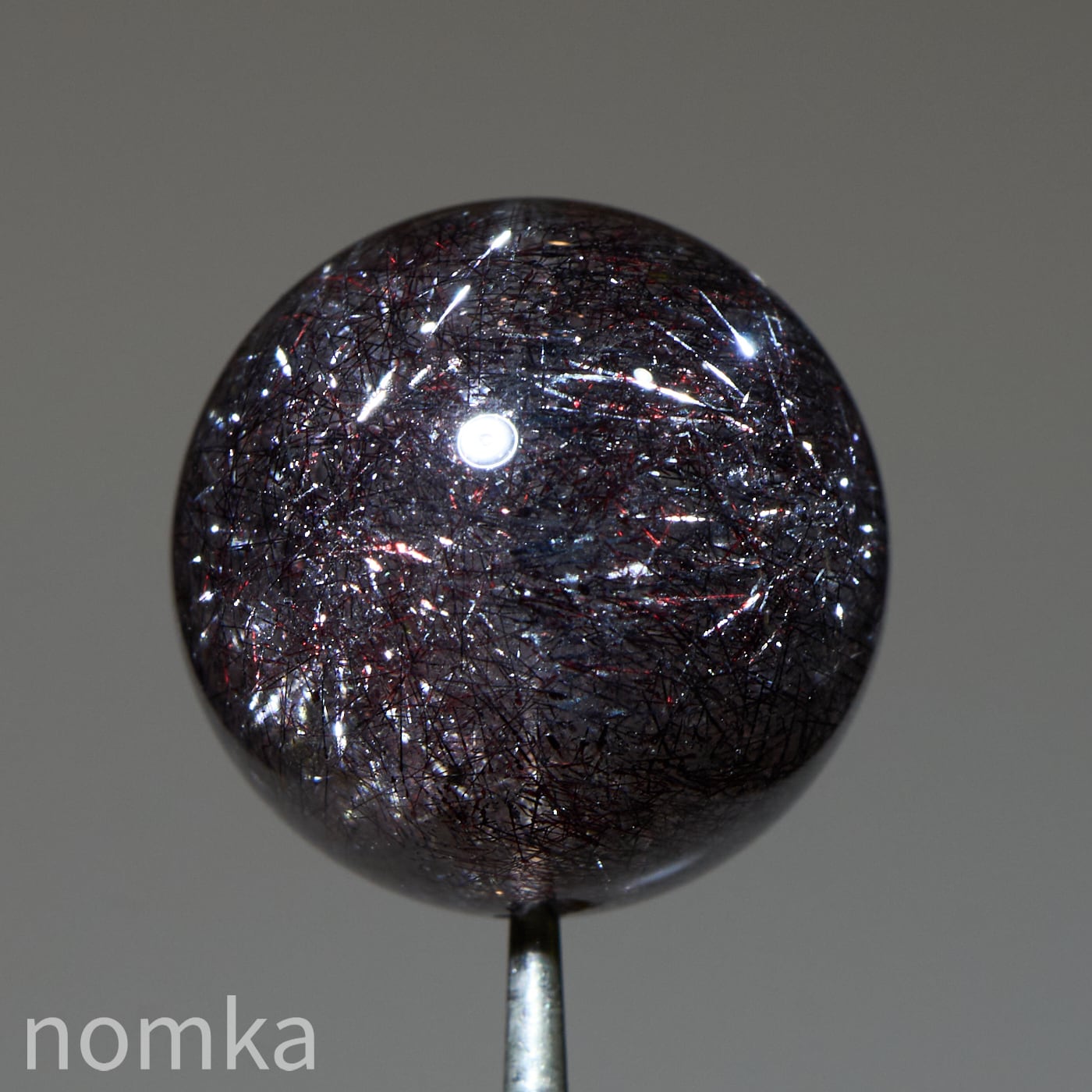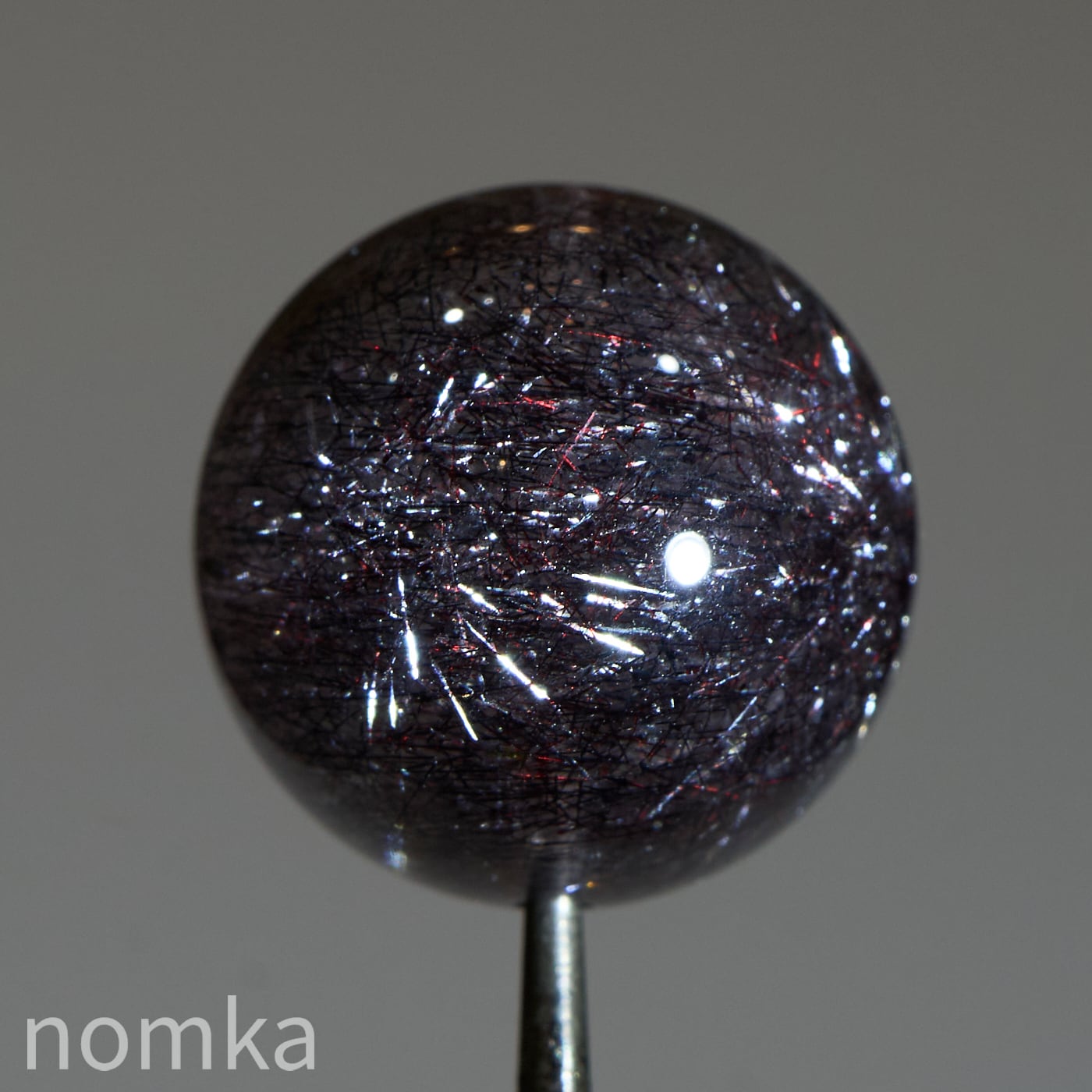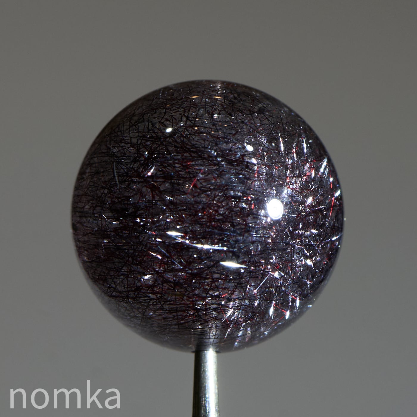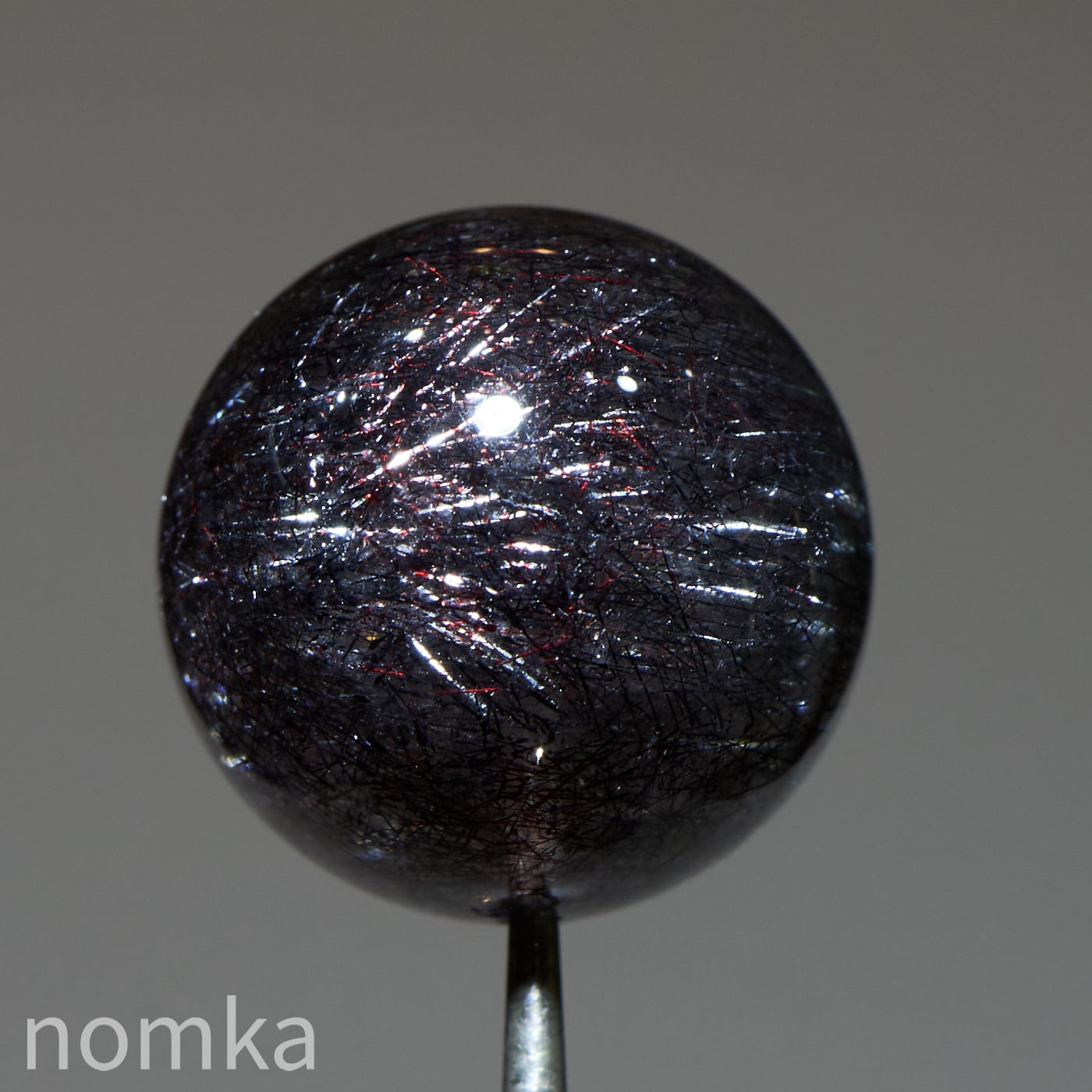赤や黒のレピドクロサイト(鱗鉄鉱)と針状のヘマタイトニードルが内包されています。