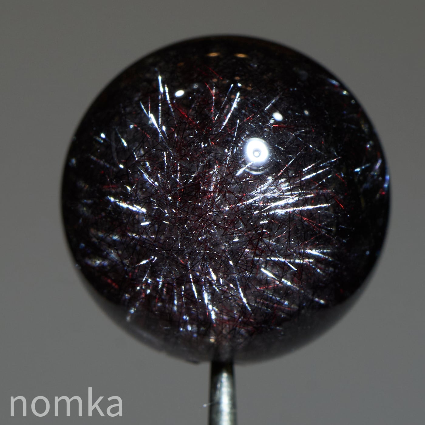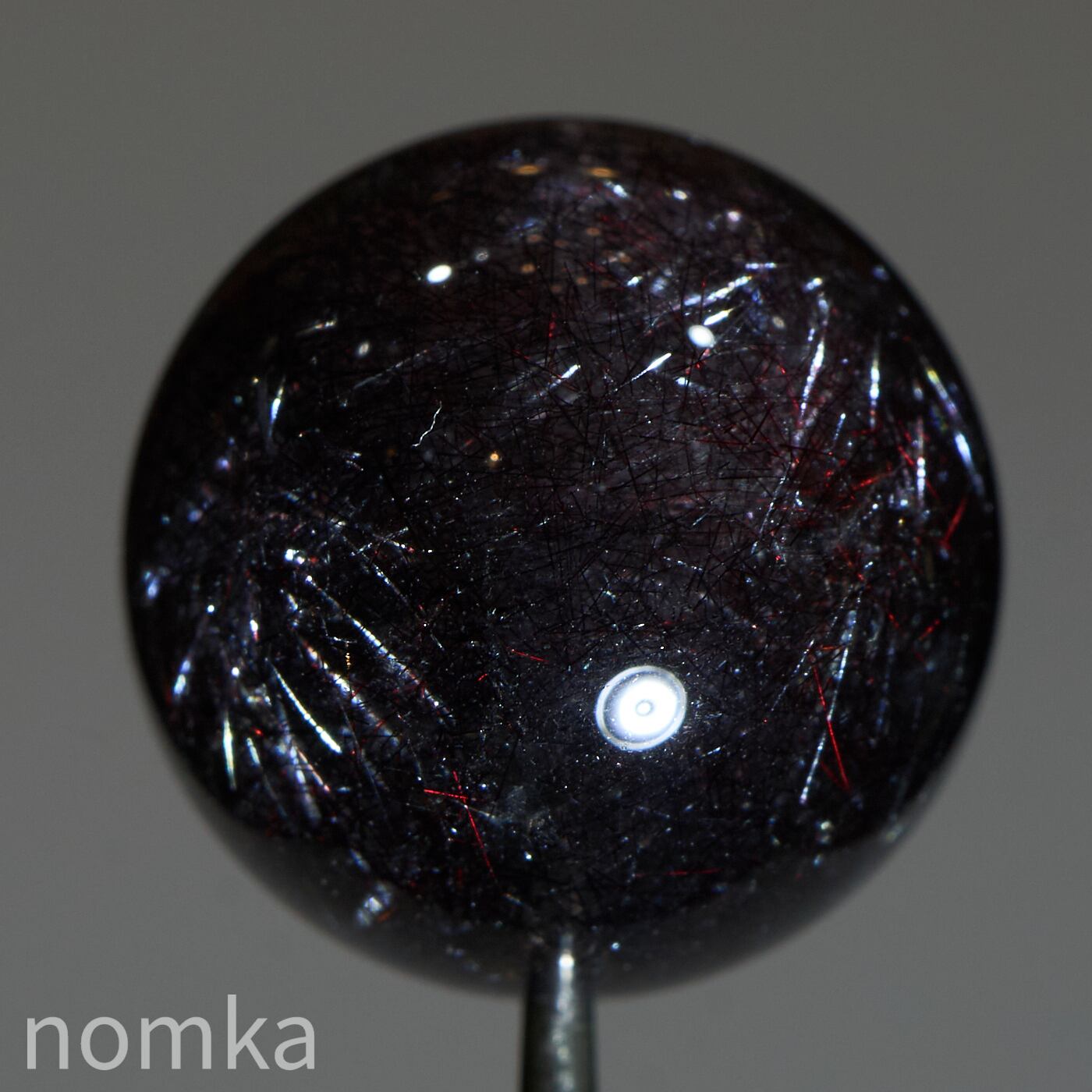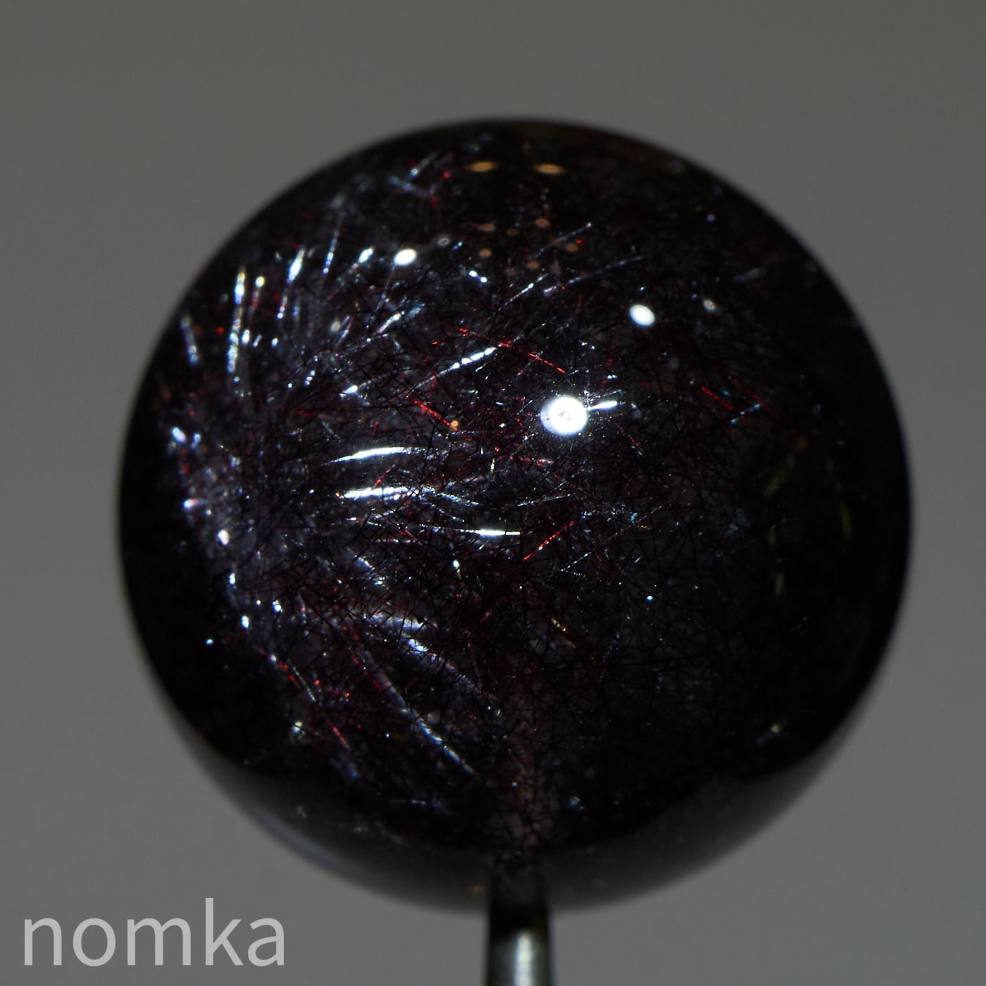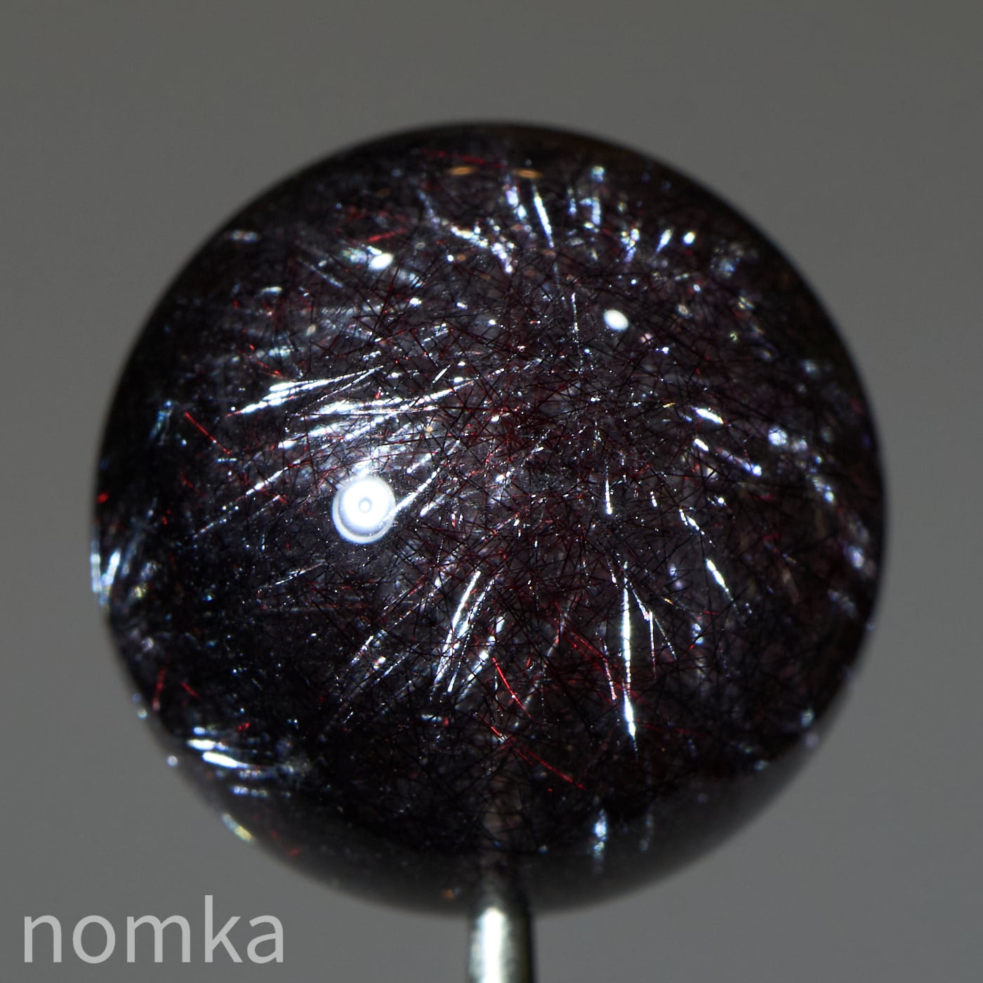 赤や黒のレピドクロサイト(鱗鉄鉱)と針状のヘマタイトニードルが内包されています。
