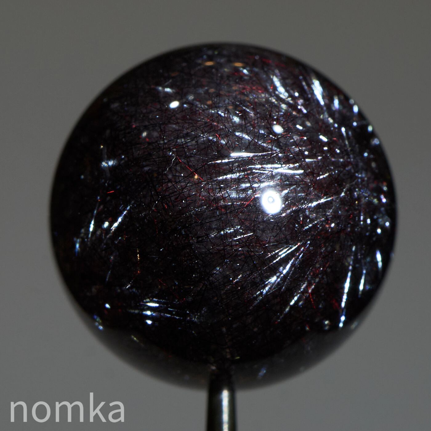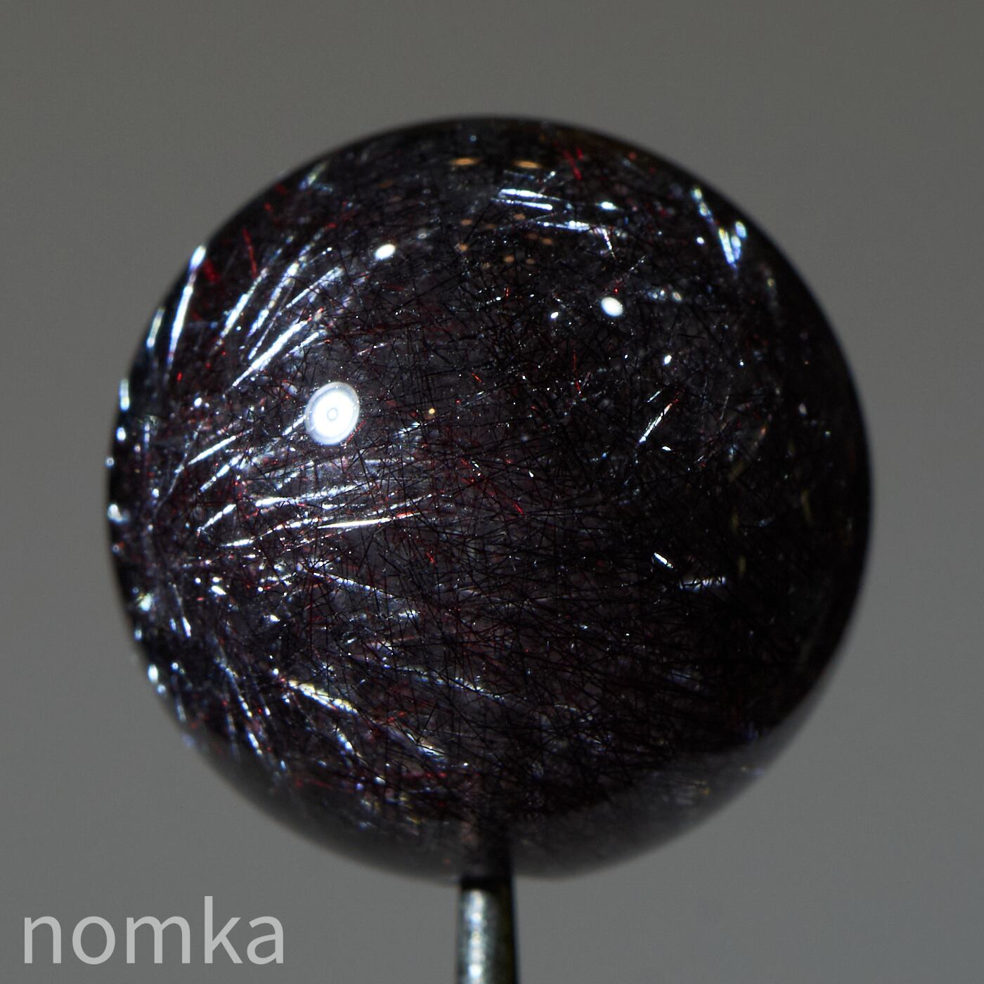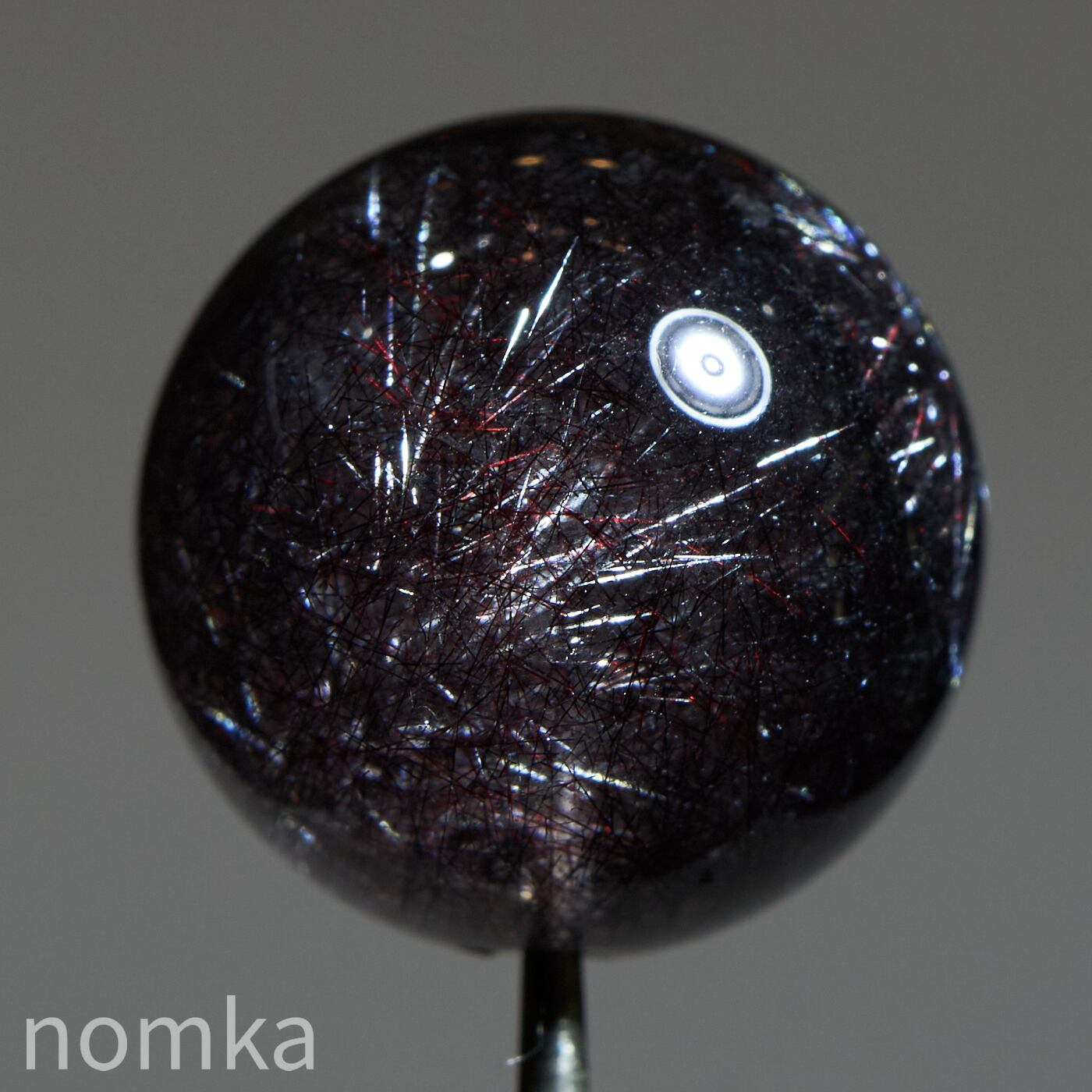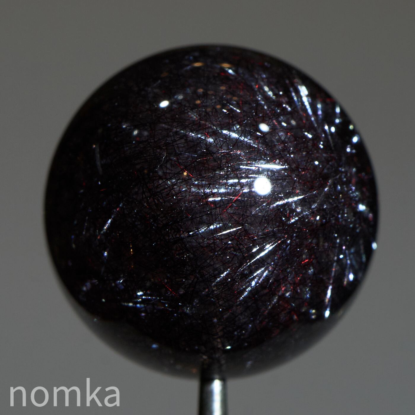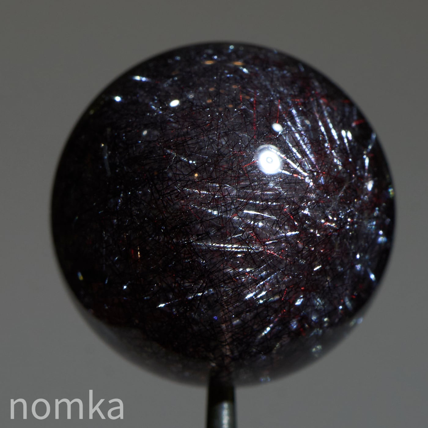 赤や黒のレピドクロサイト(鱗鉄鉱)と針状のヘマタイトニードルが内包されています。