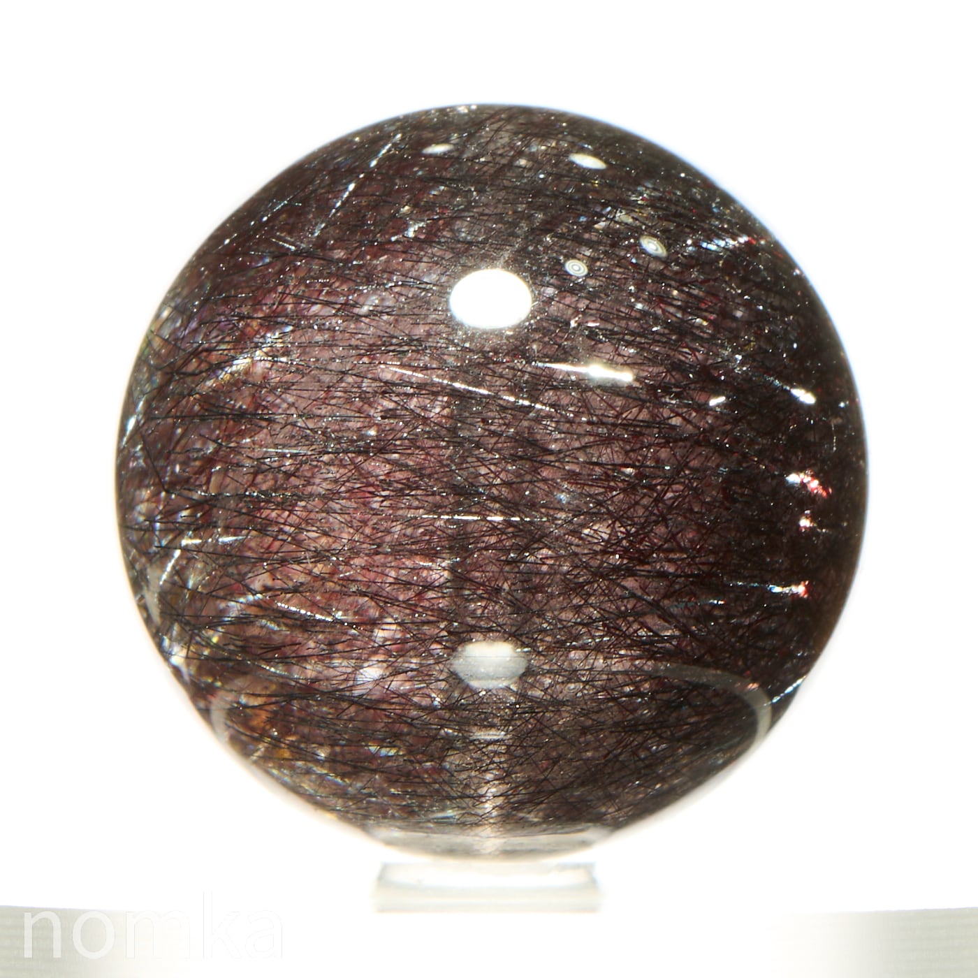 赤や黒のレピドクロサイト(鱗鉄鉱)と針状のヘマタイトニードルが内包されています。