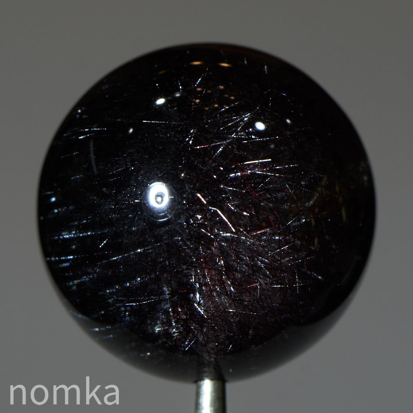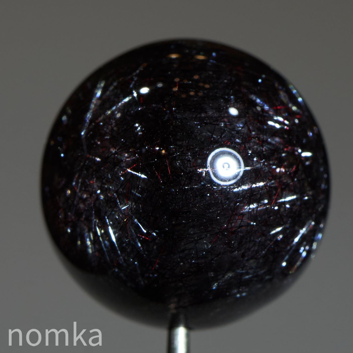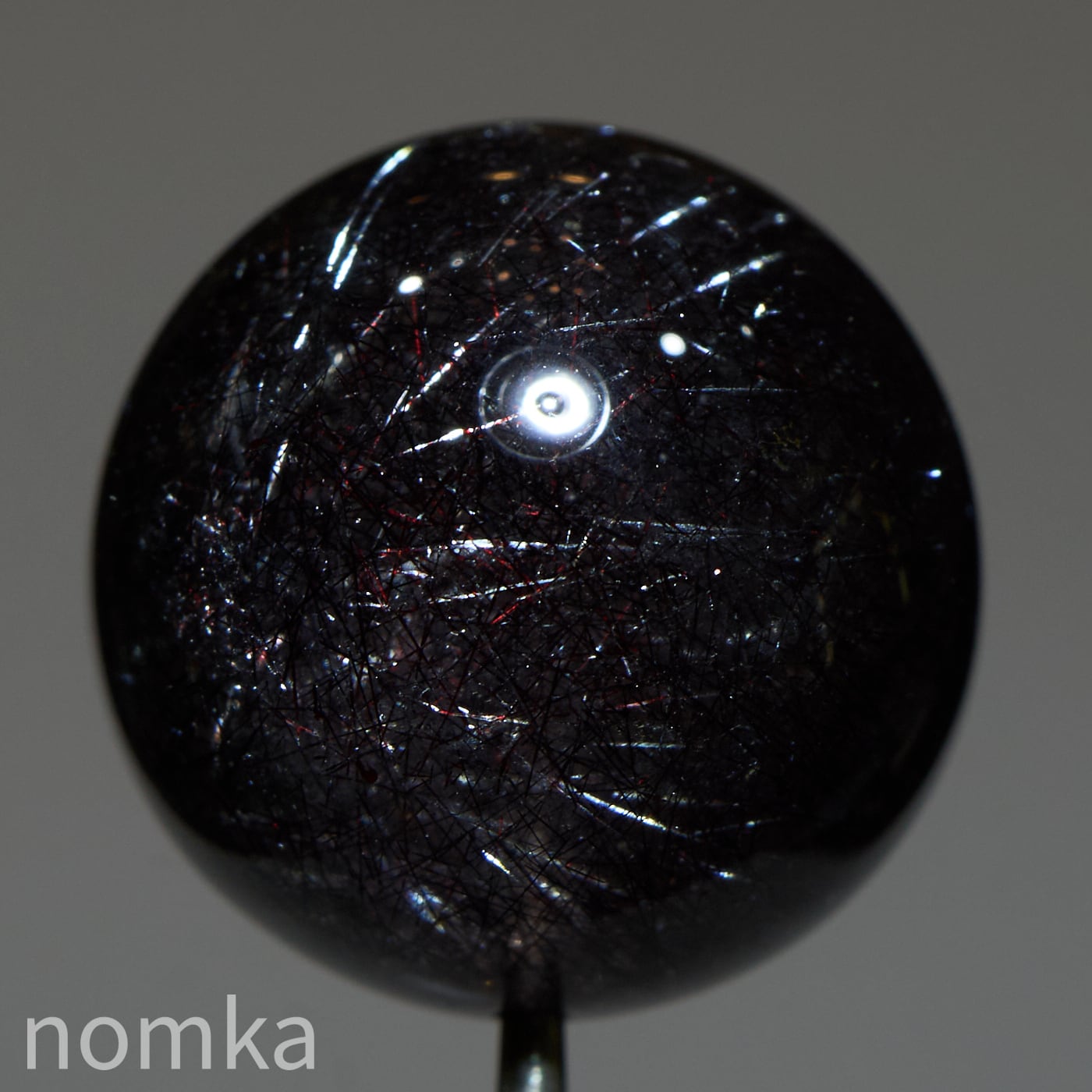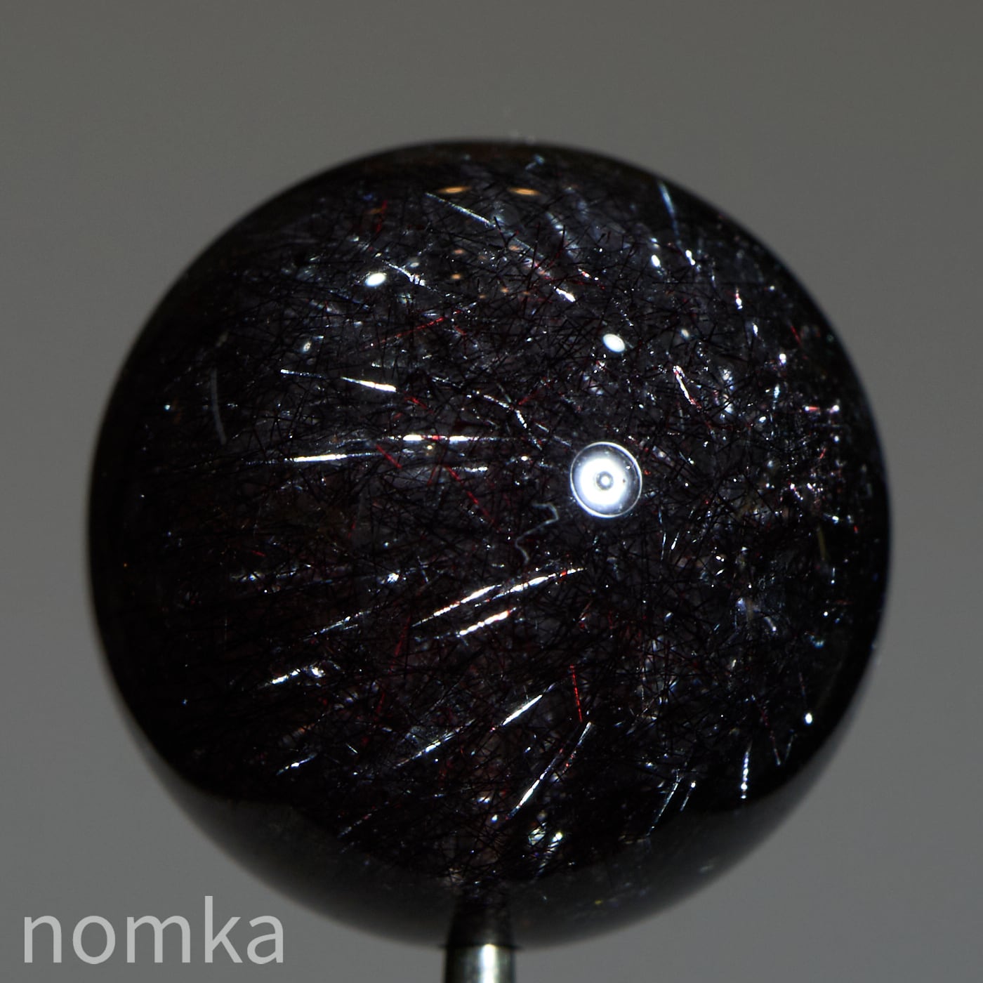赤や黒のレピドクロサイト(鱗鉄鉱)と針状のヘマタイトニードルが内包されています。