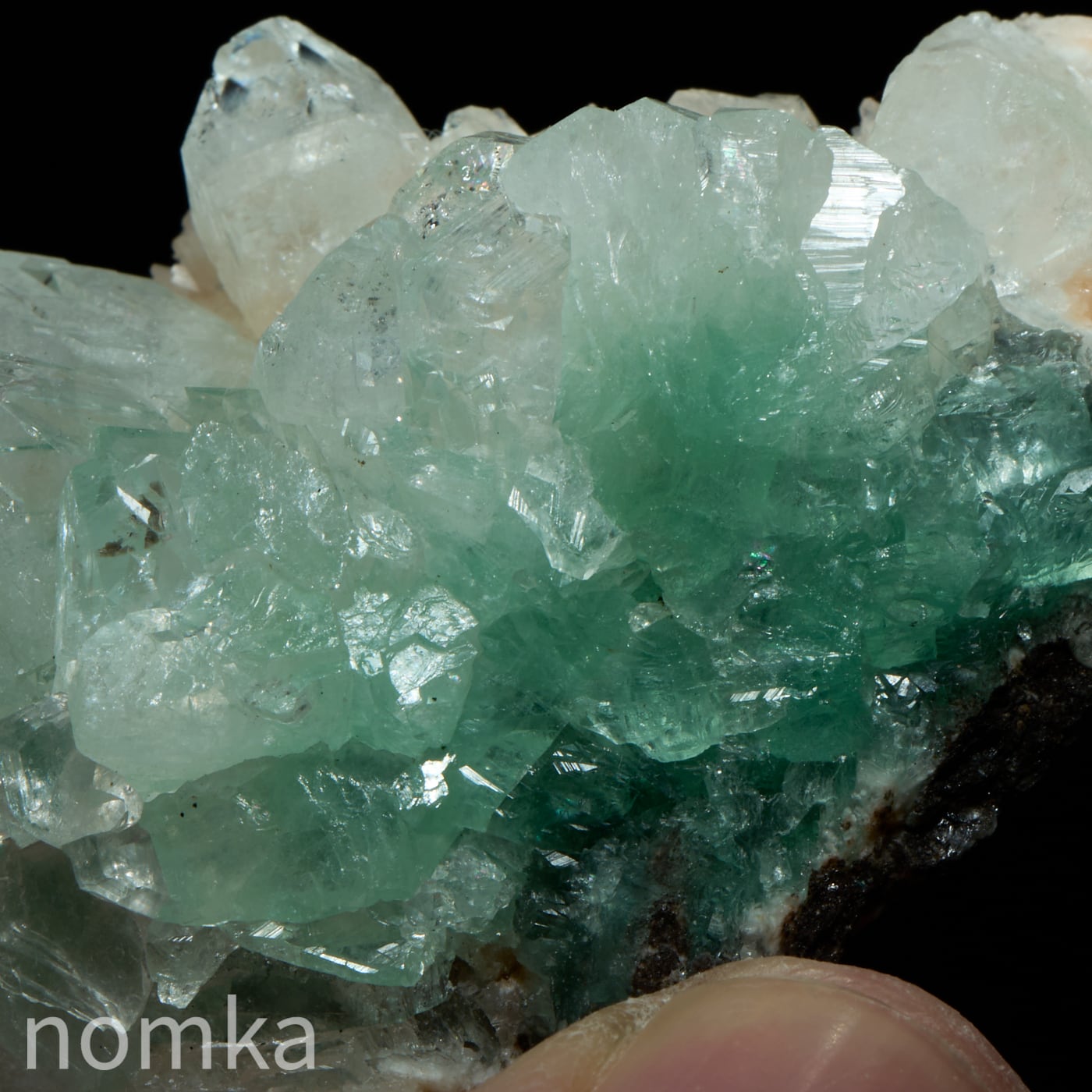 グリーンアポフィライトは微量のバナジウムや鉄分を含むことで淡い緑色に発色するアポフィライトです。