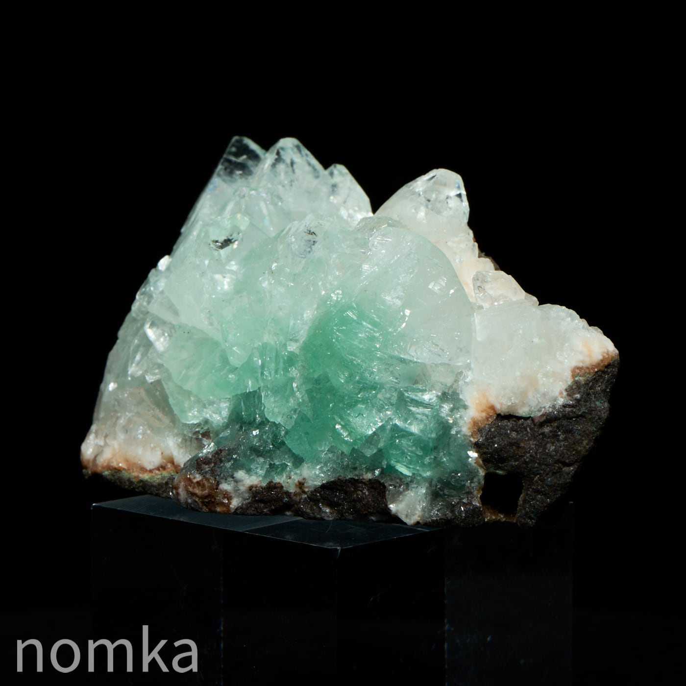 通常のアポフィライトは無色透明ですが、緑色のアポフィライトは稀少性が高く、特にインド産のもは価値が高くなり、とても人気があります。