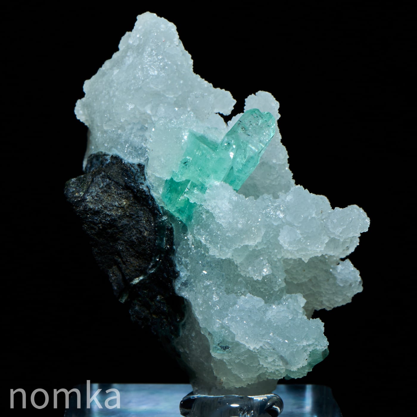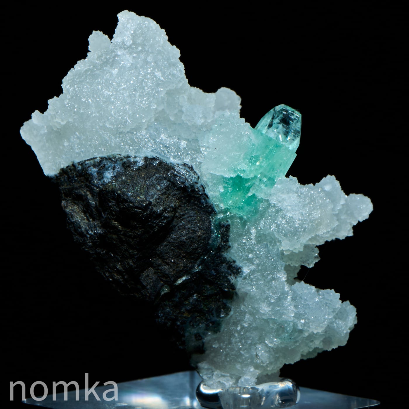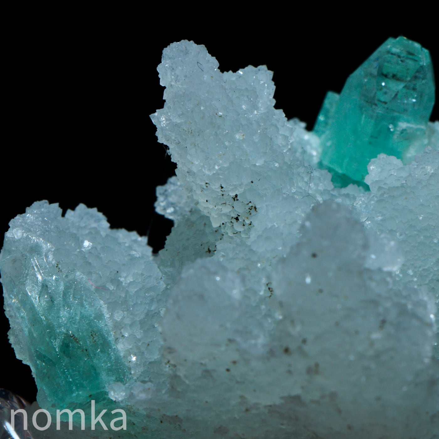 白いゼオライトがまるで珊瑚のように結晶しており、その中にクリアで美しいグリーンアポフィライトが共生した原石です。