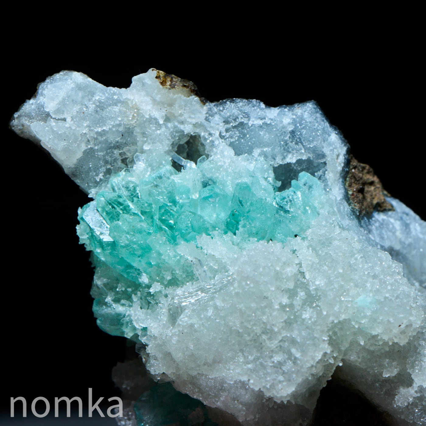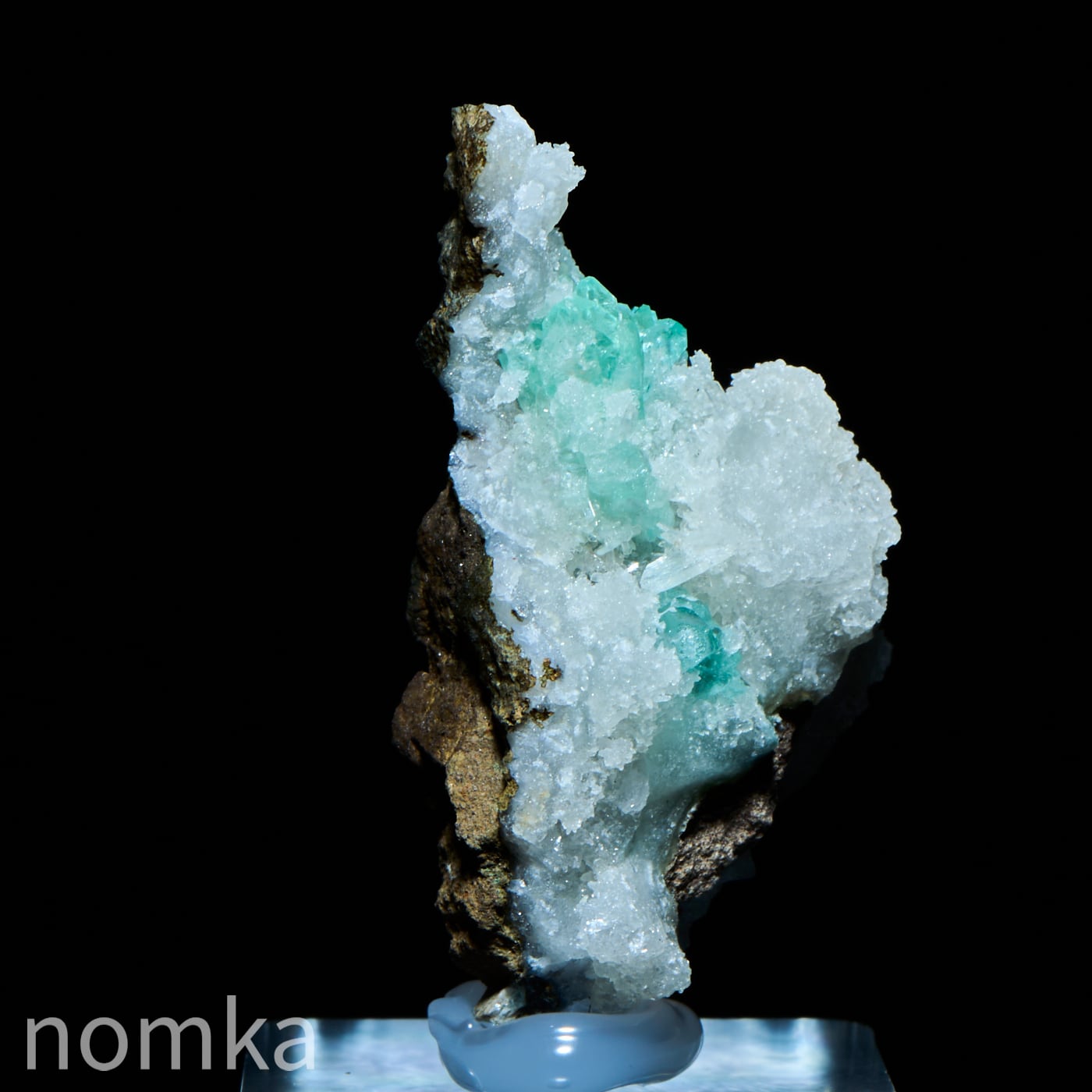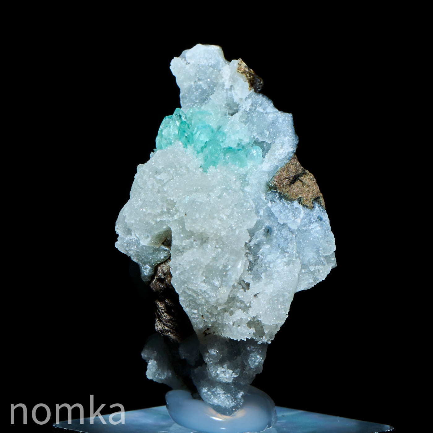 霜柱のようなゼオライトの中にグリーンのアポフィライトが新芽のように生えた可愛い共生原石です。そのままで飾ってもよし、テラリウムのワンポイントにおいても映えそうなコンパクトな原石です。