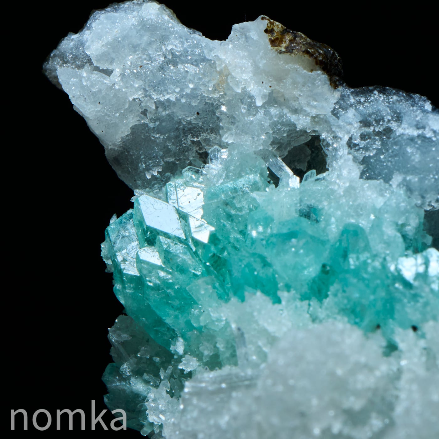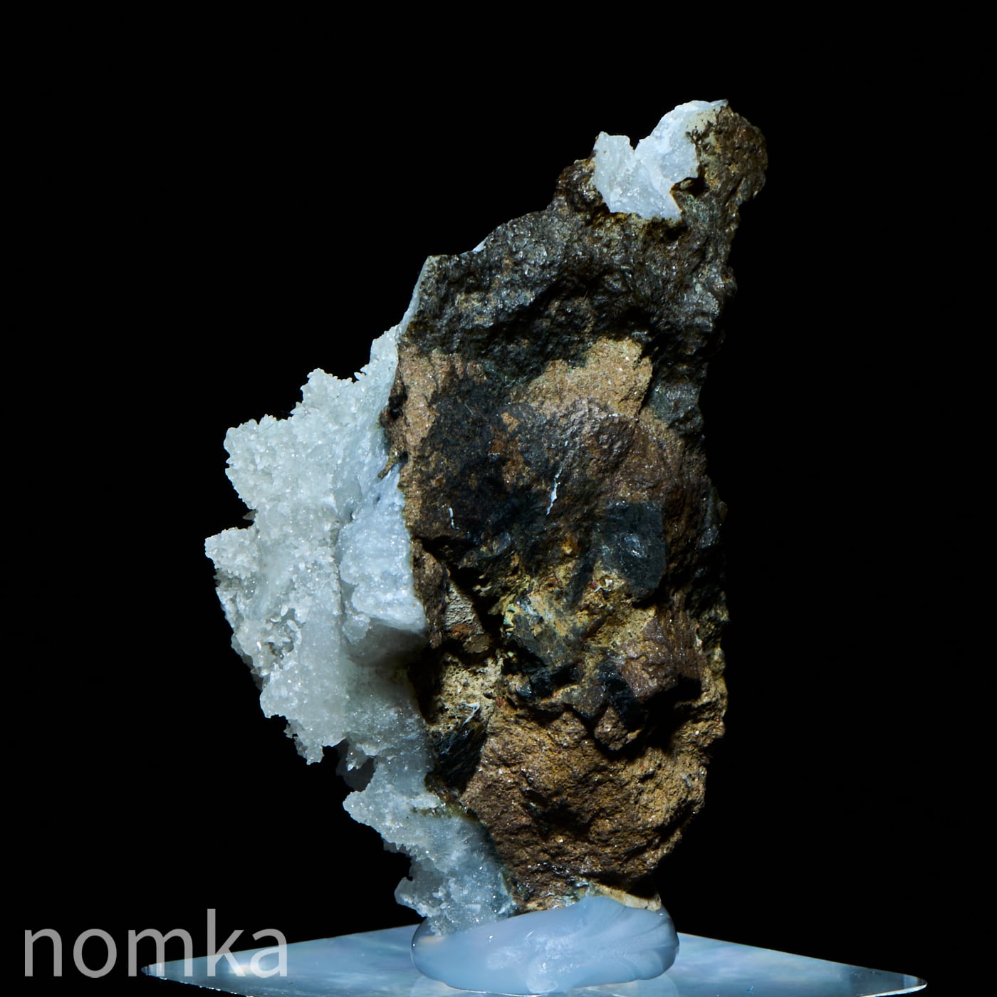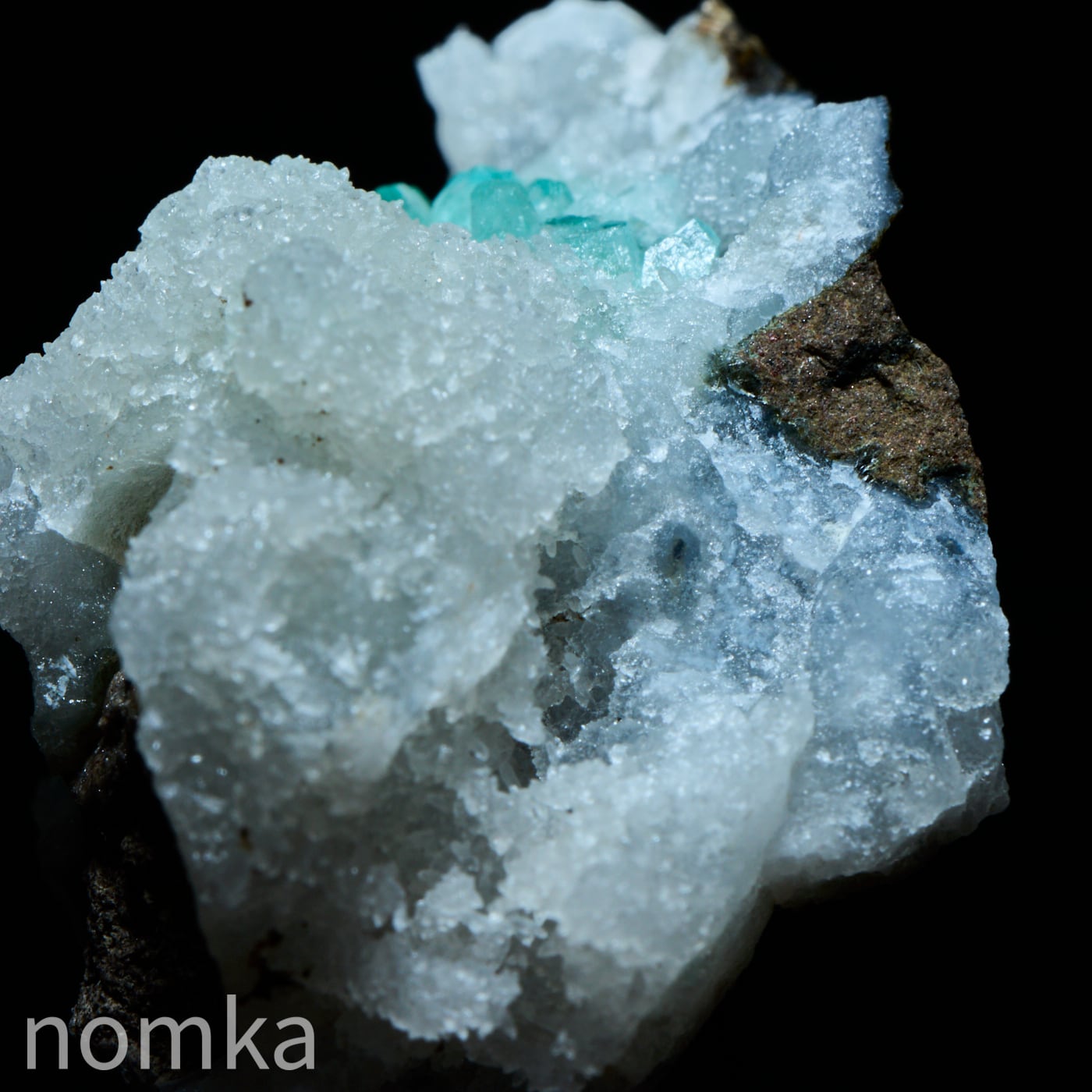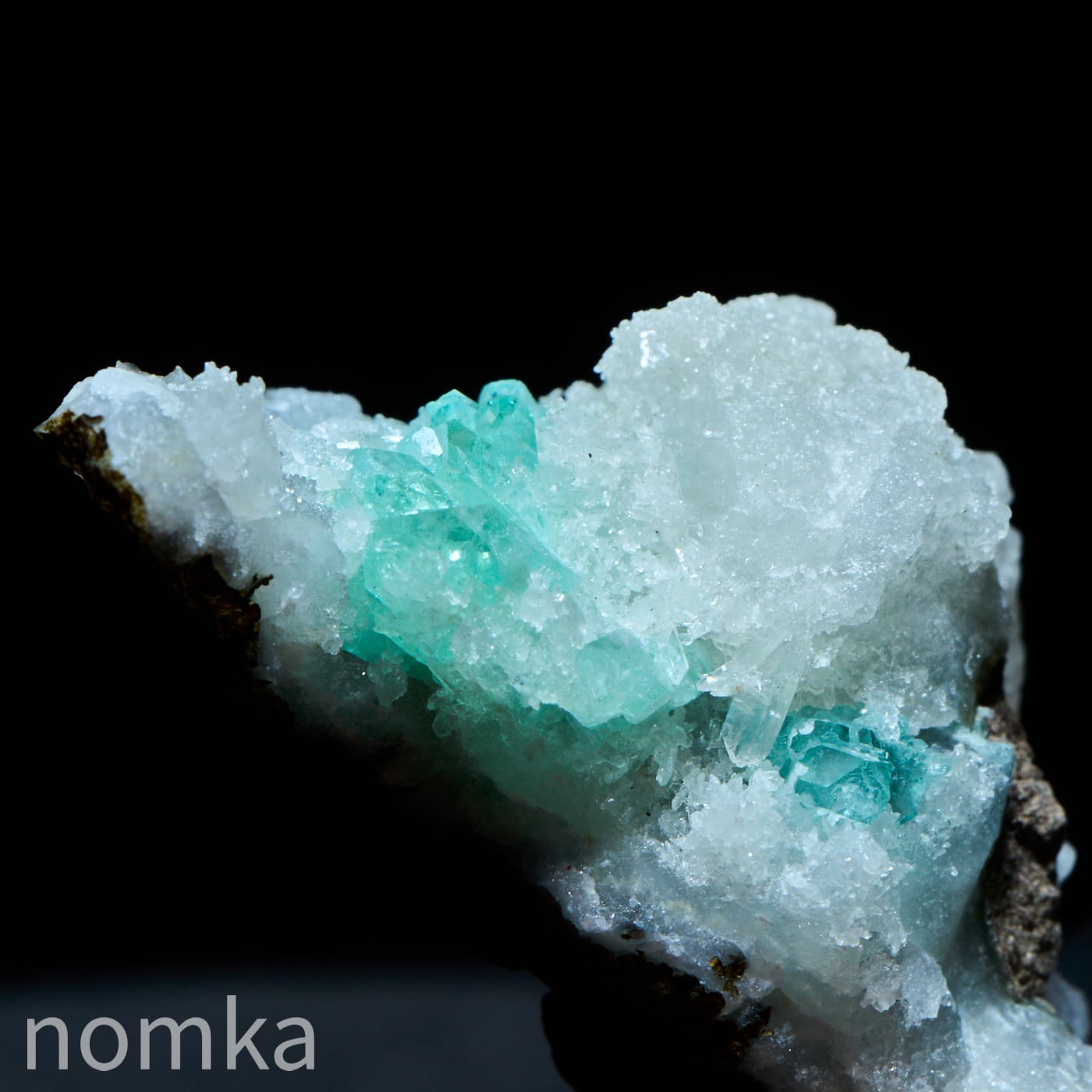 霜柱のようなゼオライトの中にグリーンのアポフィライトが新芽のように生えた可愛い共生原石です。そのままで飾ってもよし、テラリウムのワンポイントにおいても映えそうなコンパクトな原石です。