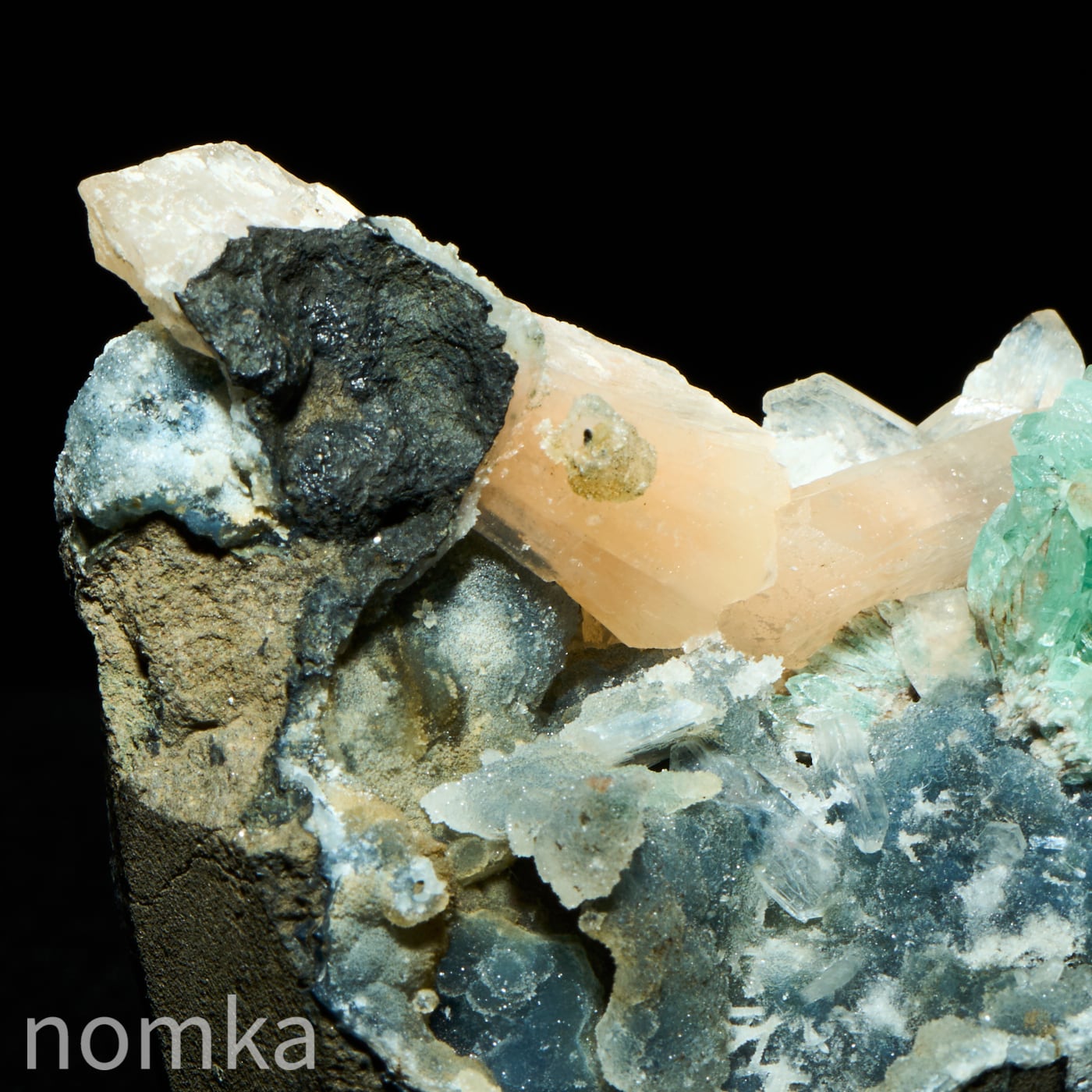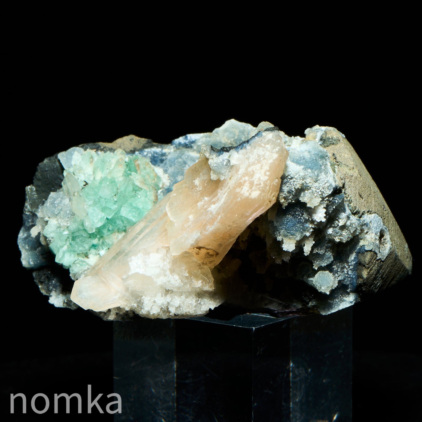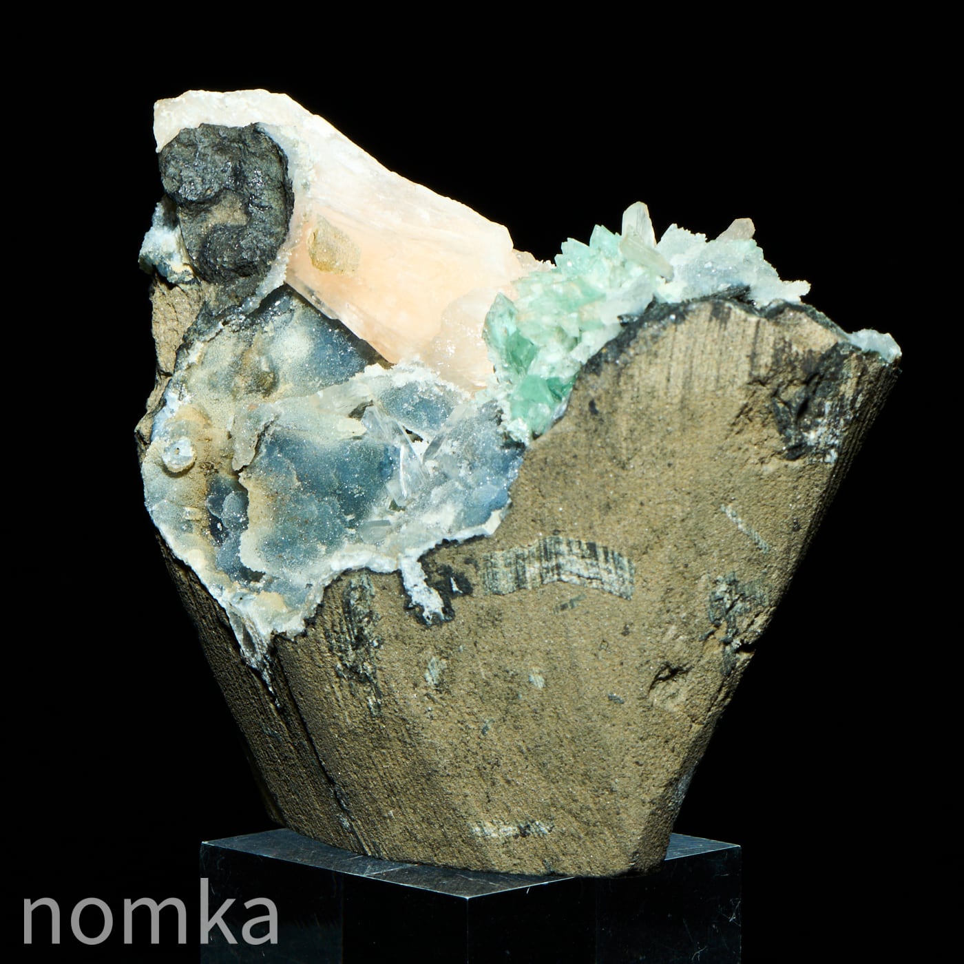 多肉植物の寄せ植えのように見えるグリーンアポフィと沸石グループの寄せ植え原石標本です。