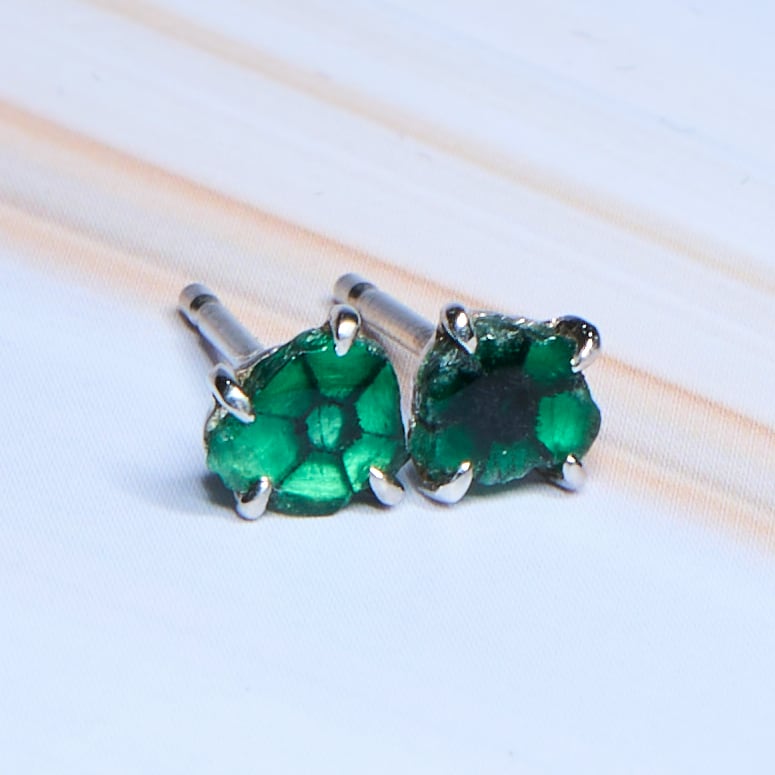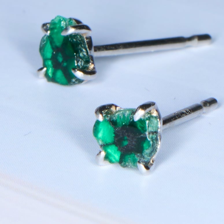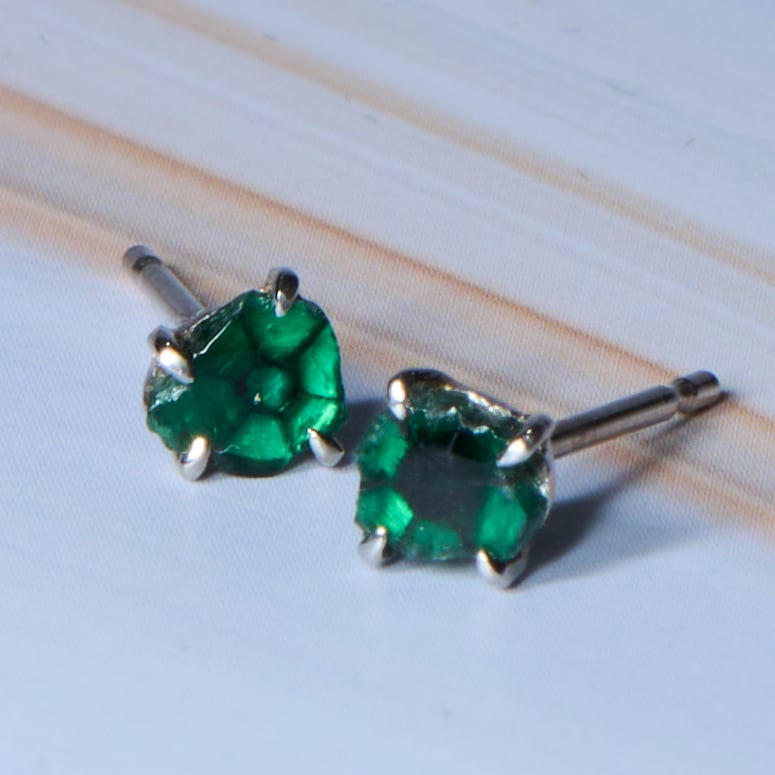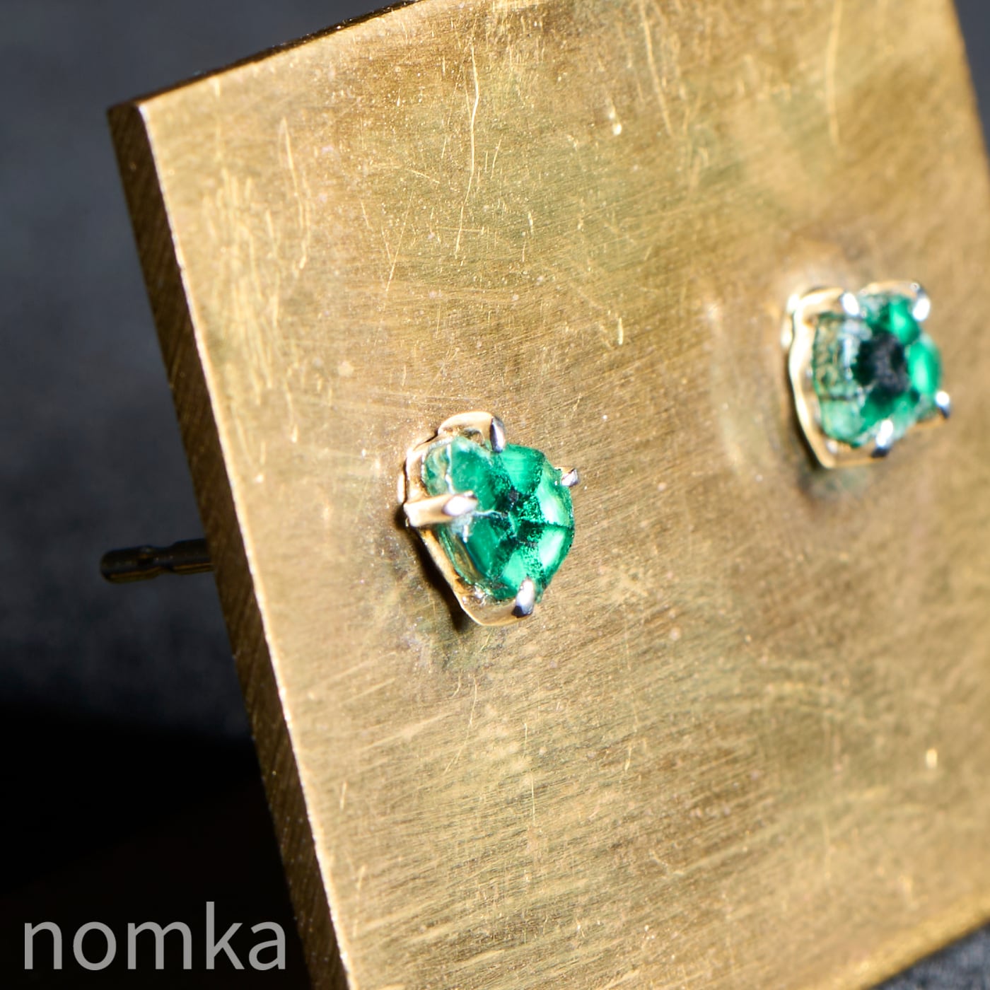 【稀少石】トラピッチェエメラルド スタッドピアス(コロンビア産/Pt900)