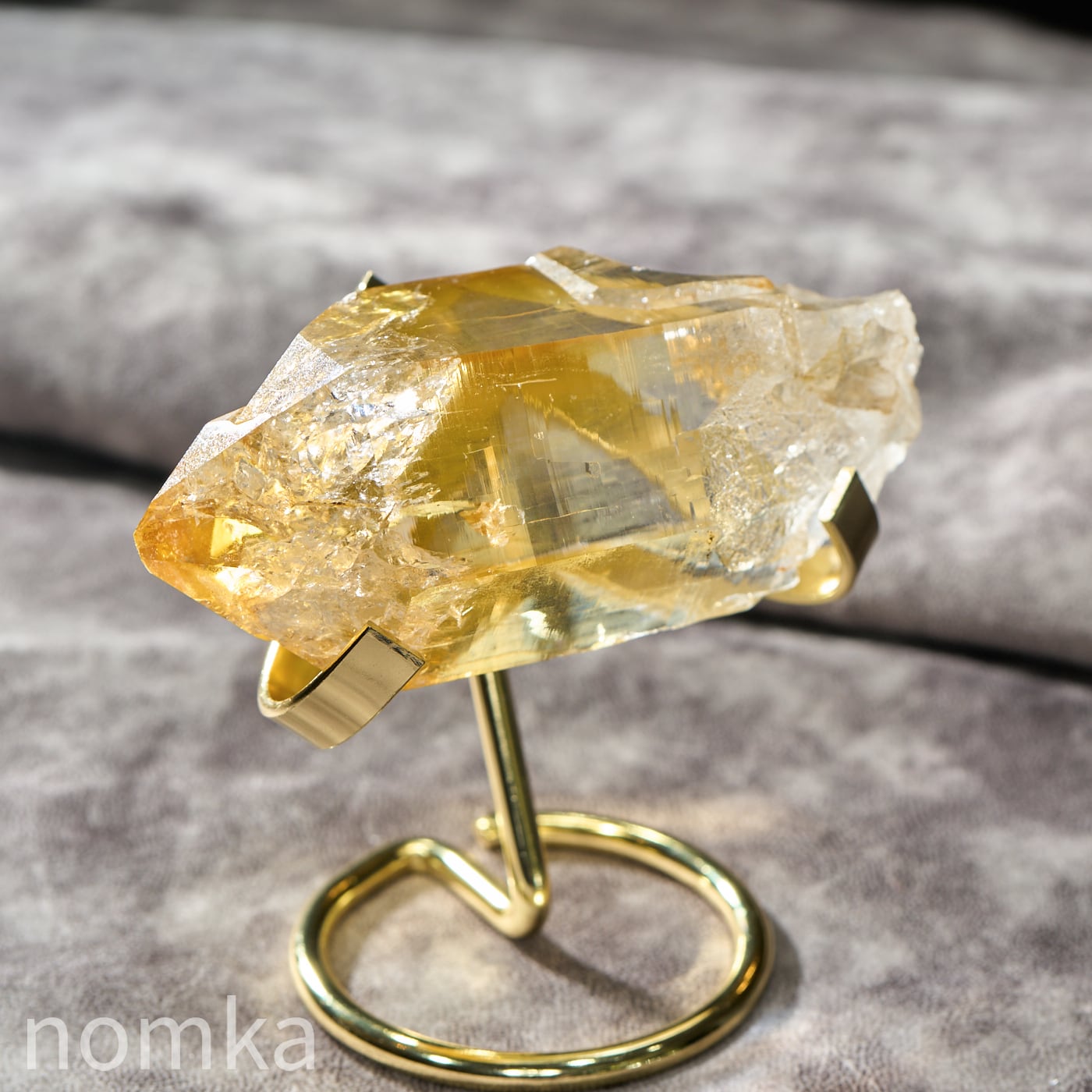 水晶の透明感とてり、また表面のリモナイトが薄く均一につきとてもキレイな黄金色の水晶ポイントに見えるほど素晴らしいゴールデンヒーラーです。