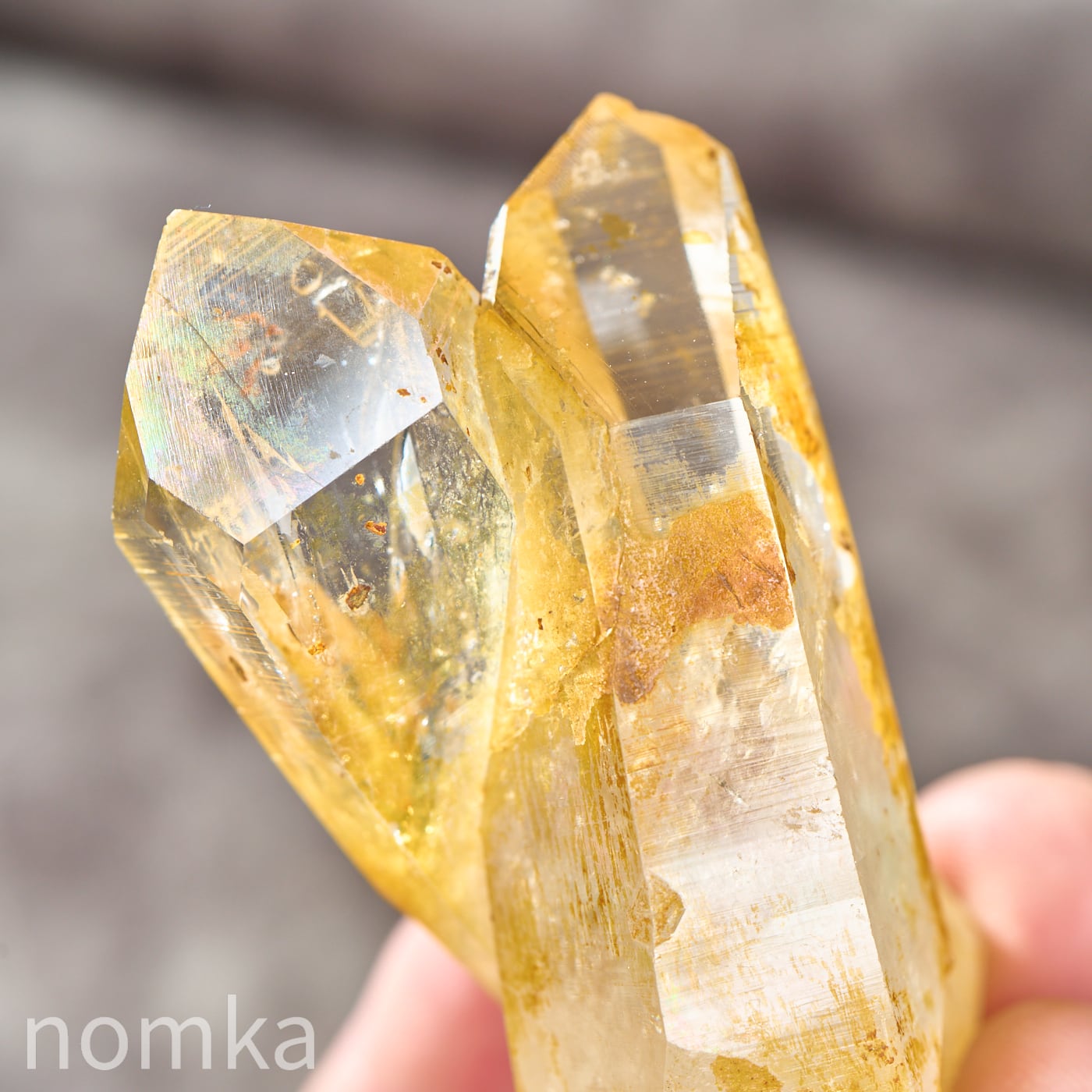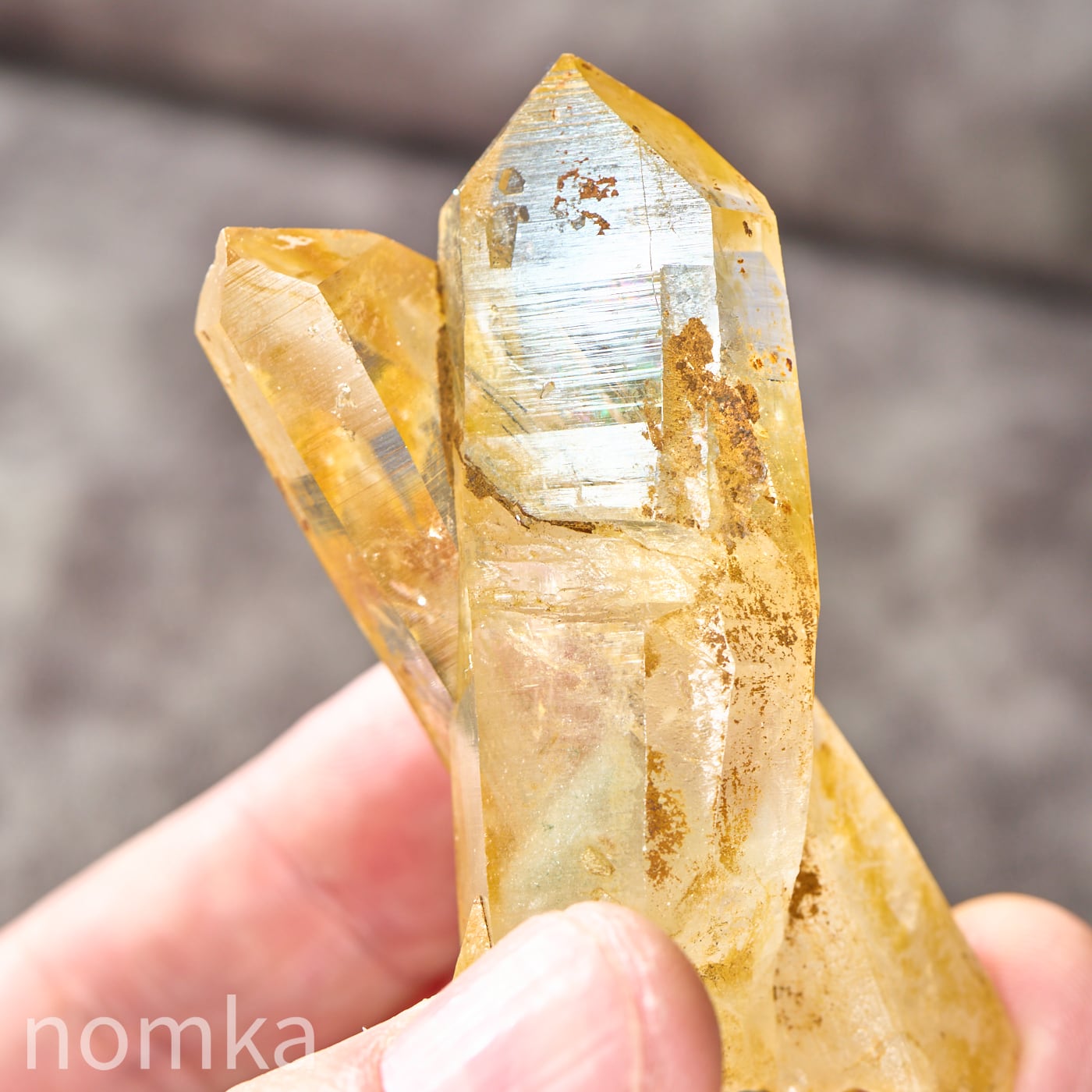 水晶(SiO₂)の表面にリモナイト(褐鉄鉱)や酸化鉄、マグネシウムなどの鉄分がコーティングされ、黄金色や虹色に輝く稀少なパワーストーンで「リモナイト(ライモナイト)インクォーツ」ともよばれます。