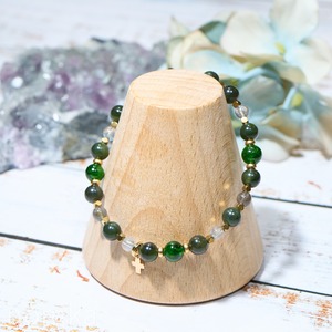 【人生の基盤を安定させる】ネフライト×クロムダイオプサイトデザインワイヤーブレス(約15cm) naw25-0064