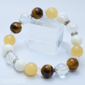 【チャンスを引き寄せる】アラゴナイト×タイガーアイ×マザーオブパール デザインゴムブレス(約15.5cm) naw25-0248
