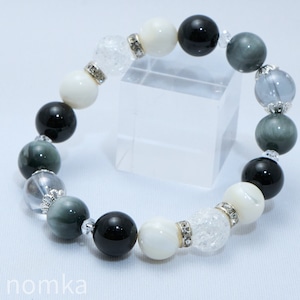 【揺るがない自分を築く】オニキス×イーグルアイ×マザーオブパール デザインゴムブレス(約15cm) naw25-0246