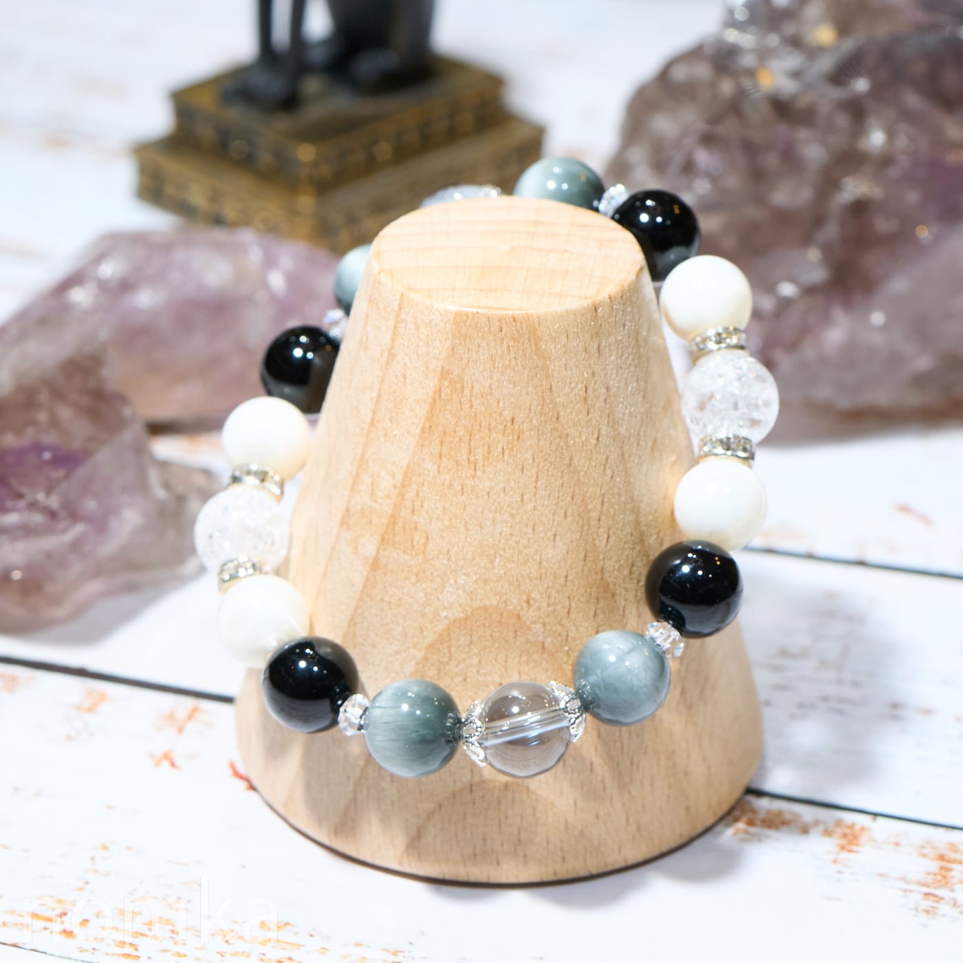 決断が必要な時、自信を持って一歩踏み出したい時に強さだけでなく柔軟性をもって前進をサポートしてくれるモノトーンカラーの守護ブレスレットです。