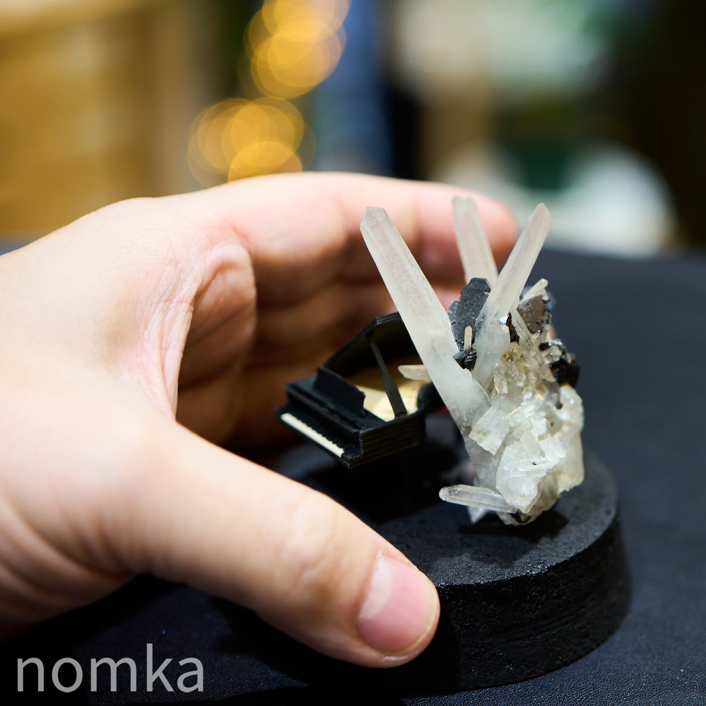 水晶は透明アクリルの小さな板にミネラルタック(練り消しのようなものです)で留めてあります。