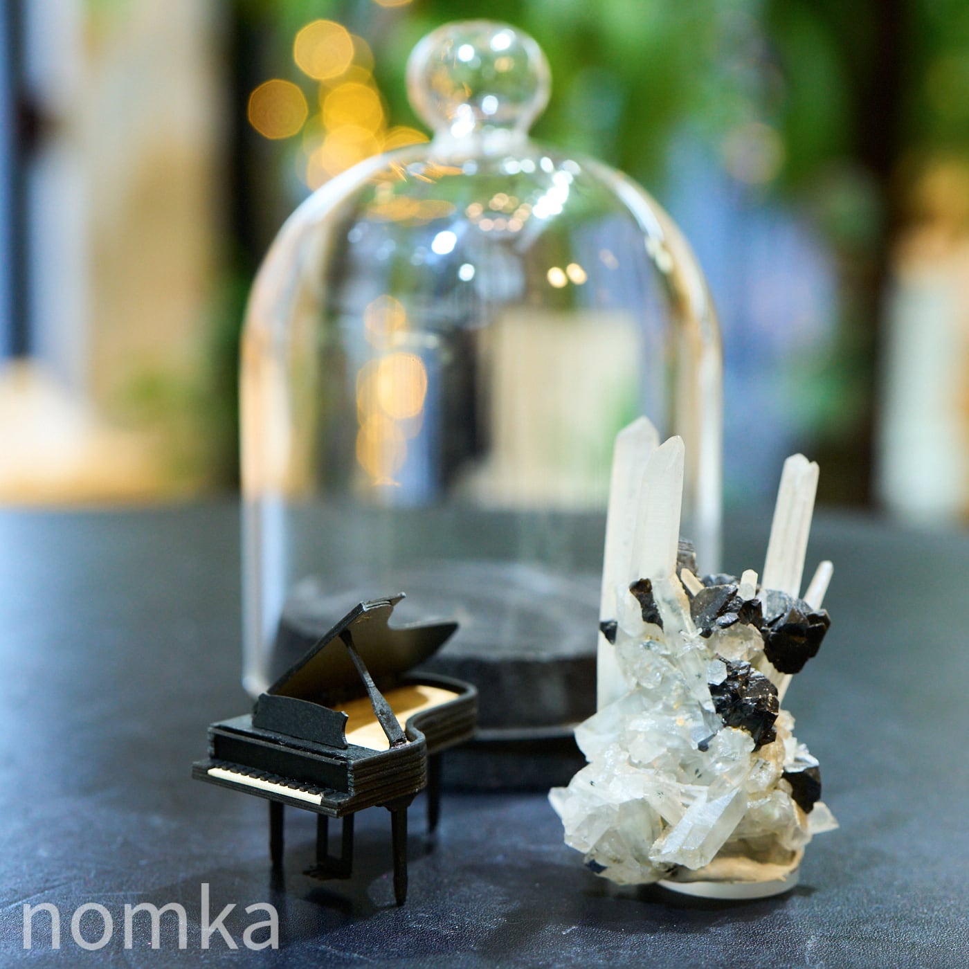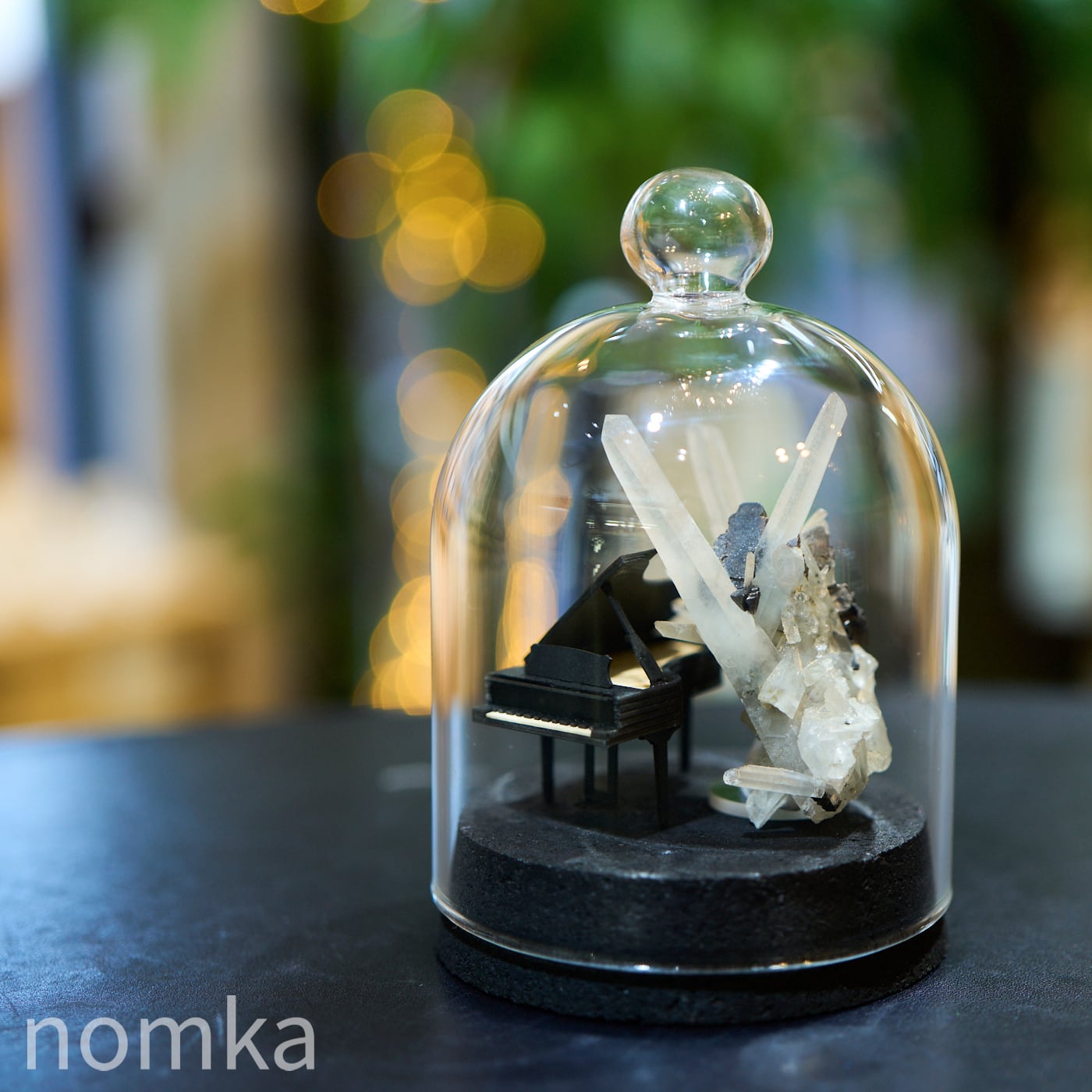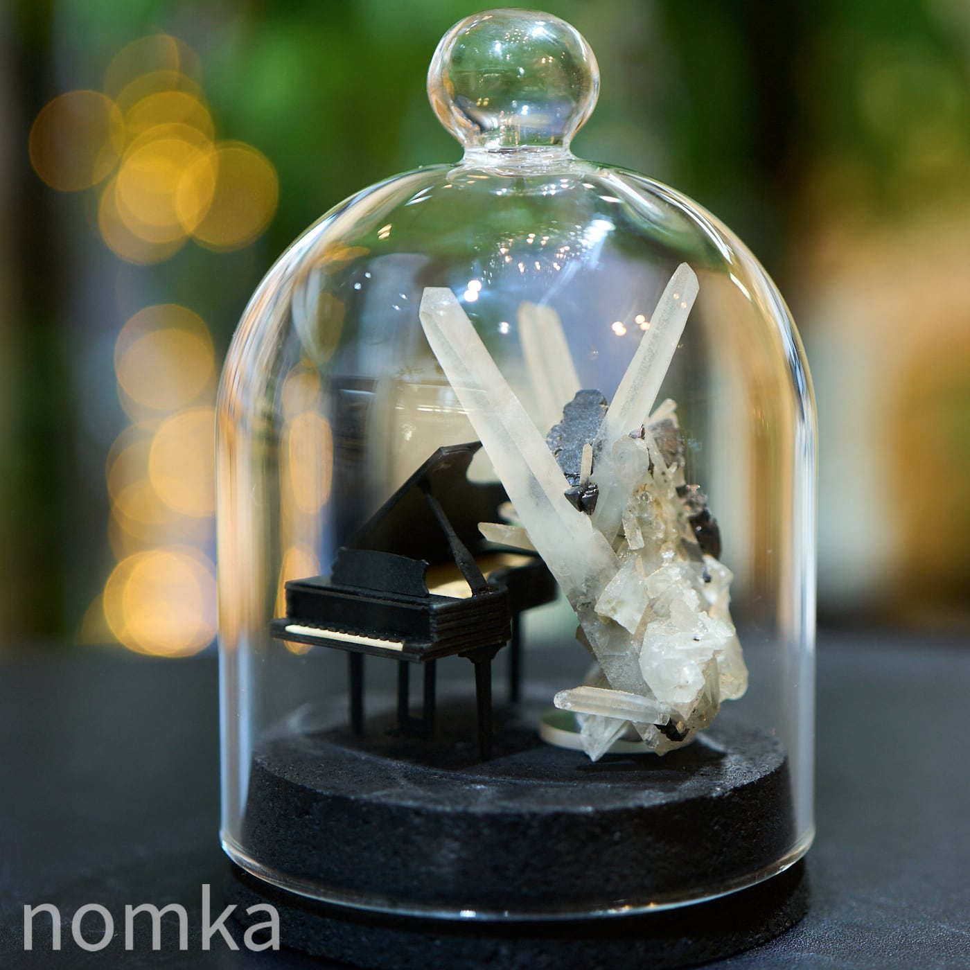 ブルガリア産の水晶と、小さなピアノ。 ガラスのドームに、あの日の音色を閉じ込めました。