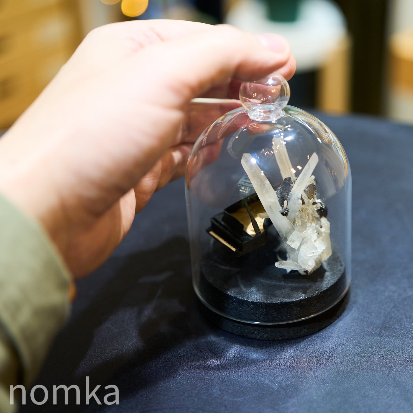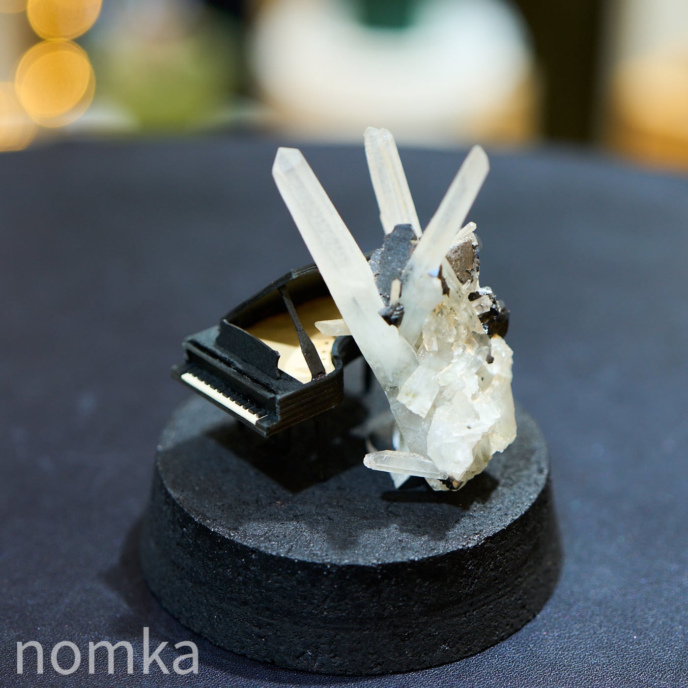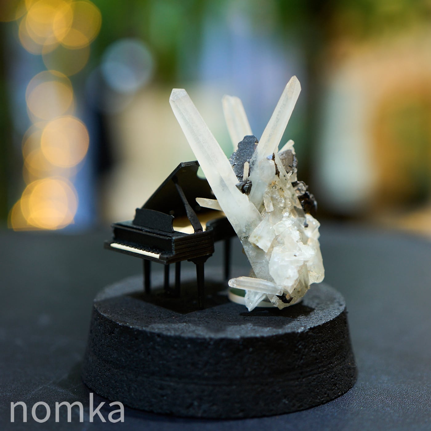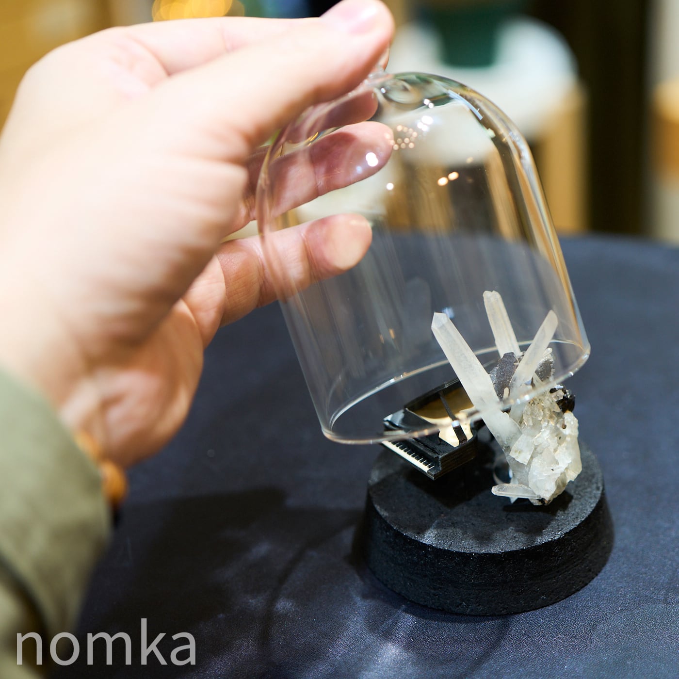 ブルガリア産の水晶と、小さなピアノ。 ガラスのドームに、あの日の音色を閉じ込めました。