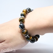 【鉄壁のバリアと守護】天眼石×華南(ミックス)タイガーアイ デザインゴムブレス(約17.5cm) naw25-0038