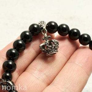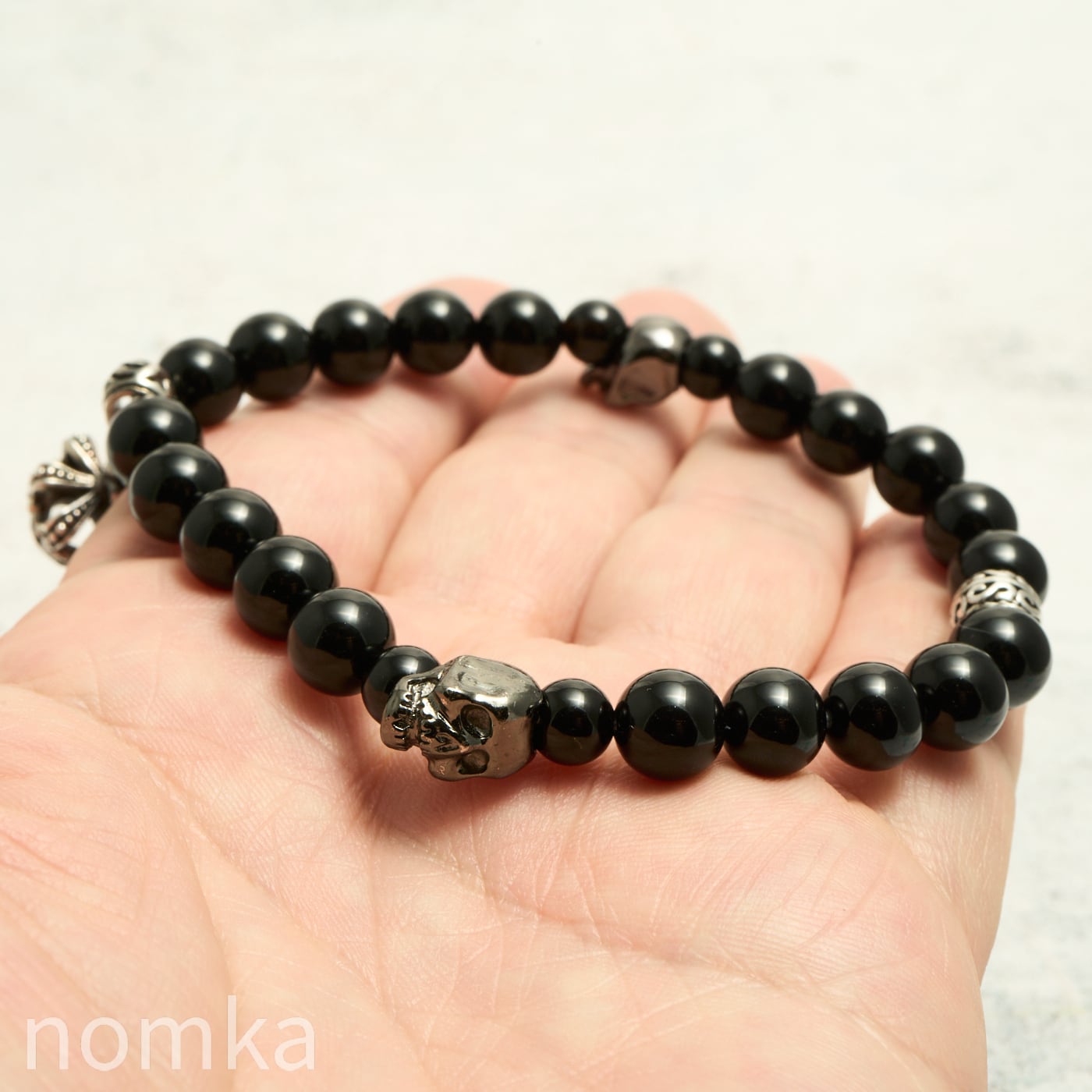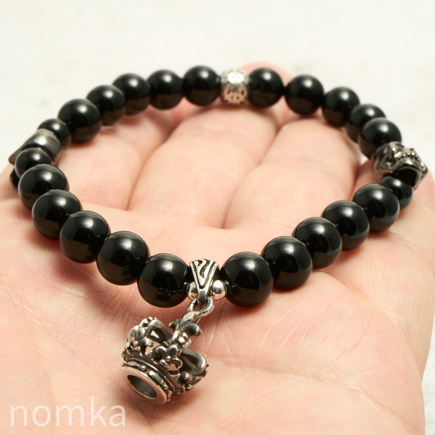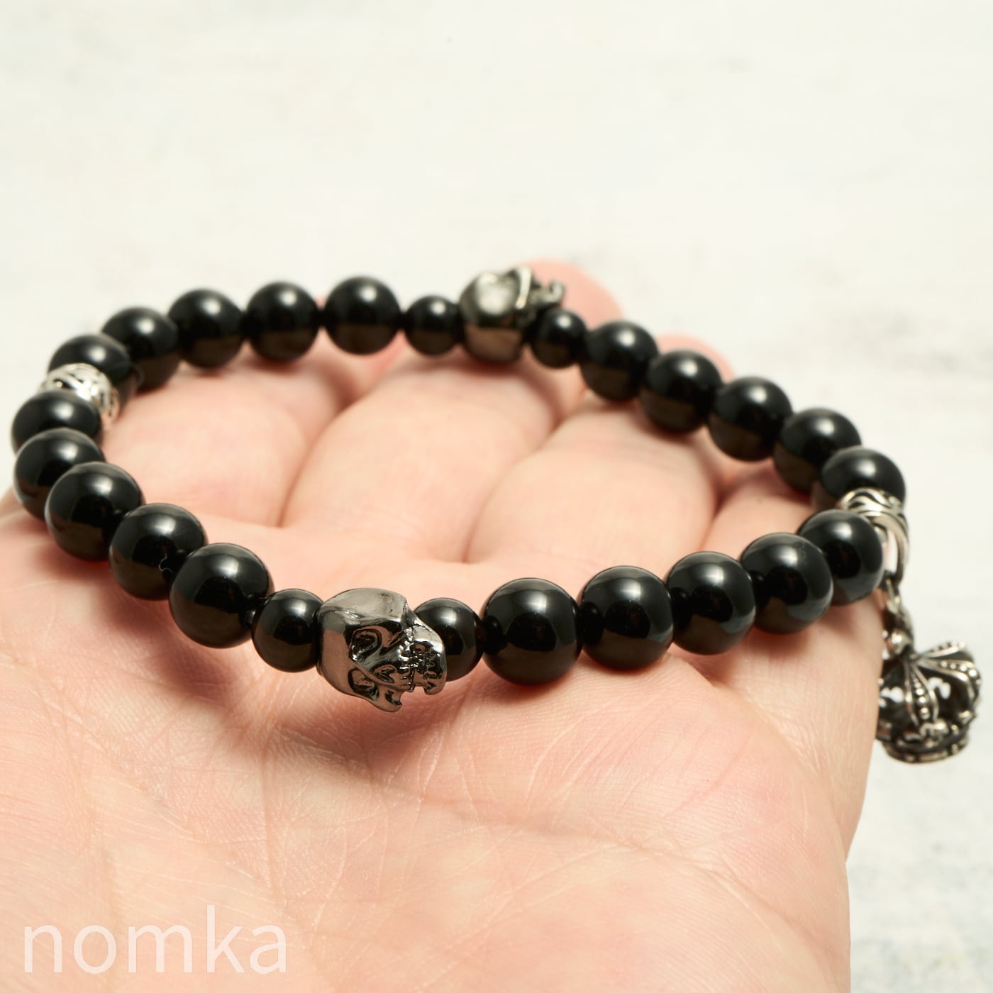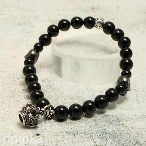 【THE REBIRTH / 達成と栄光】オニキス×スカル×クラウンチャーム デザインブレスレット 18cm nss-0061