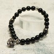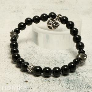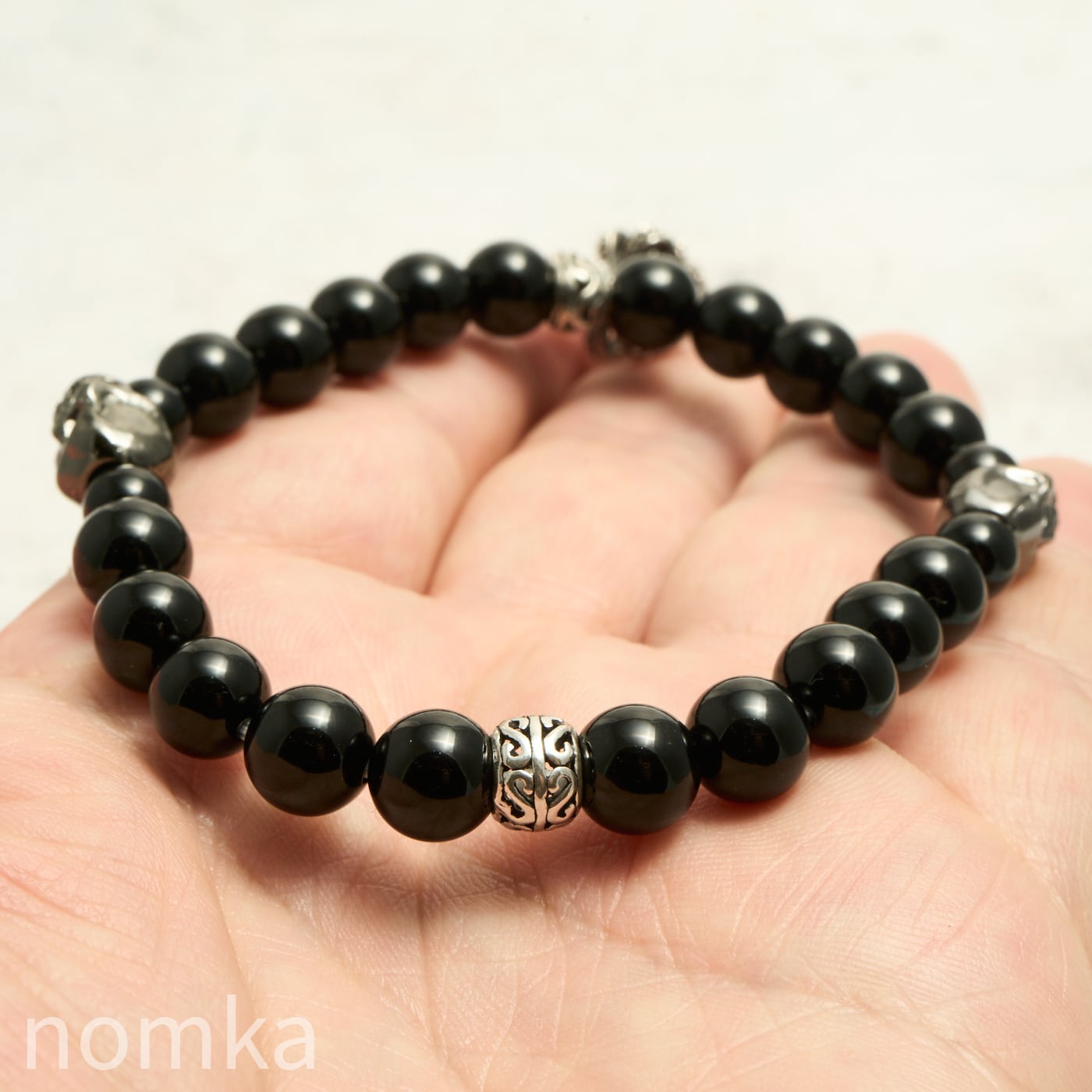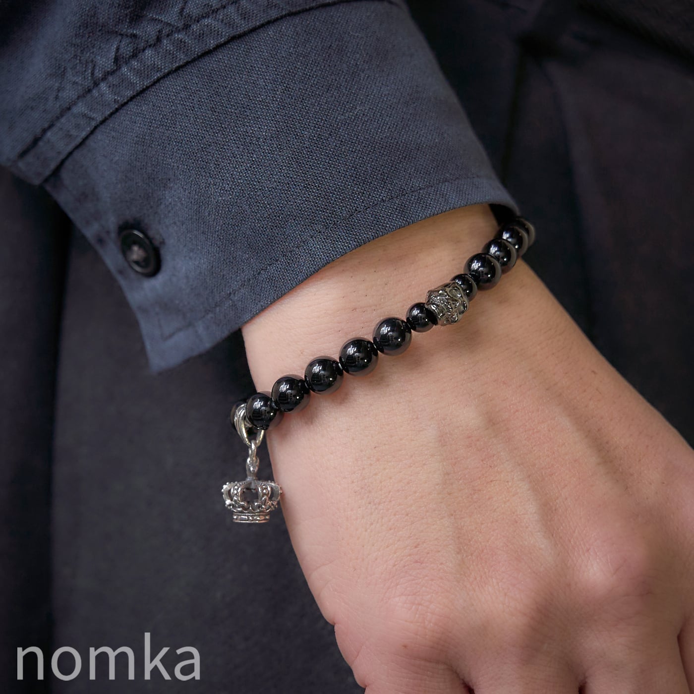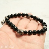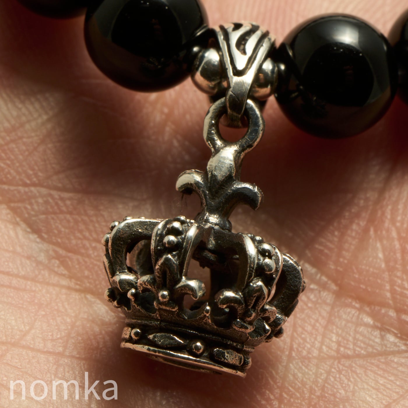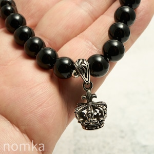 【THE REBIRTH / 達成と栄光】オニキス×スカル×クラウンチャーム デザインブレスレット 18cm nss-0061