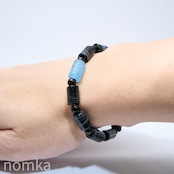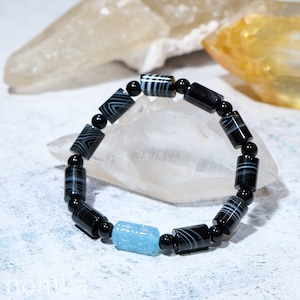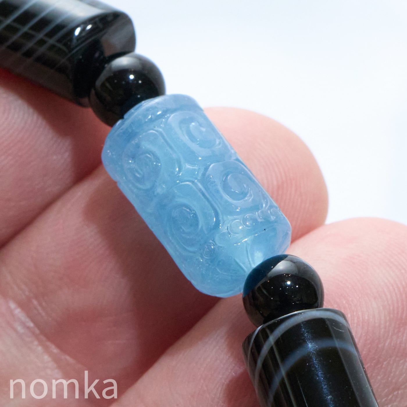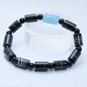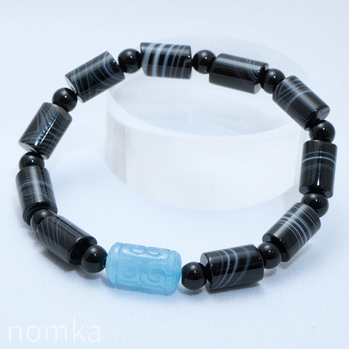 【PRAYER -静寂を回す、清流の守護-】縞オニキス×イアクアマリンマニ車 デザインブレスレット(約17cm) naw25-0027