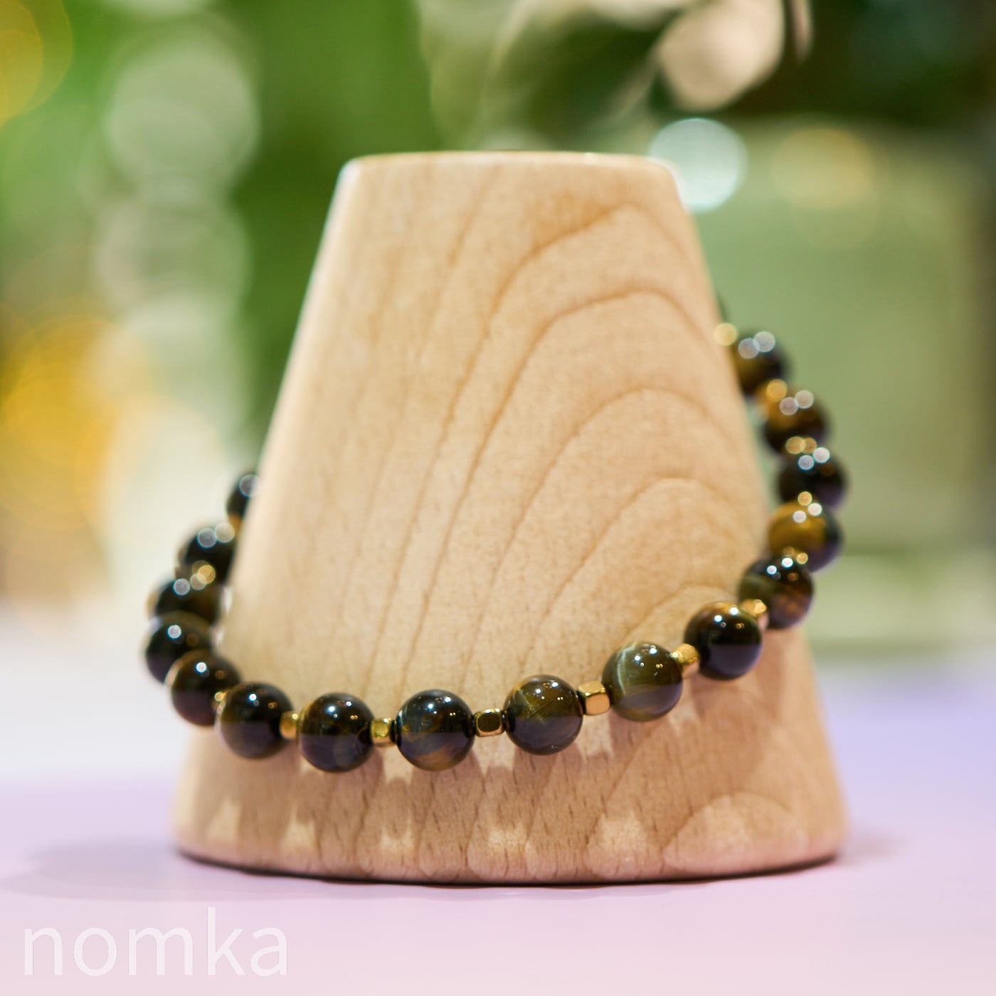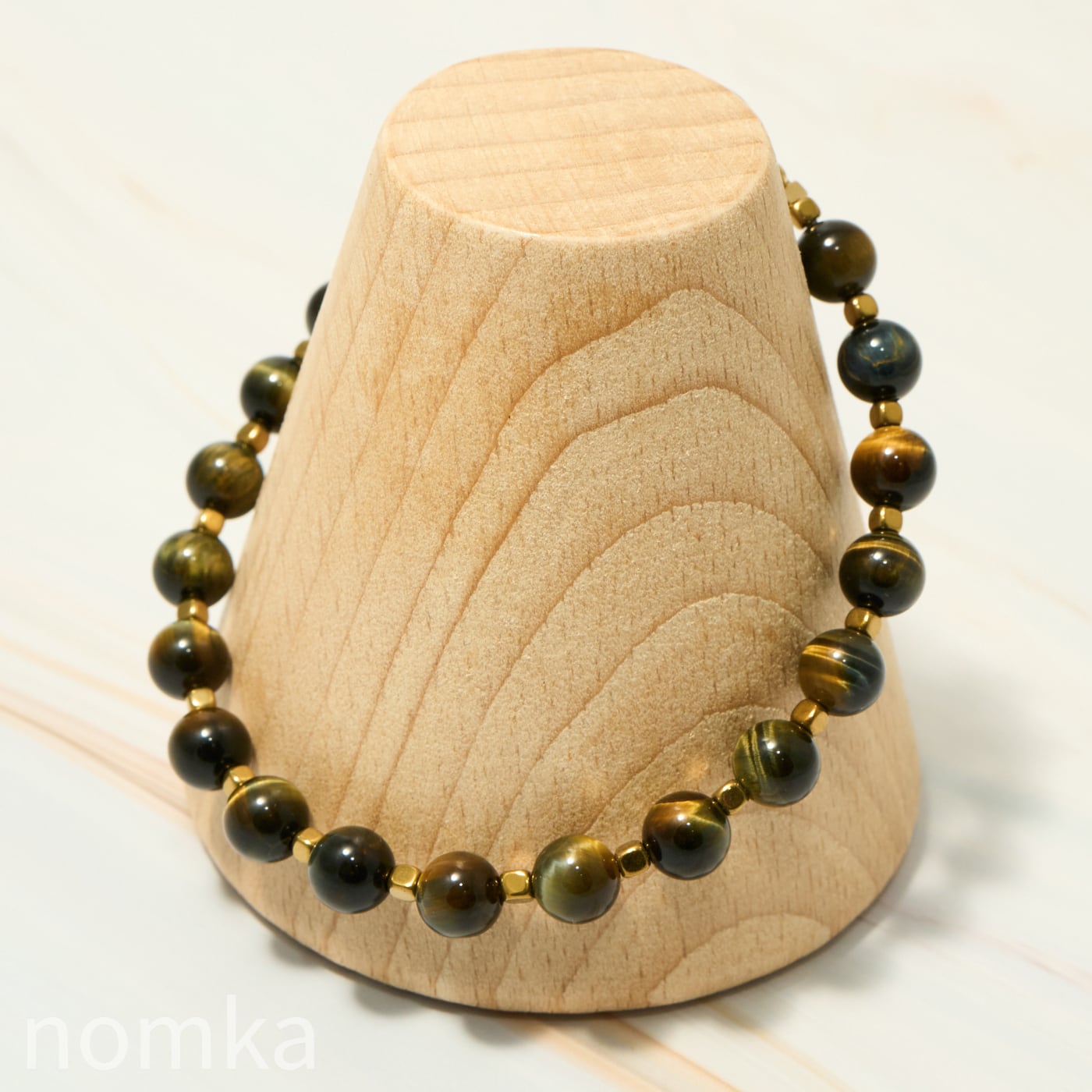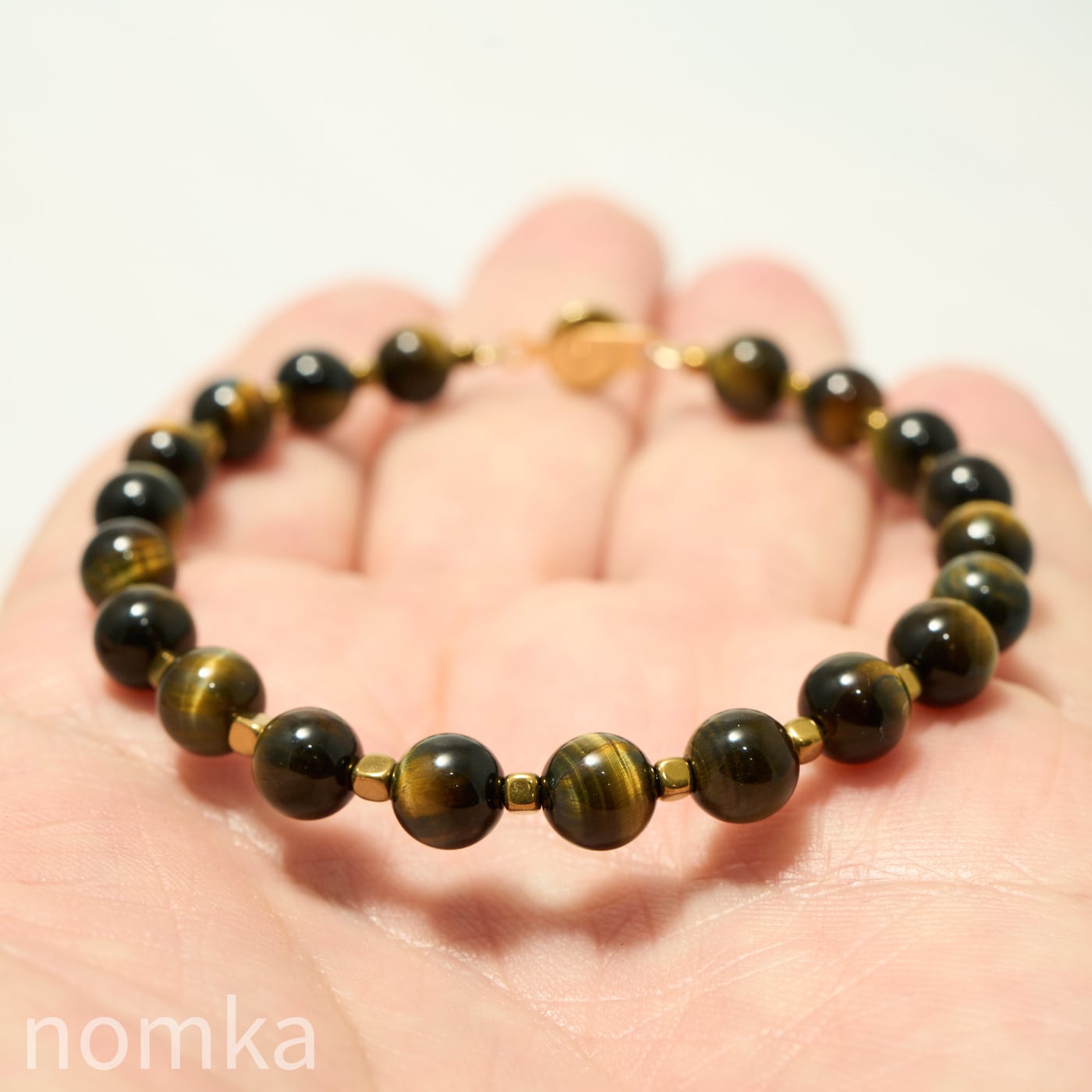 一般的なタイガーアイよりも落ち着いたトーンの6mm珠は、主張しすぎず、けれど確かな存在感を放ちます。