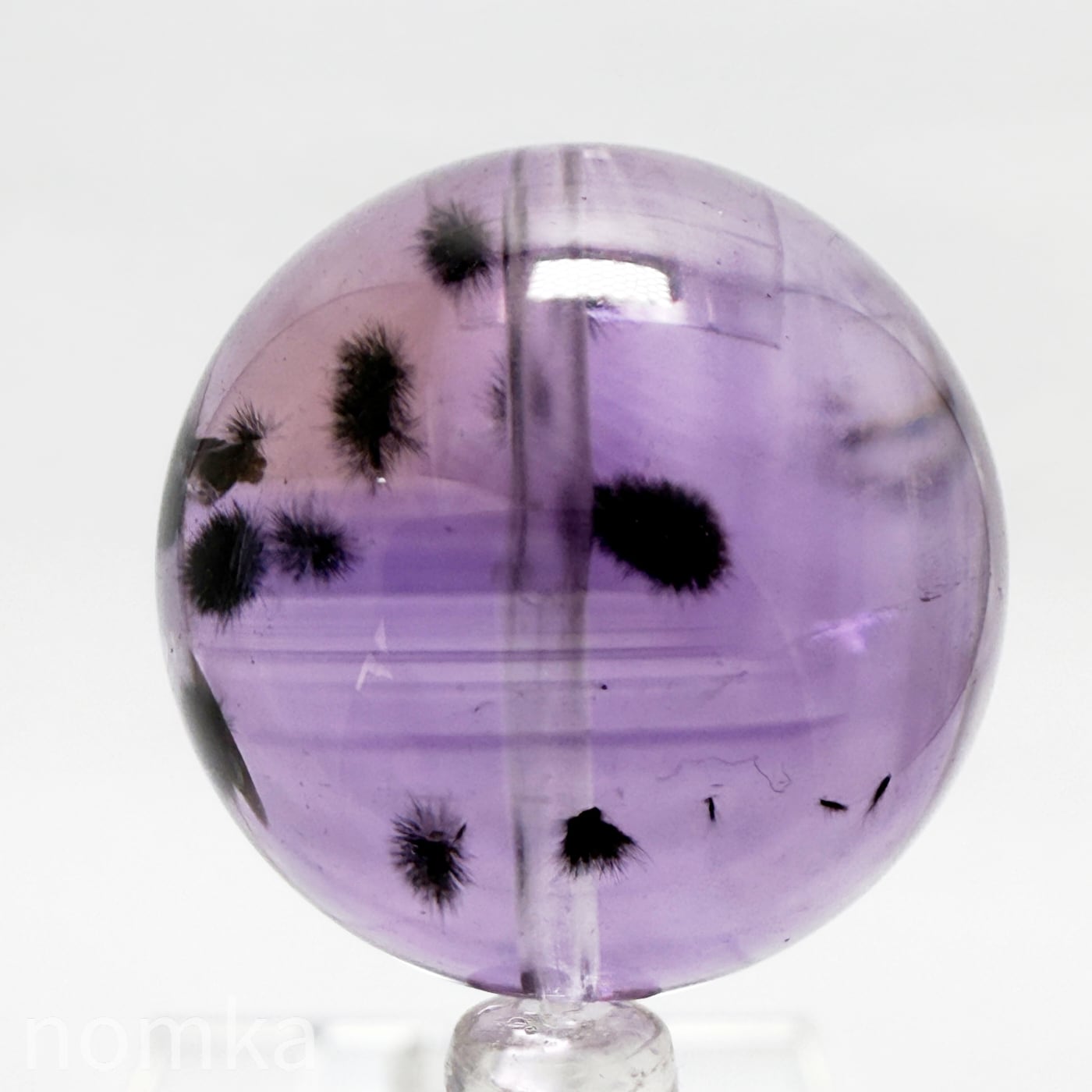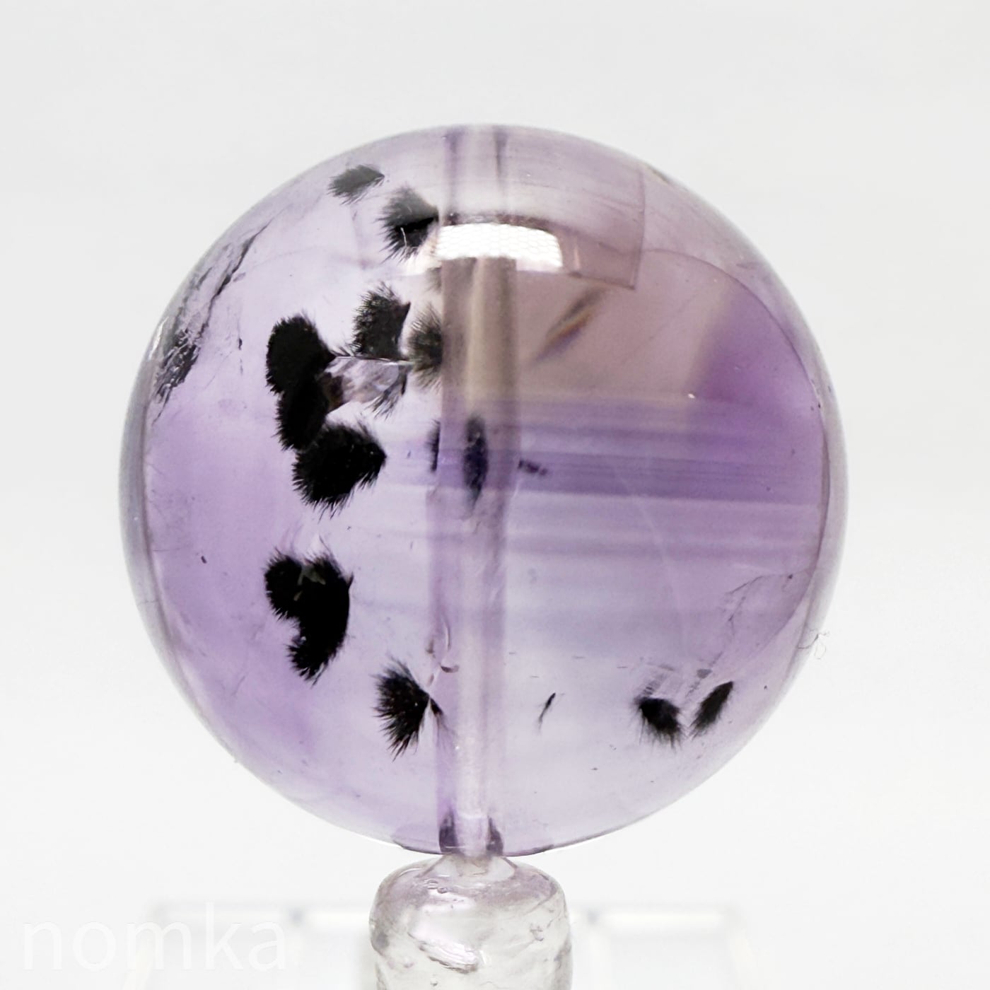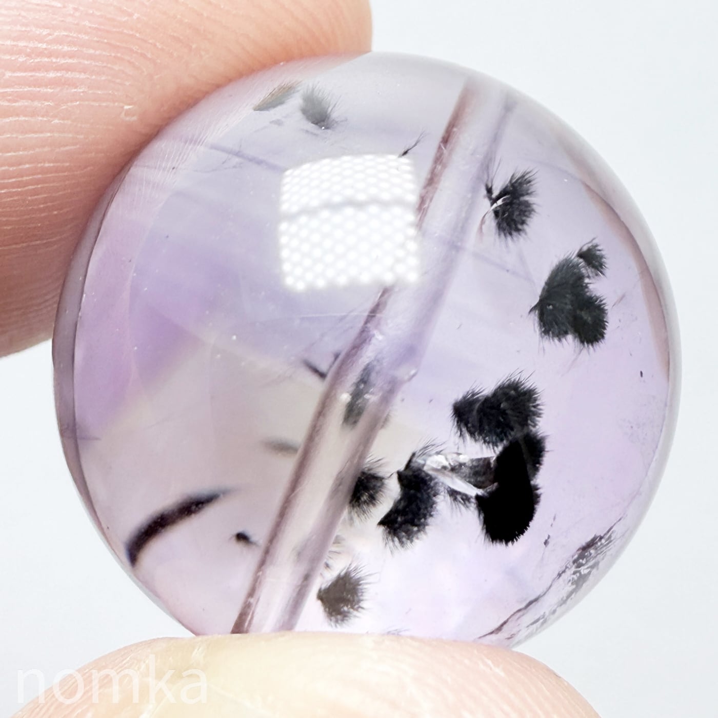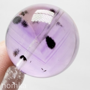 アメジストの中に『ロマネシュ鉱』が黒い小さな花のようにポツポツと入っているレアストーンです。サイズもしっかりとした22mm