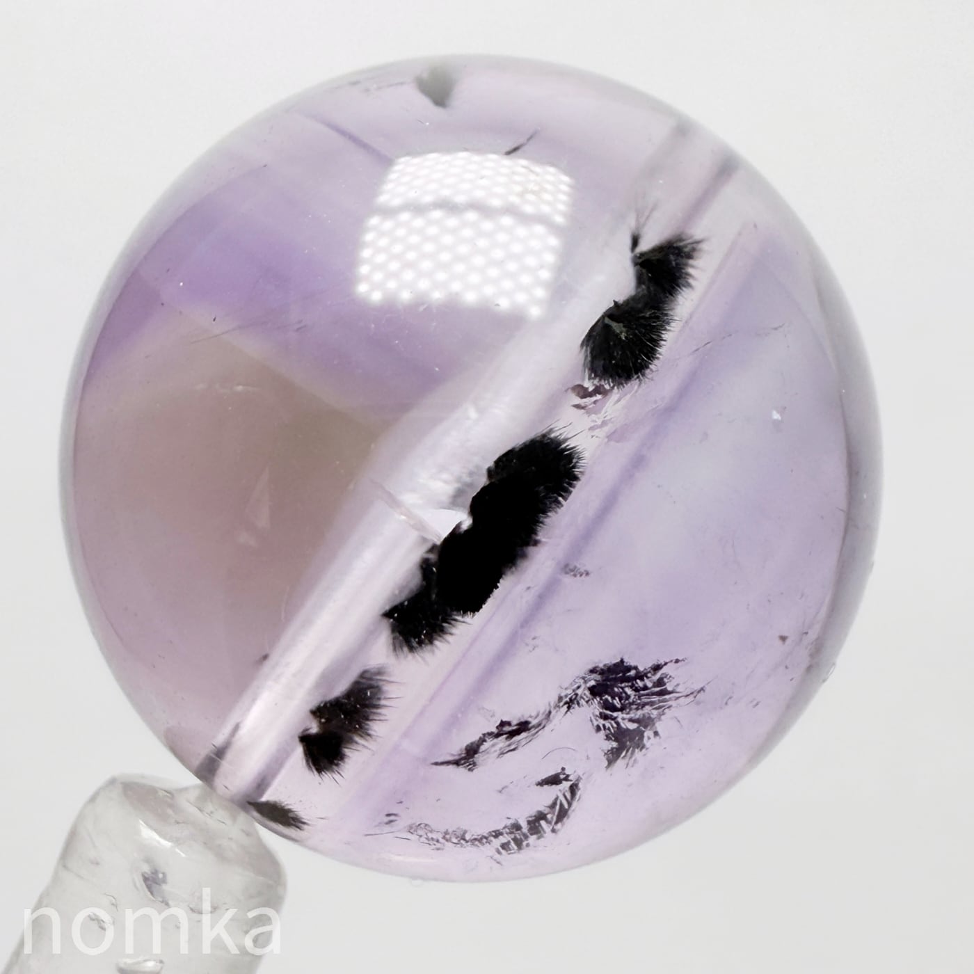 元来『ロマネシュ鉱』は水晶と共存しにくい鉱石なので、水晶(アメジスト)の中に入り内包されるのは珍しいのです。