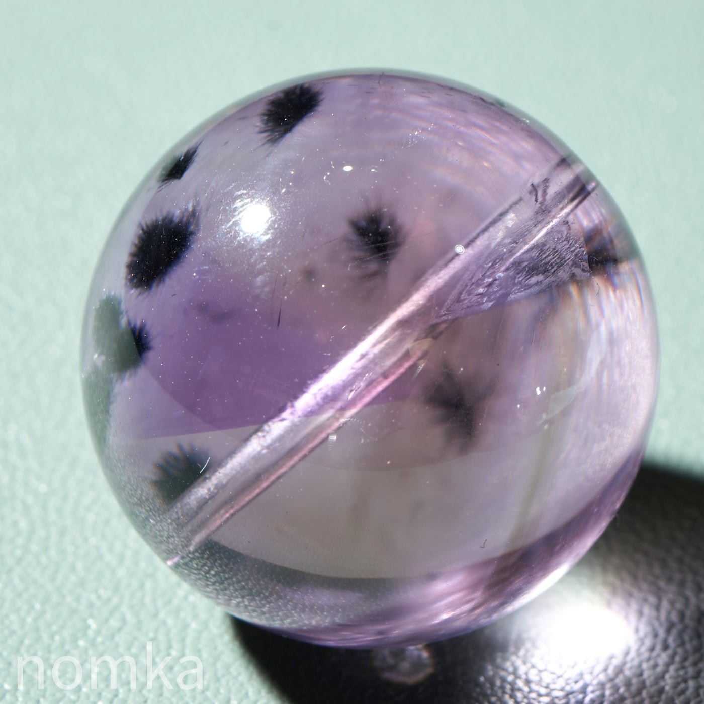 アメジストの中に『ロマネシュ鉱』が黒い小さな花のようにポツポツと入っているレアストーンです。サイズもしっかりとした22mm