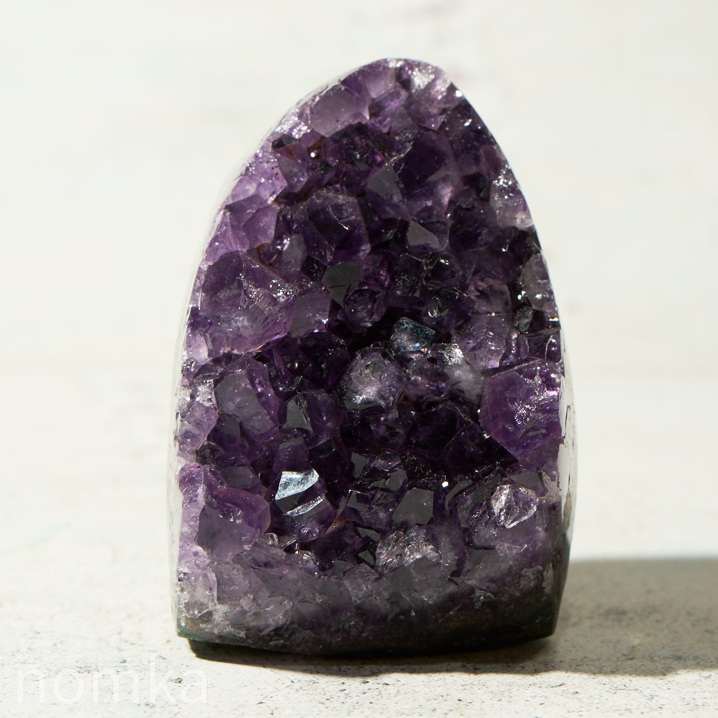 ウルグアイ産アメジストの最大の特徴である「濃厚な発色」を体現したような、美しいミニドームです。
