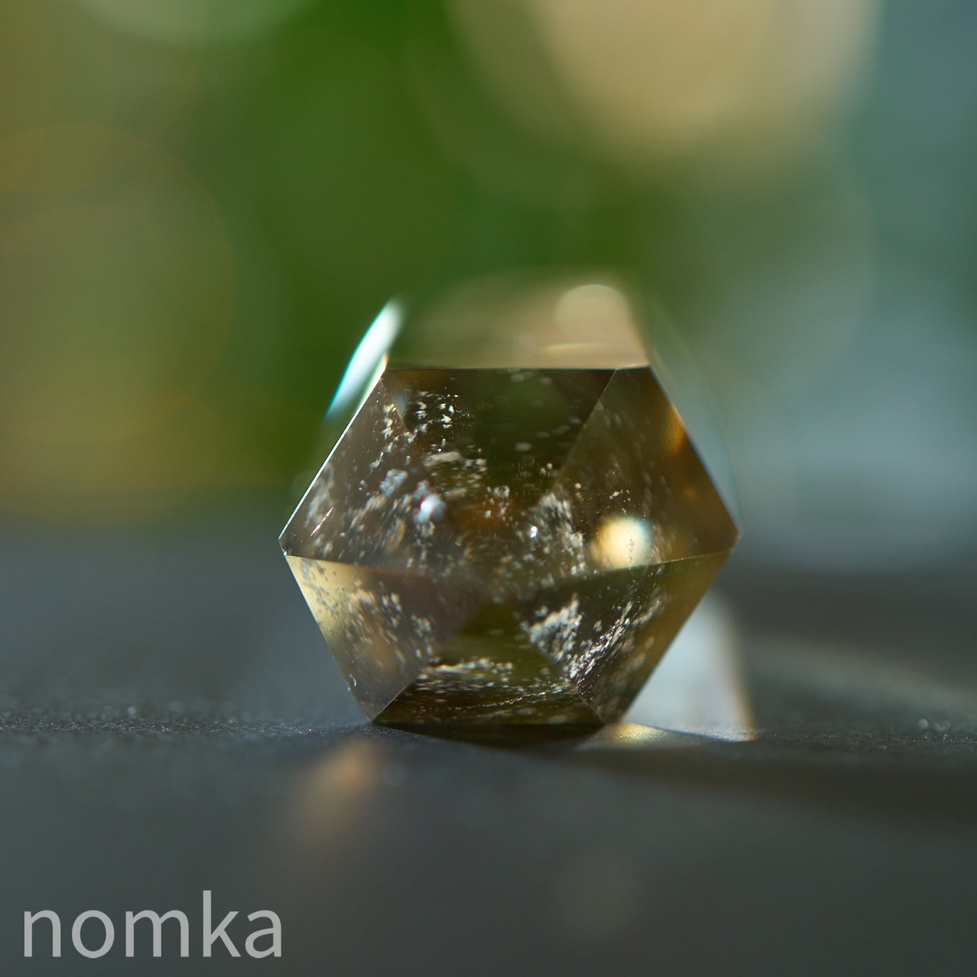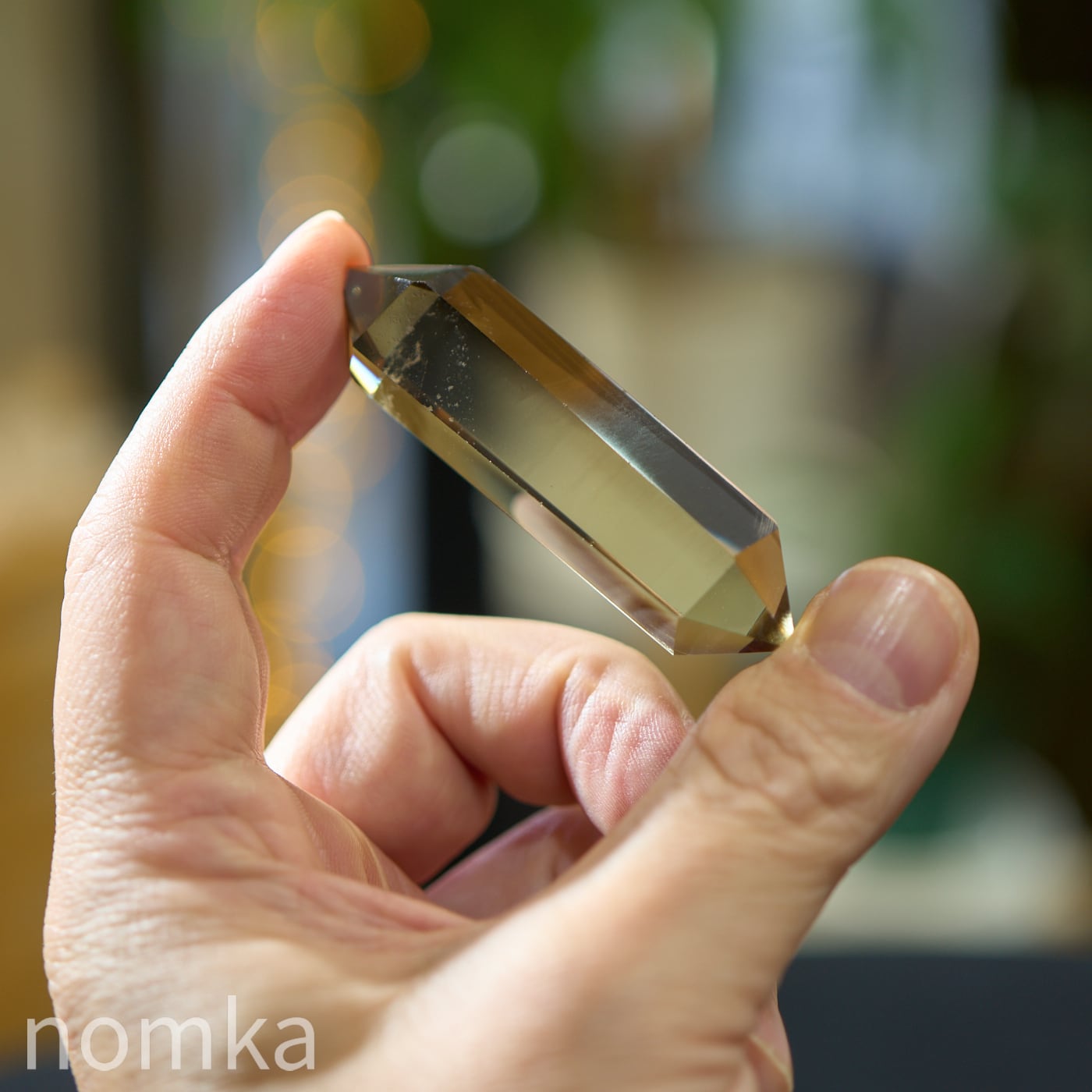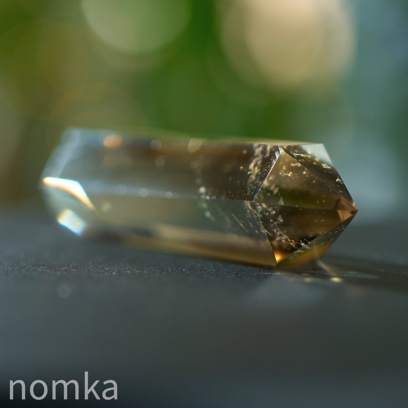 クリアな黄金色から、深みのあるスモーキーカラーへと移り変わるバイカラーのような美しさは、大地の中でこの石が育んできた悠久の時間を物語っています。