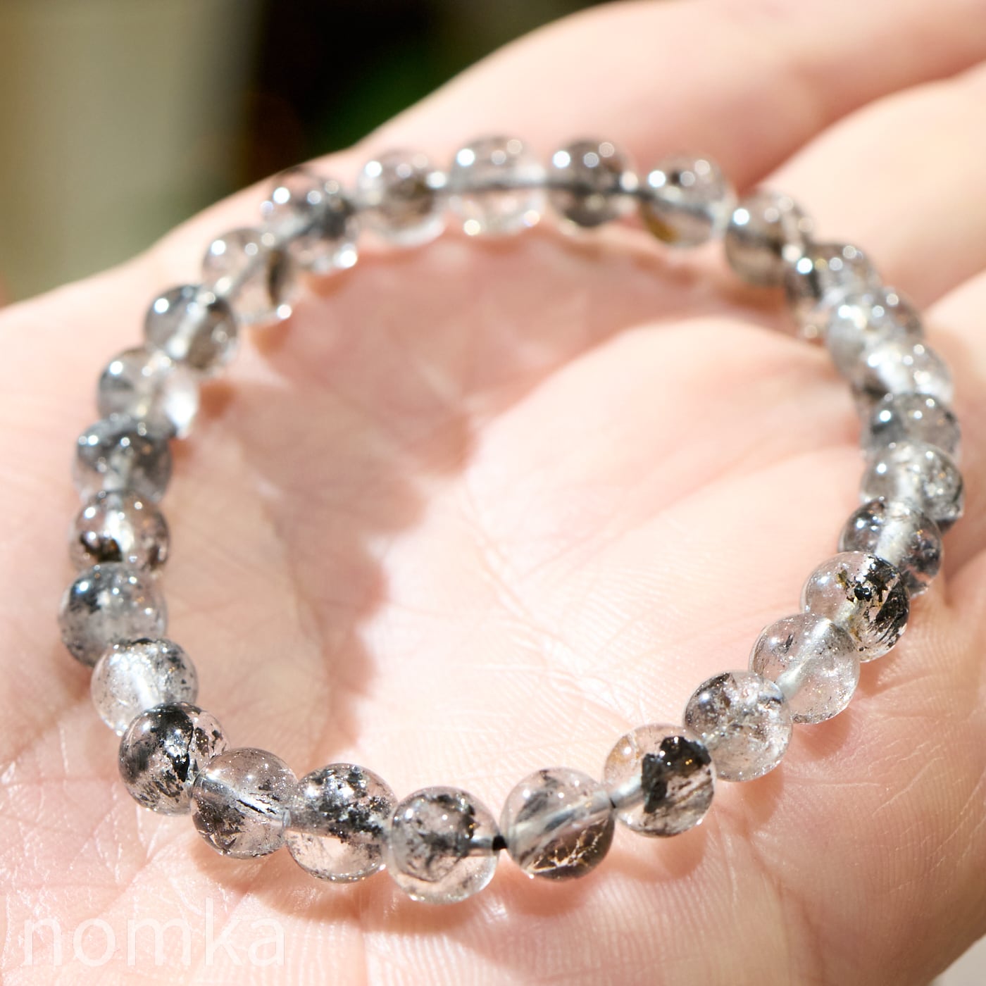 【モノクロームの小宇宙】ヒマラヤ産 タール入りエレスチャル水晶 一連ブレスレット