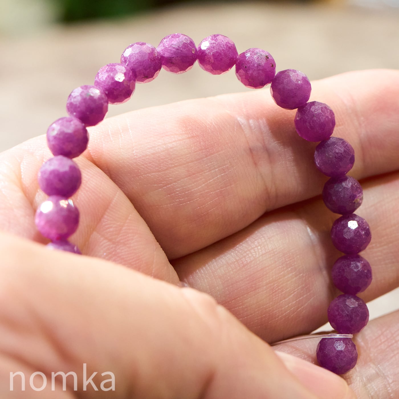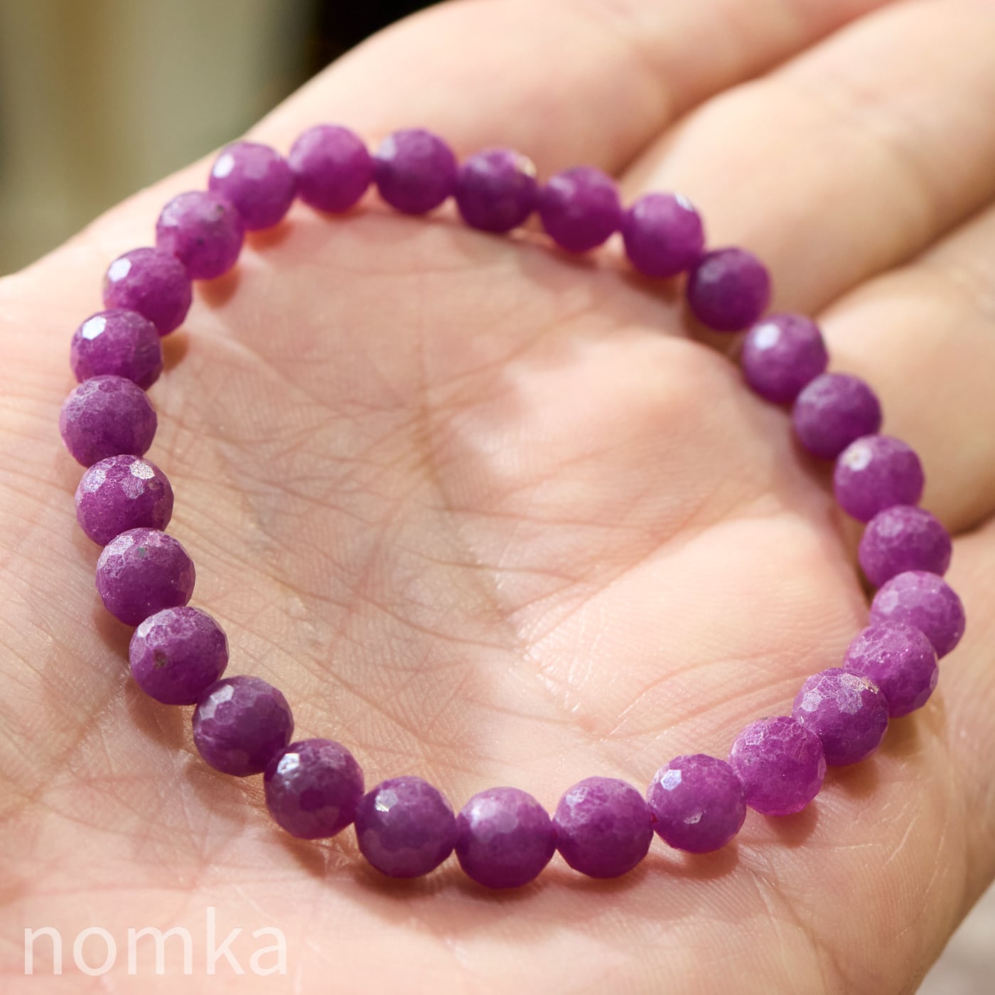 【情熱が目覚める】ビルマ産 ルビーカット 一連ブレスレット(6.5mm珠/約16cm)