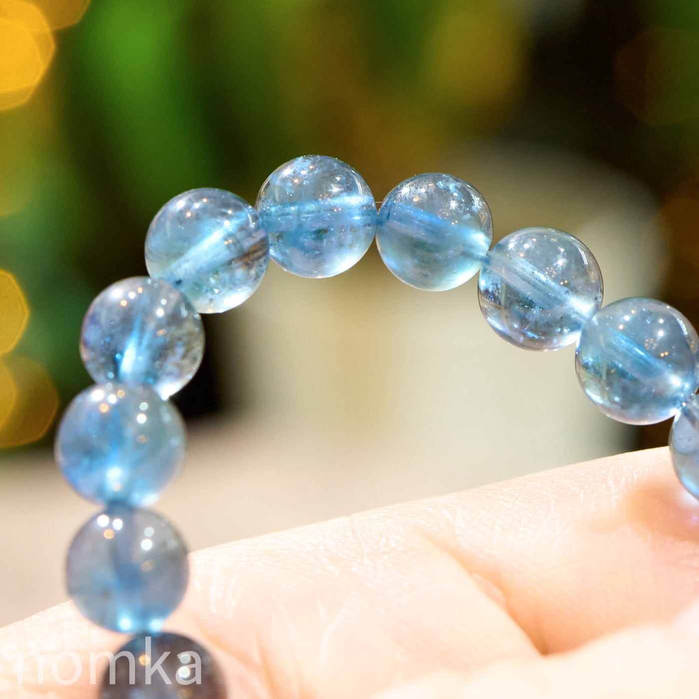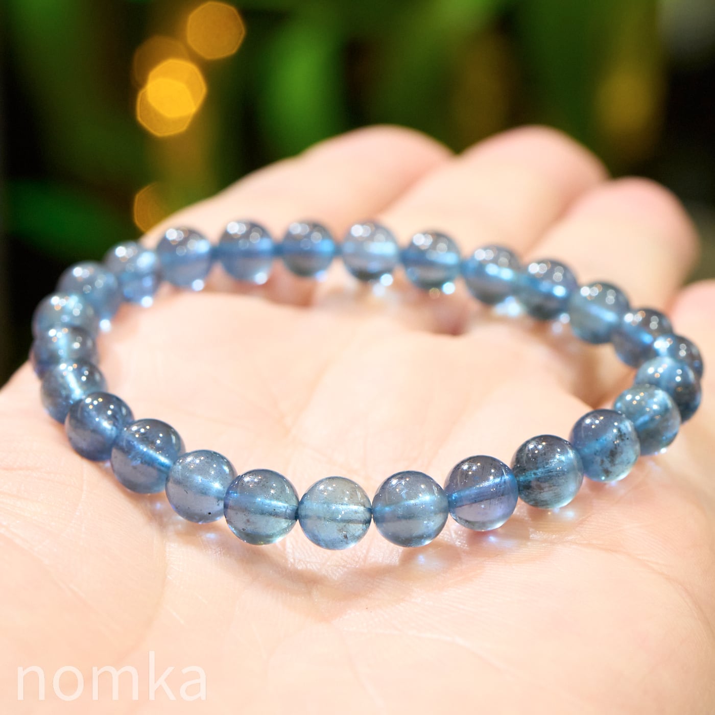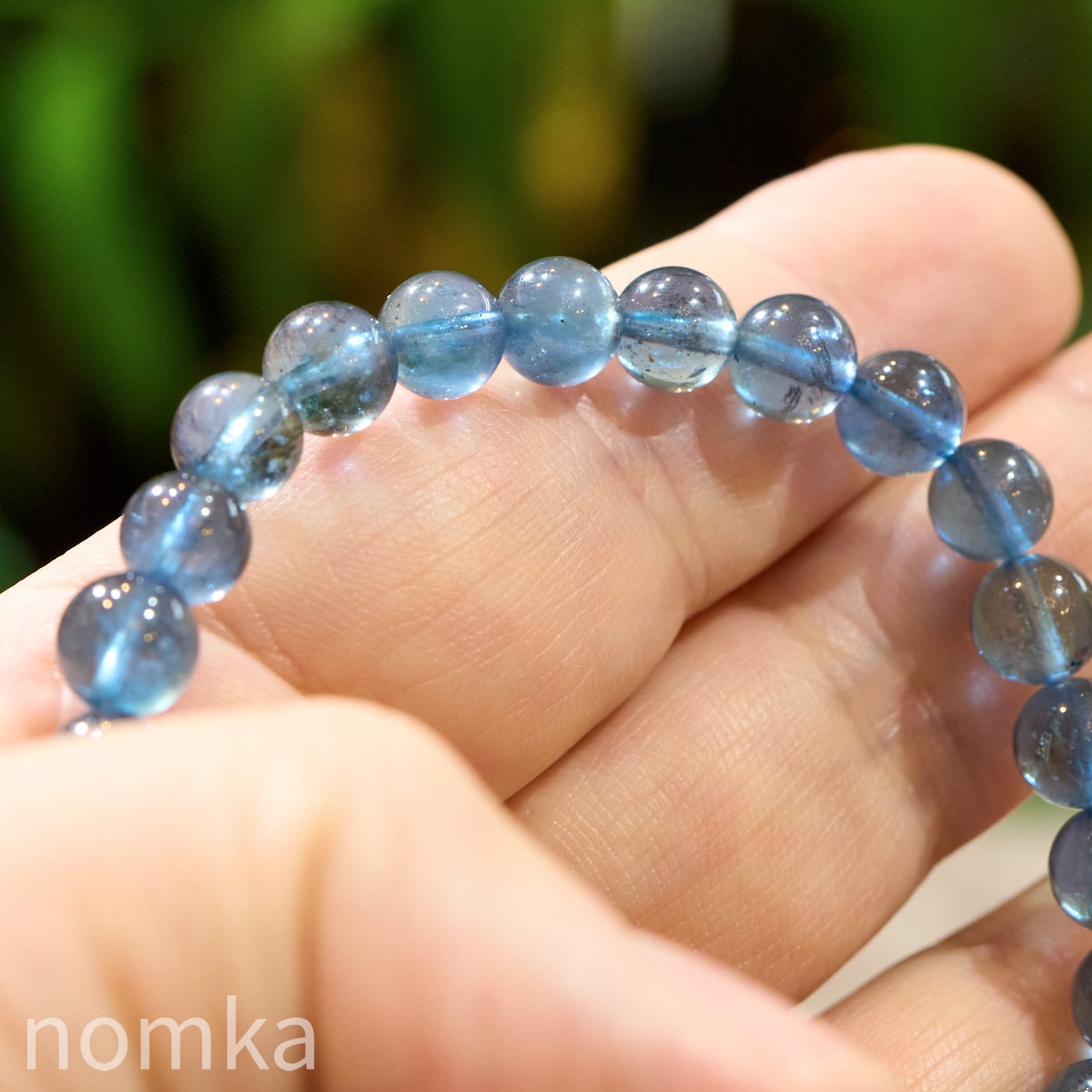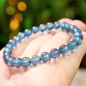 【深海に差し込む光】シラー入りモスアクアマリン 一連ブレスレット (7mm珠/約16cm)