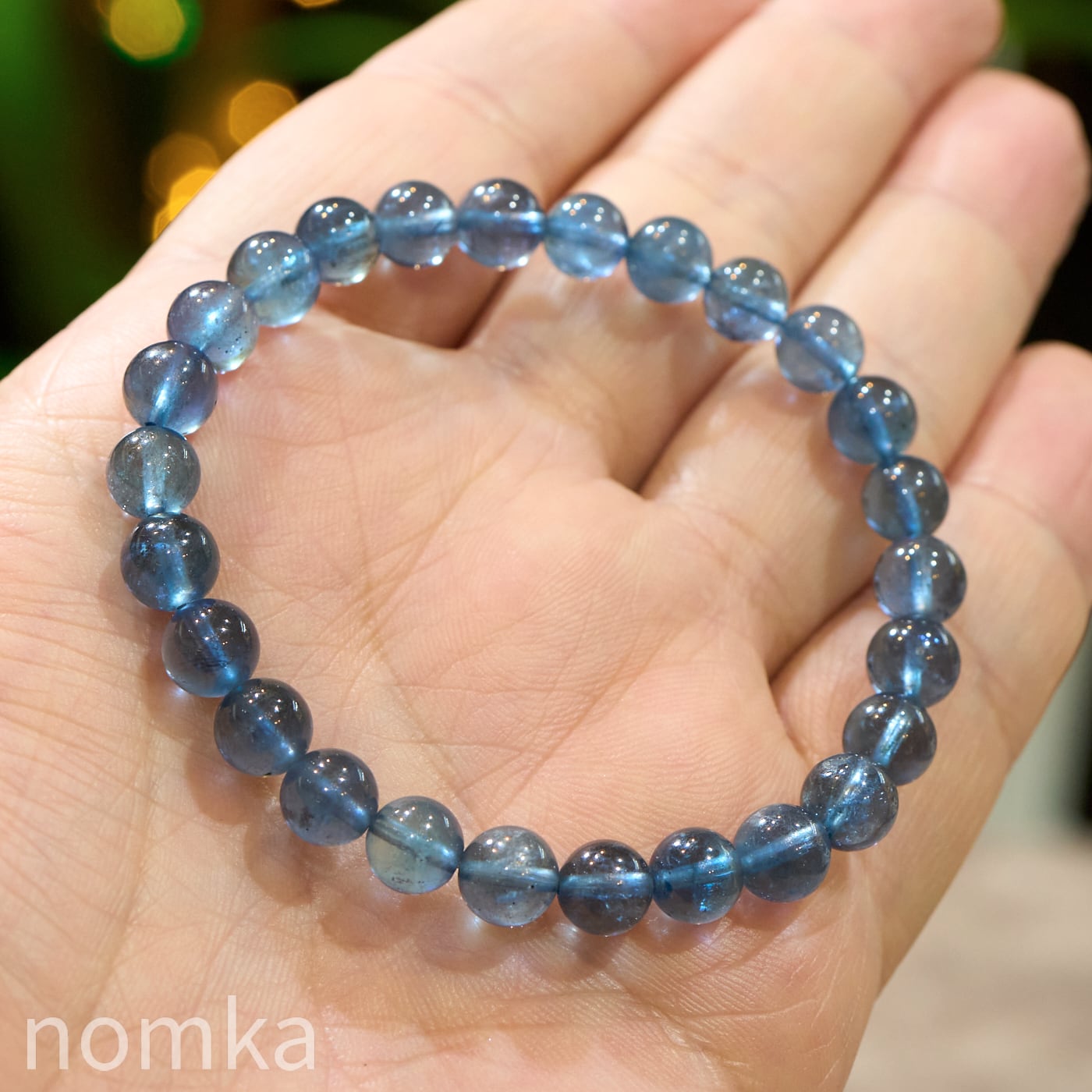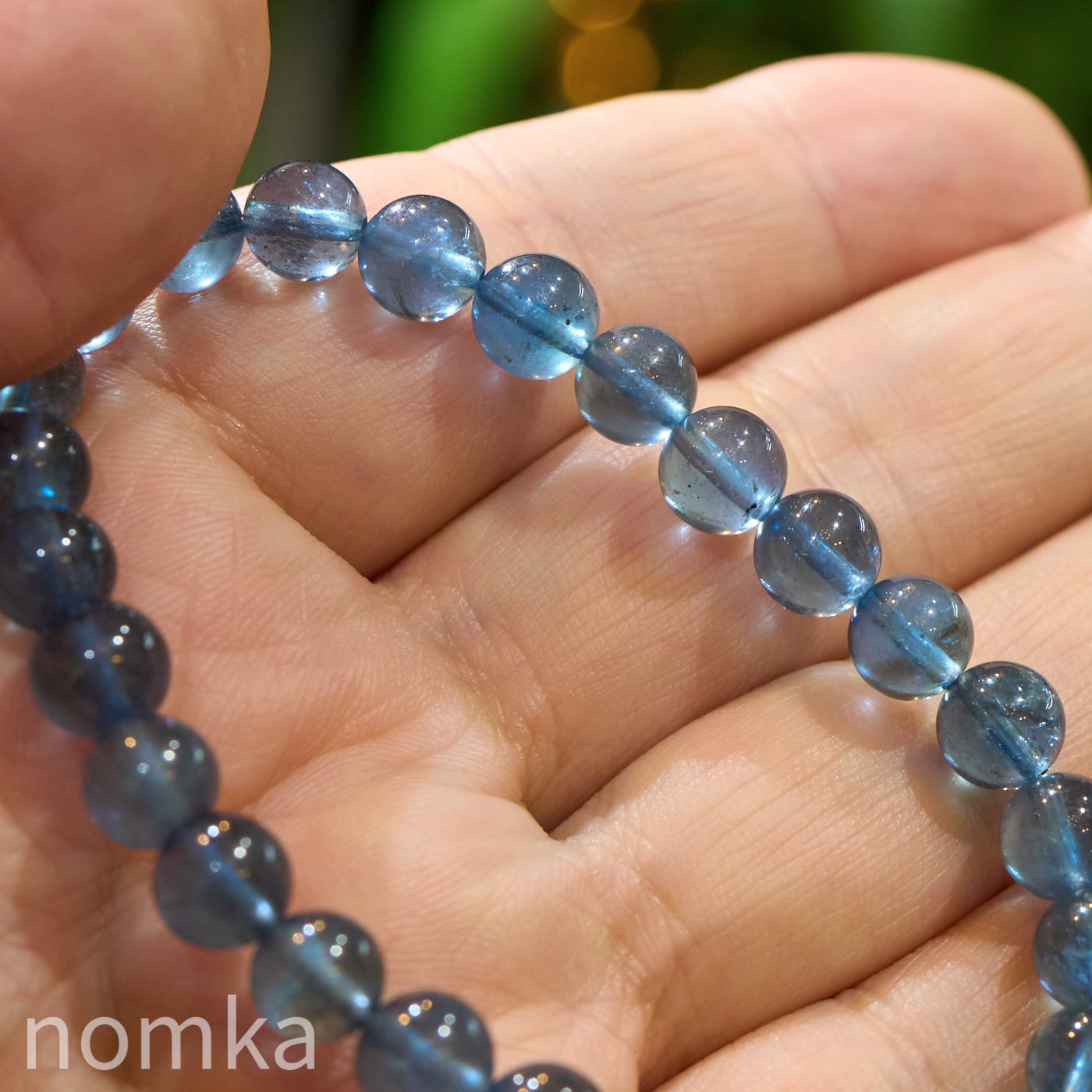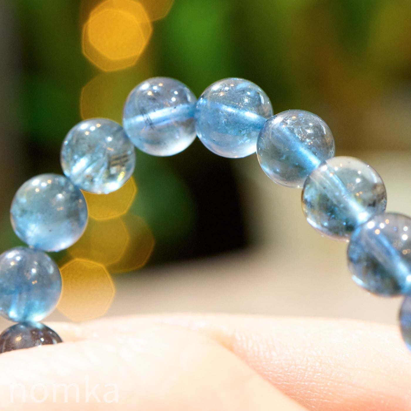 【深海に差し込む光】シラー入りモスアクアマリン 一連ブレスレット (7mm珠/約16cm)