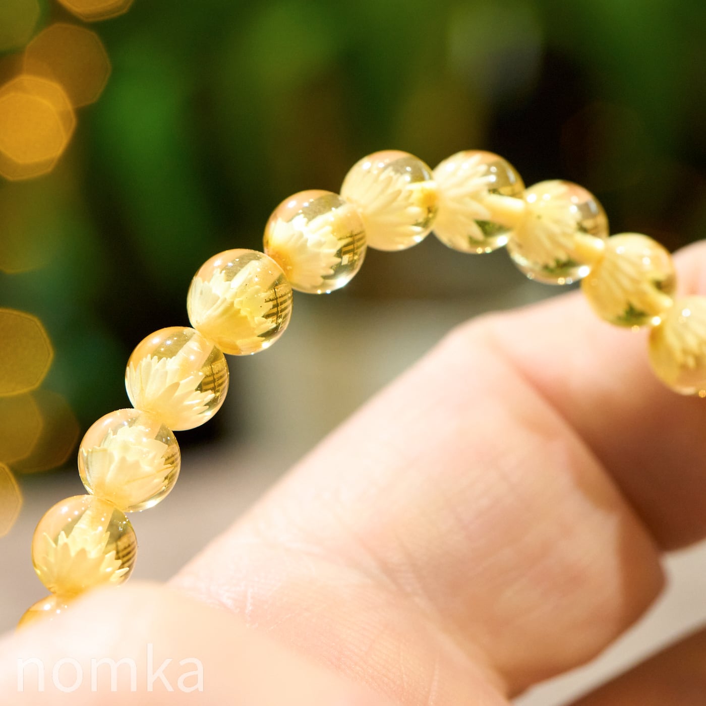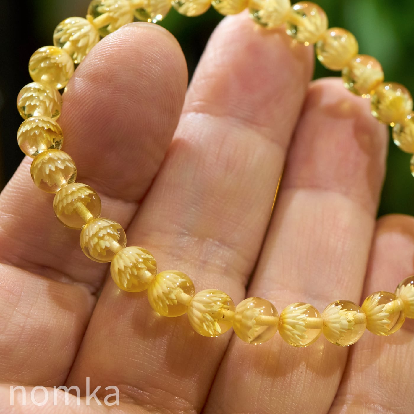 【光を纏う、聖なる花】バルト海産 レモンカラーアンバー(花彫刻) 一連ブレスレット