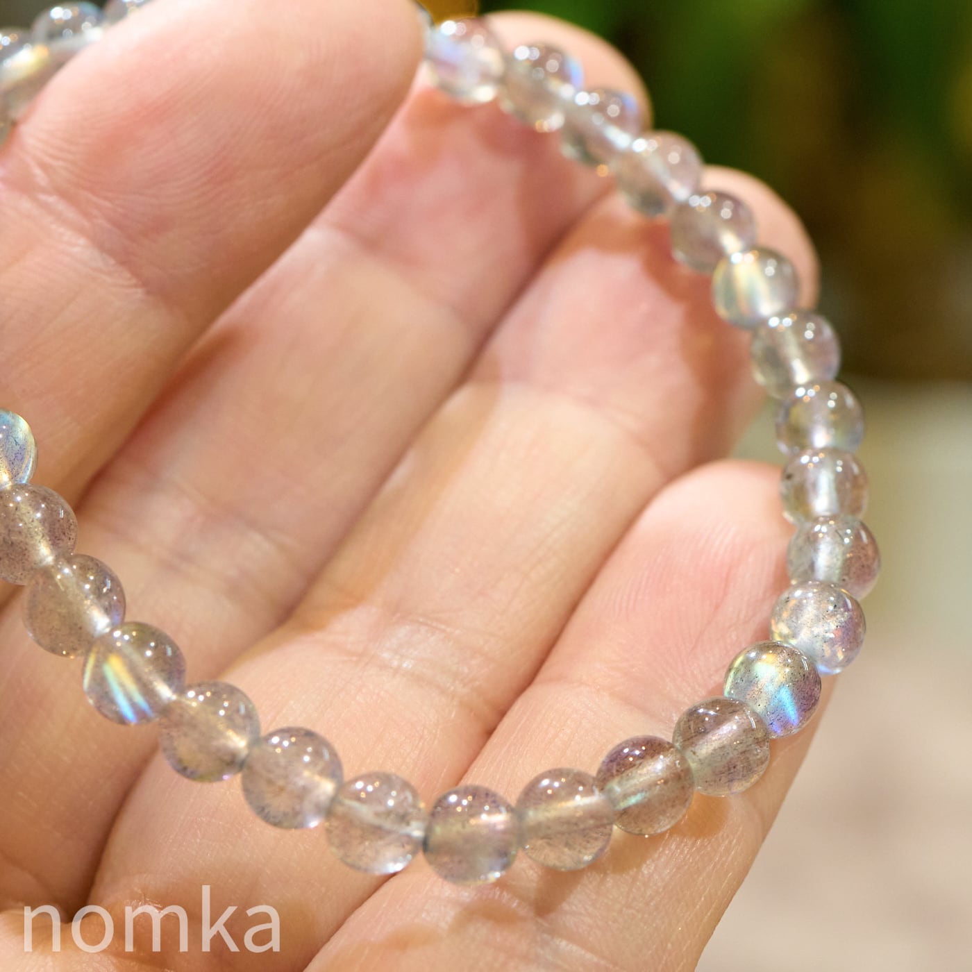 ラブラドライトは、フェルドスパー(長石)の仲間で、層状に重なった結晶構造によって光の干渉が起こり、幻想的な輝きを放つのが最大の特徴です。