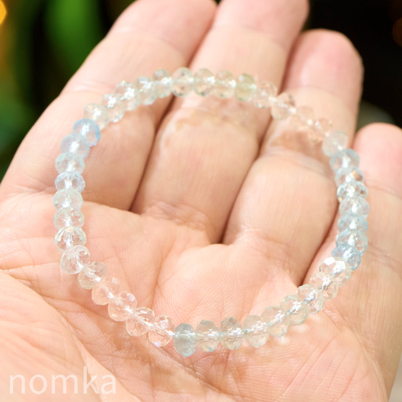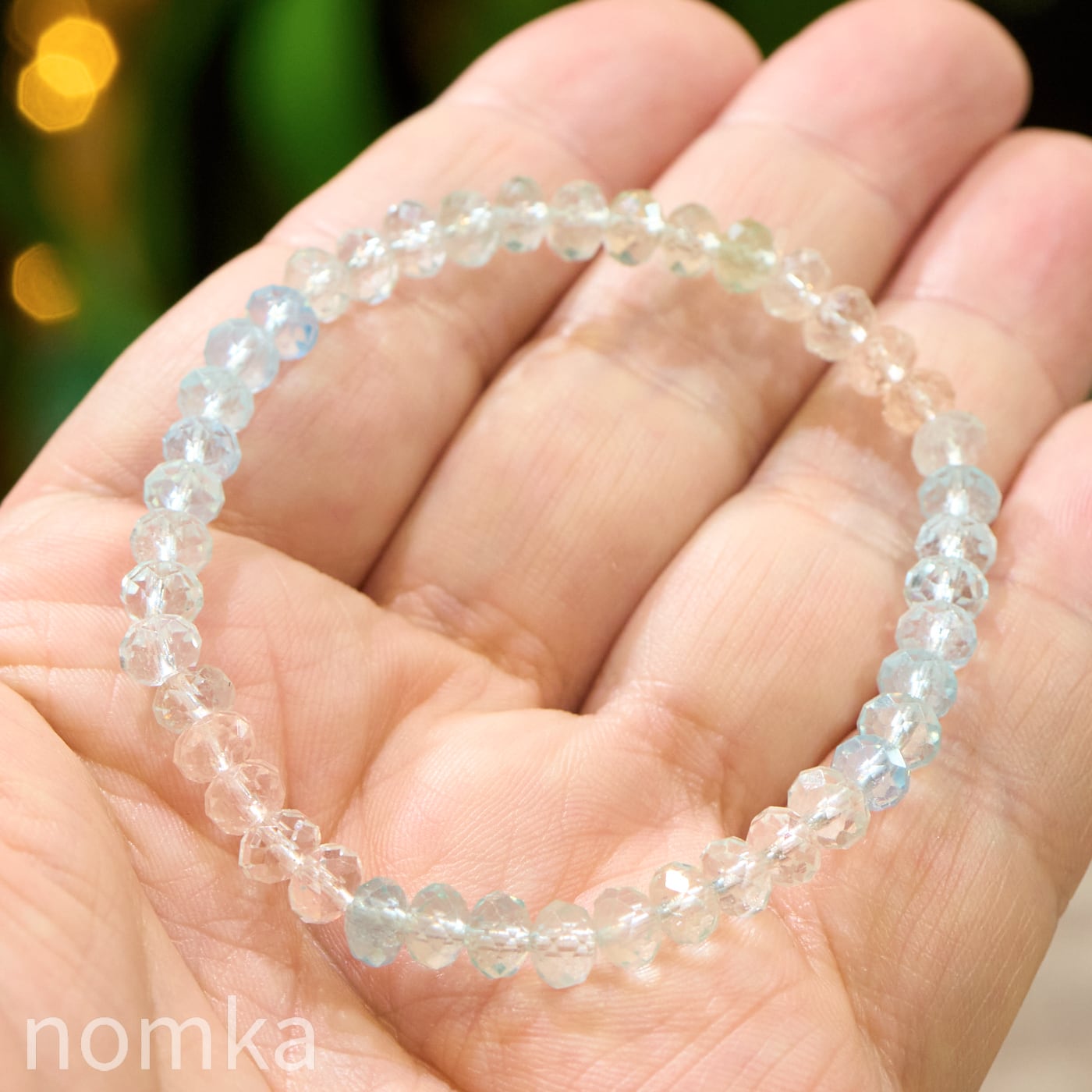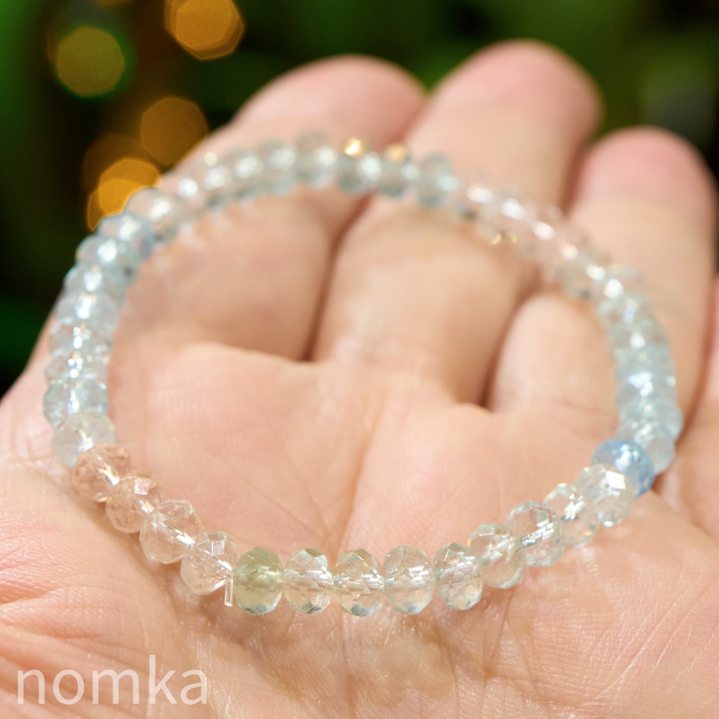 【光を編み込む、宝石の雫】アフリカ産 宝石質アクアマリン ボタンカットブレスレット(16cm)