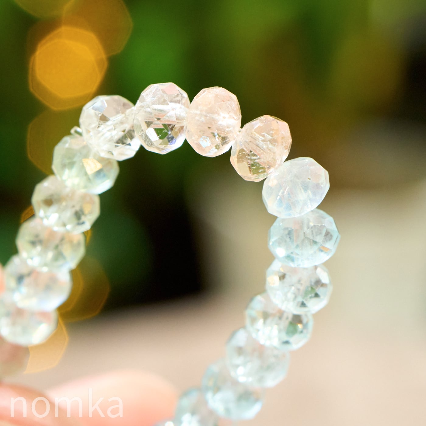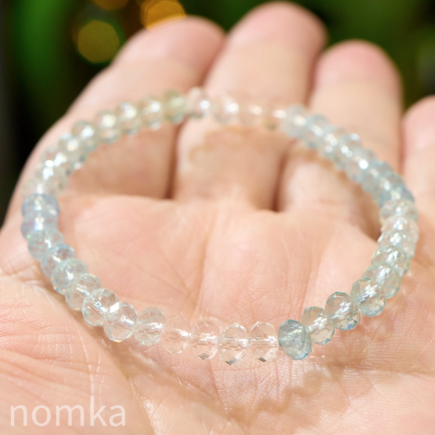 【光を編み込む、宝石の雫】アフリカ産 宝石質アクアマリン×モルガナイト ボタンカットブレスレット