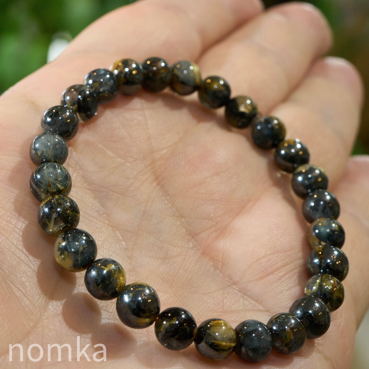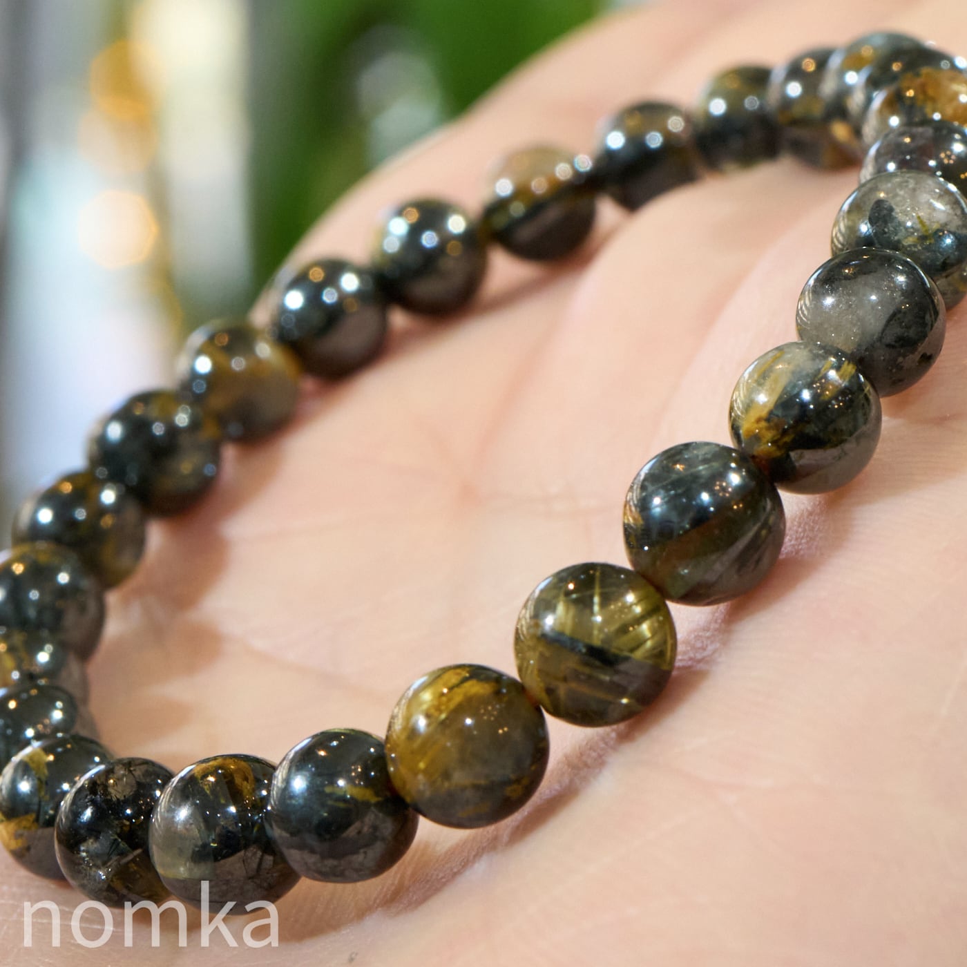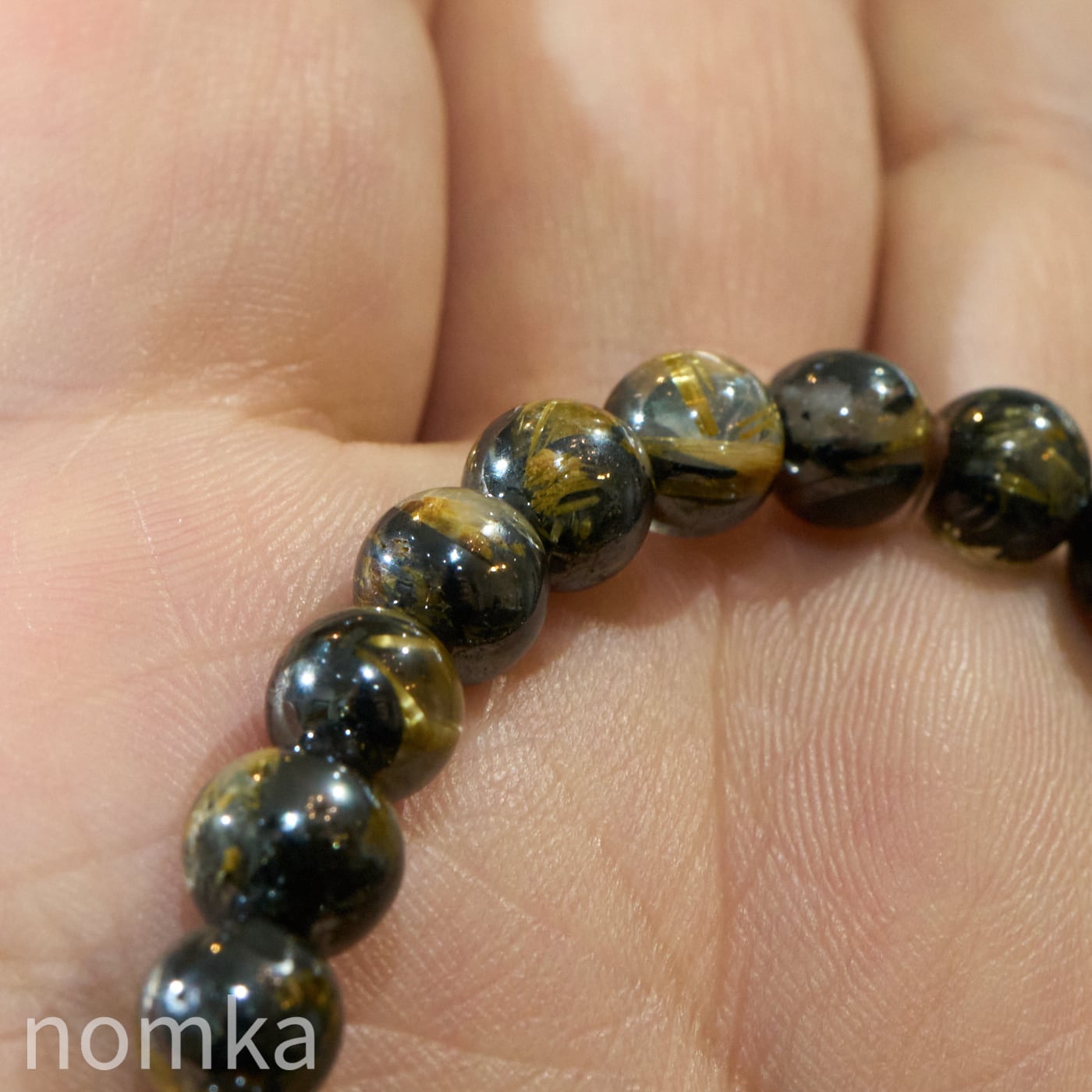 再掲載【運命を切り拓く太陽の力 -A】ヘマタイトインルチルクォーツ 一連ブレスレット(7mm/約16cm)